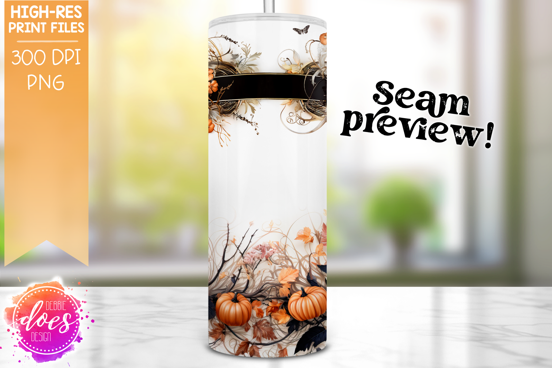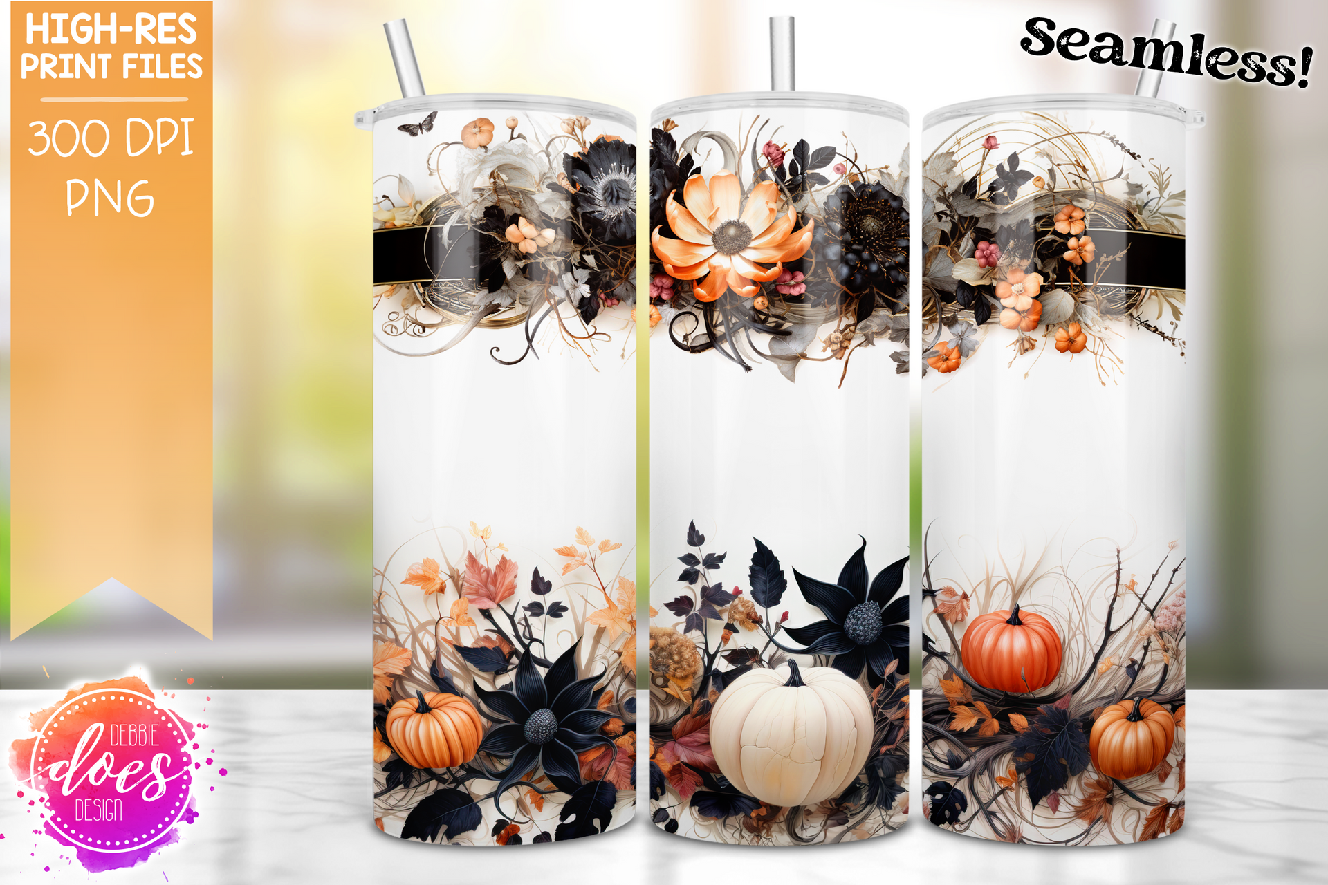 3D Fall Pumpkin Floral Vine - Tumbler - Seamless - Printable/Sublimation Design