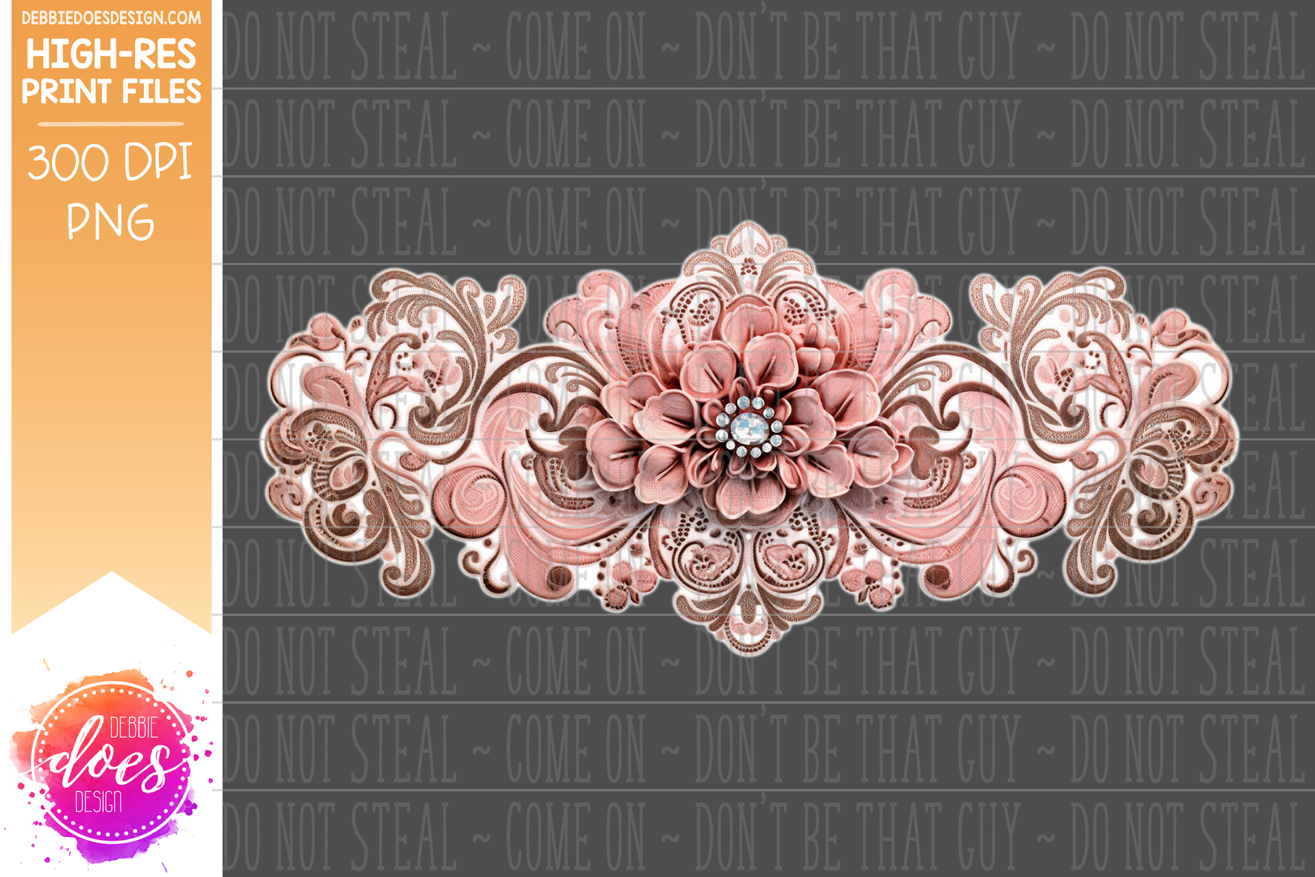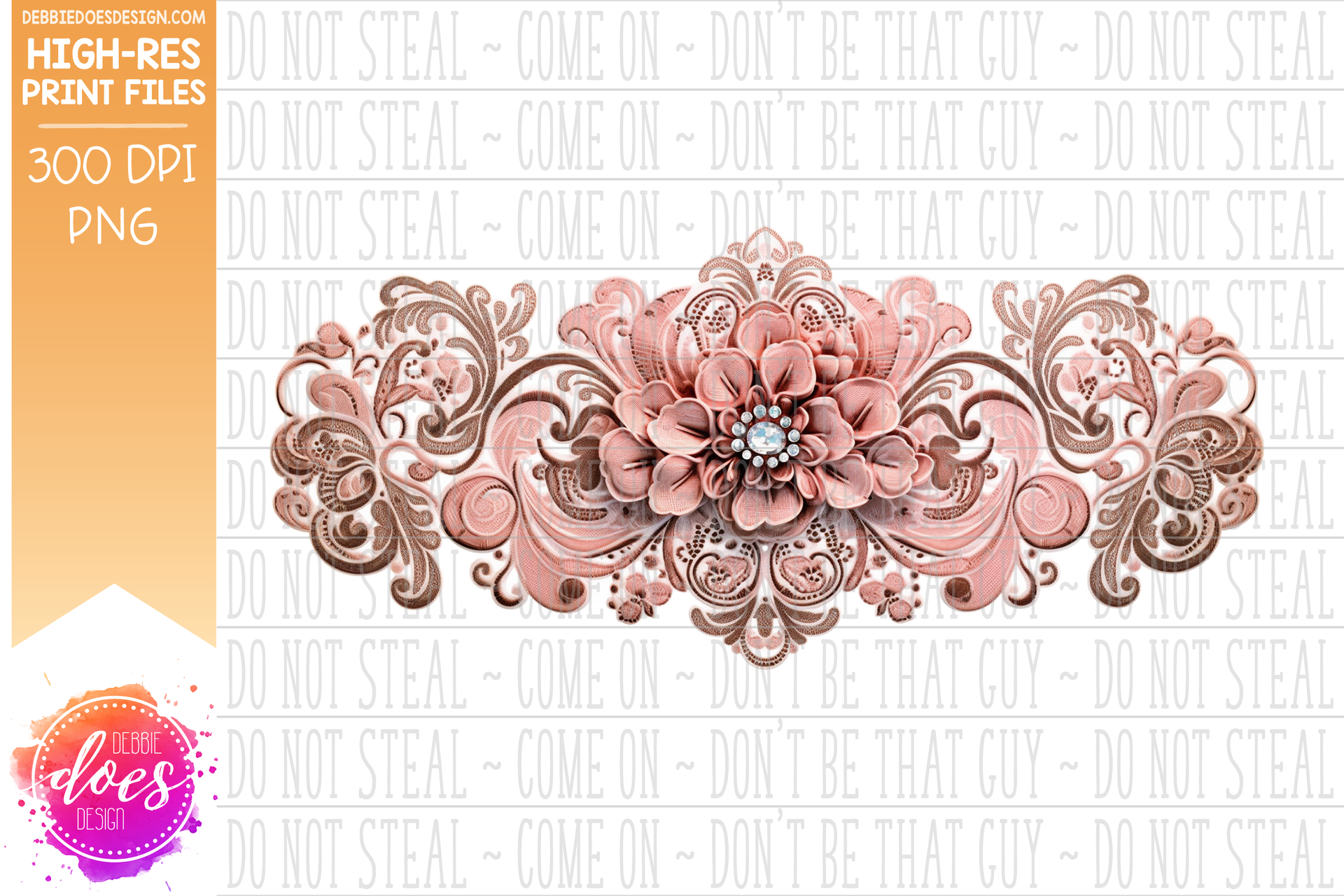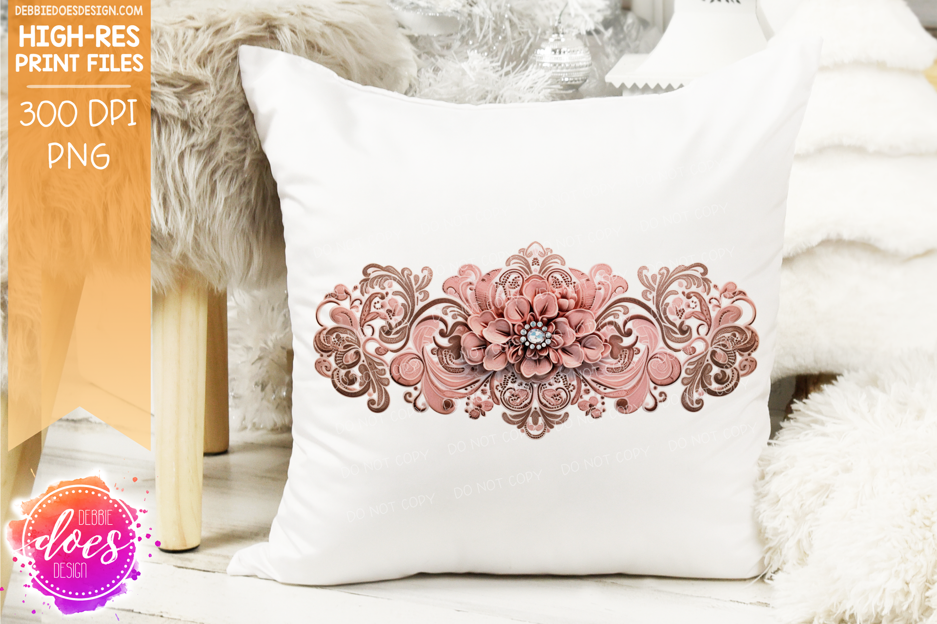 3D Soft Pink Tan Floral Lace Applique - White Glow - Printable/Sublimation Design