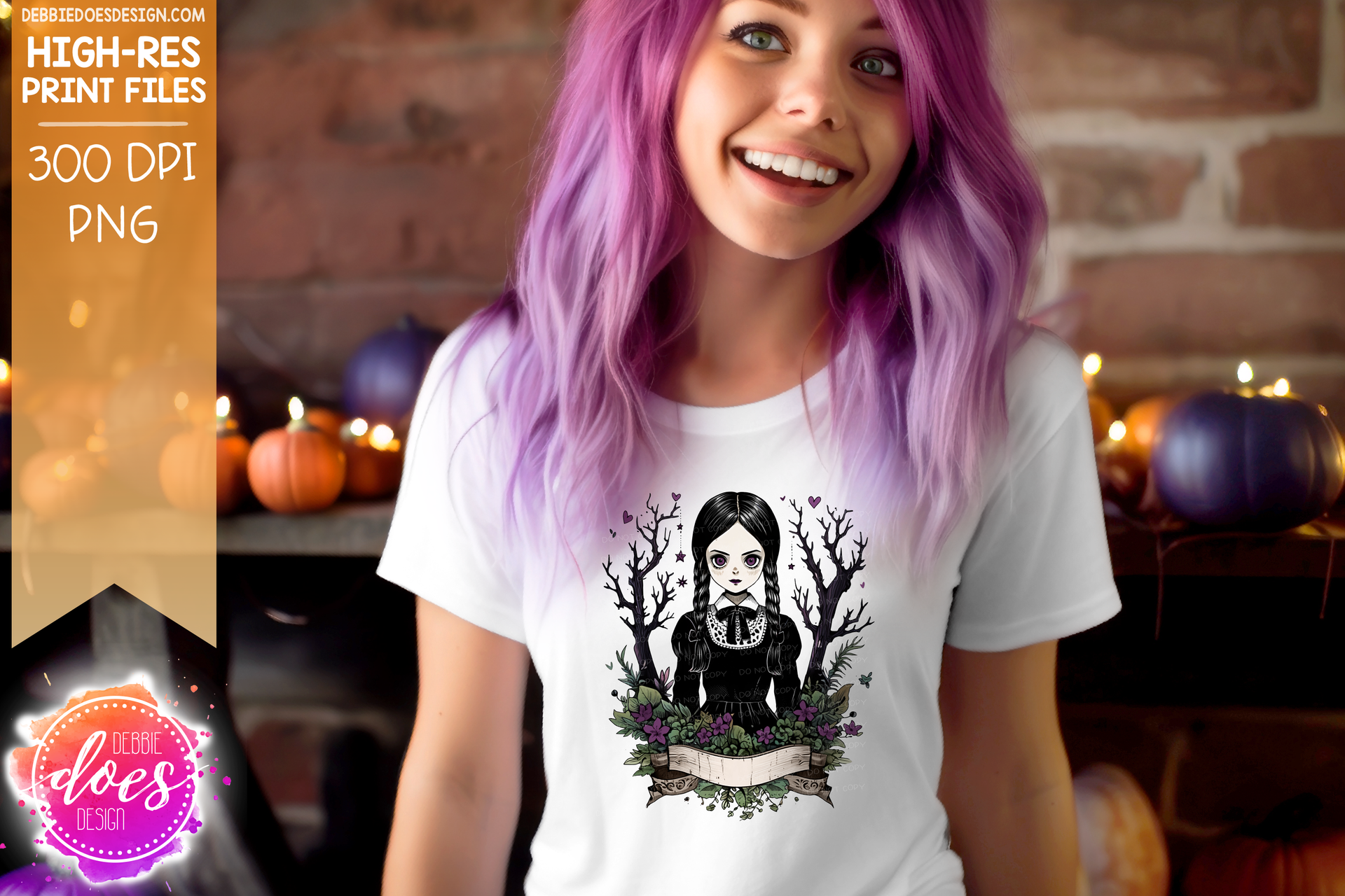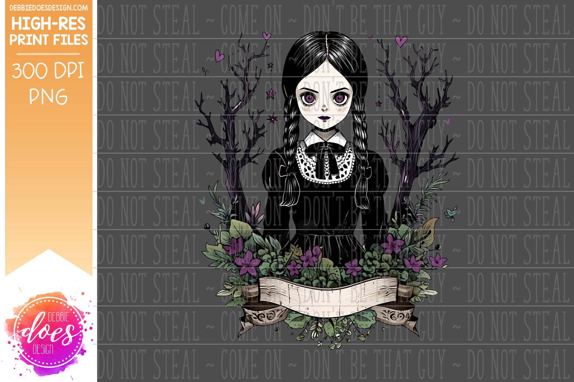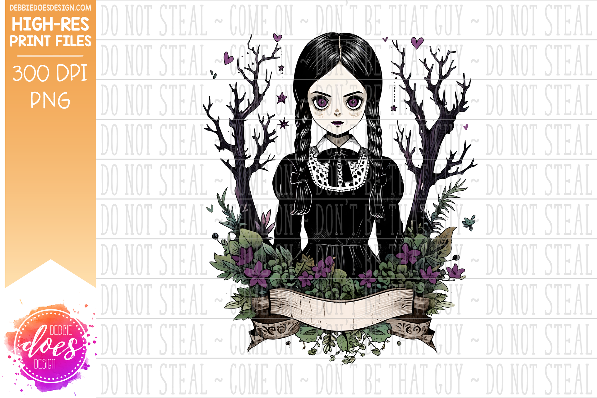 Creepy Girl with Black Braids - Muted - Printable/Sublimation Design