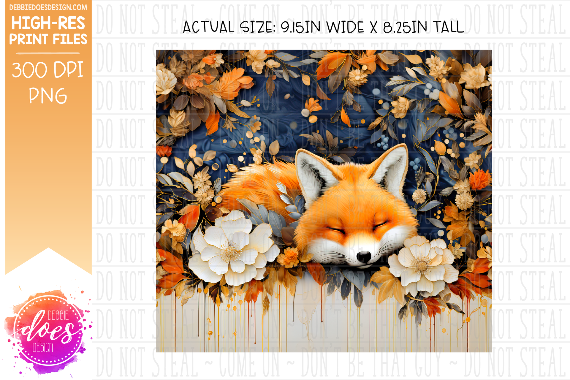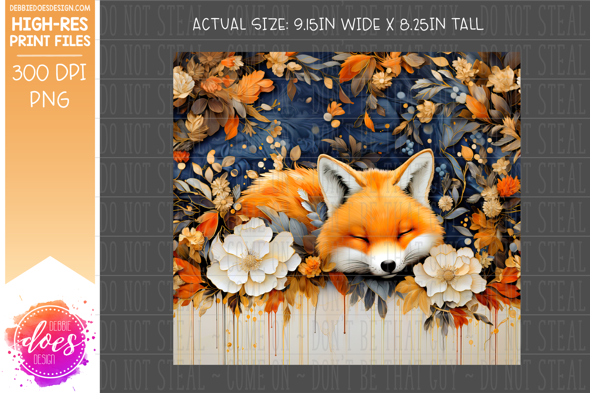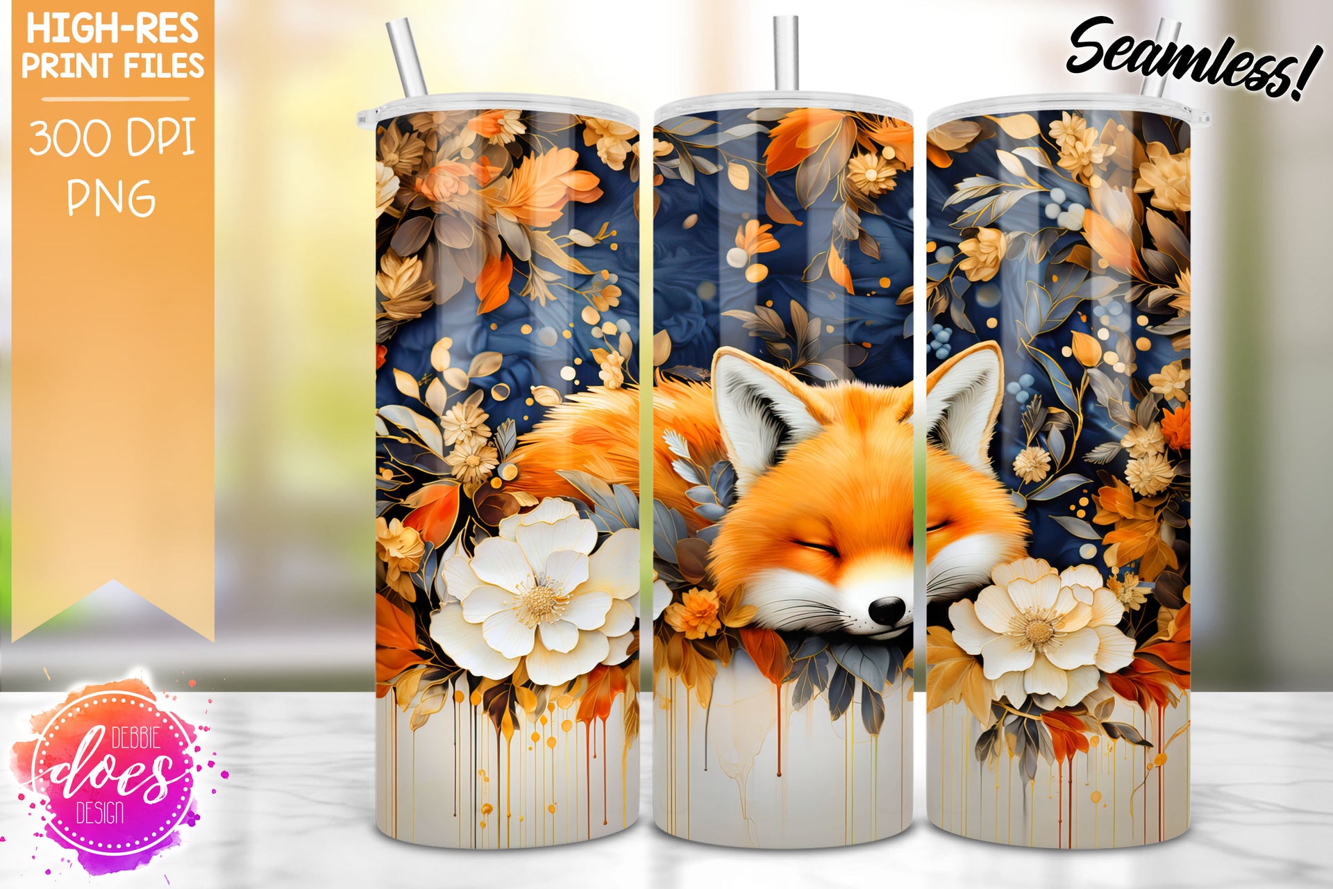 Drippy Fox in Flowers - Tumbler - Seamless - Printable/Sublimation Design