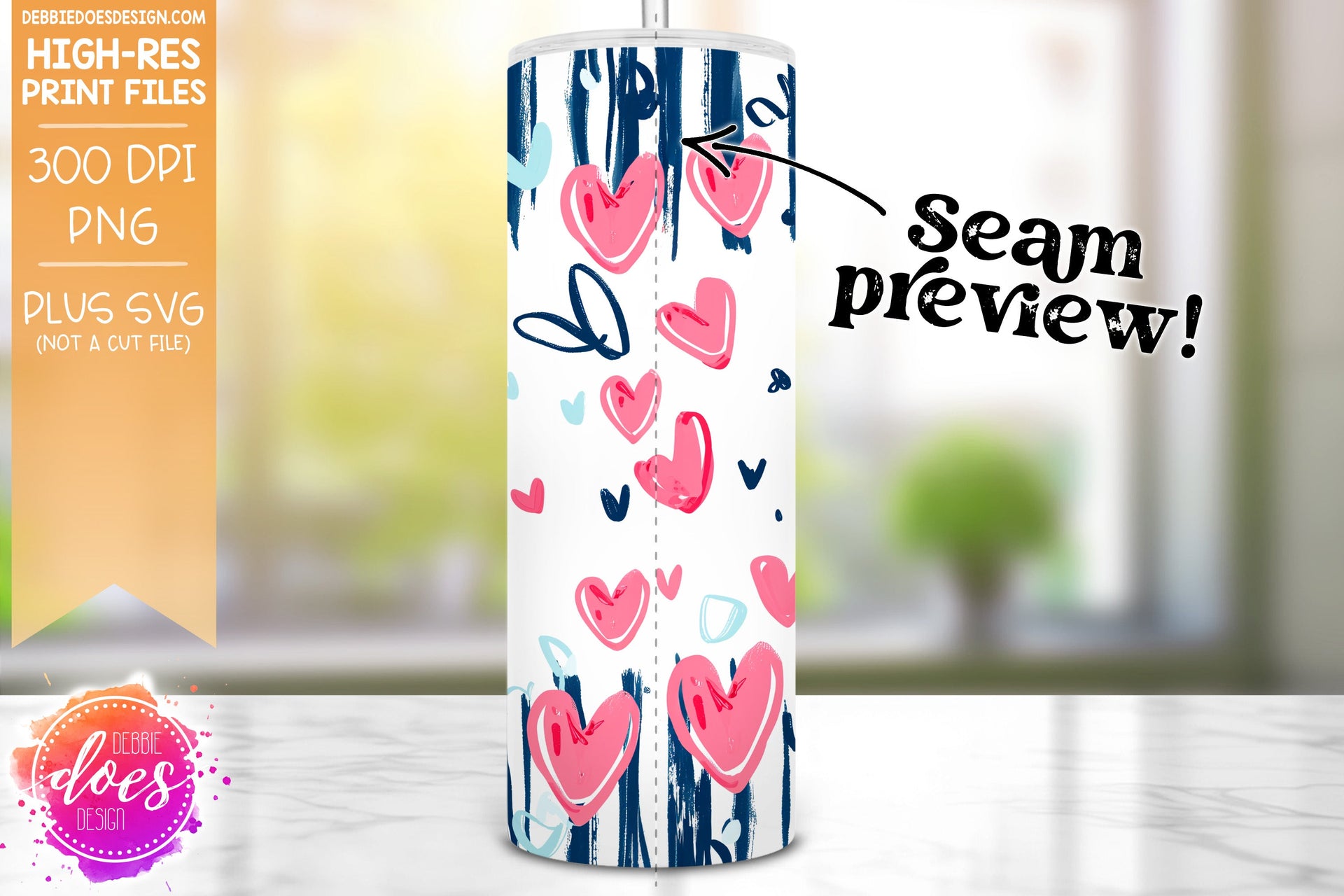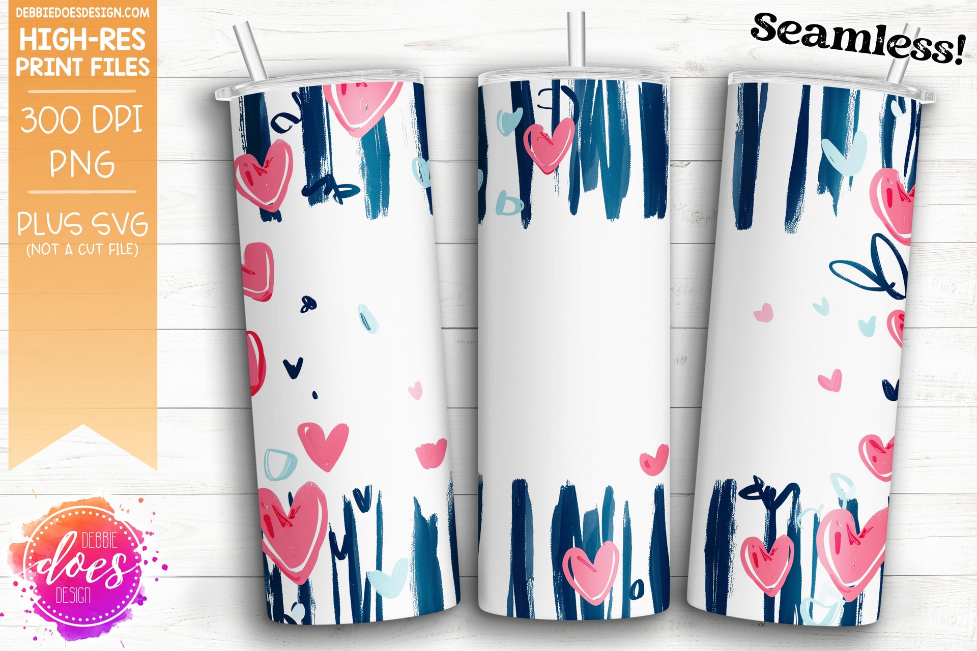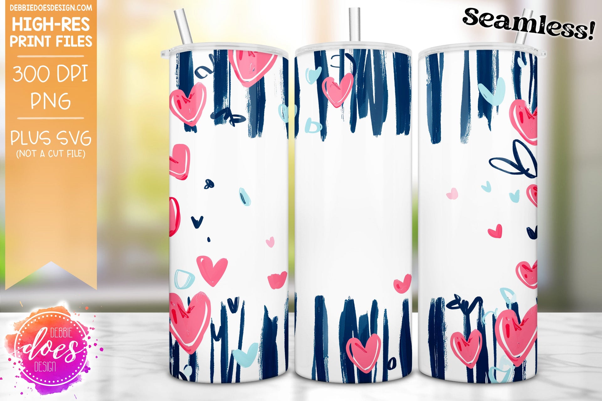 Hearts and Stripes Seamless Tumbler - 2 - Sublimation/Printable Design