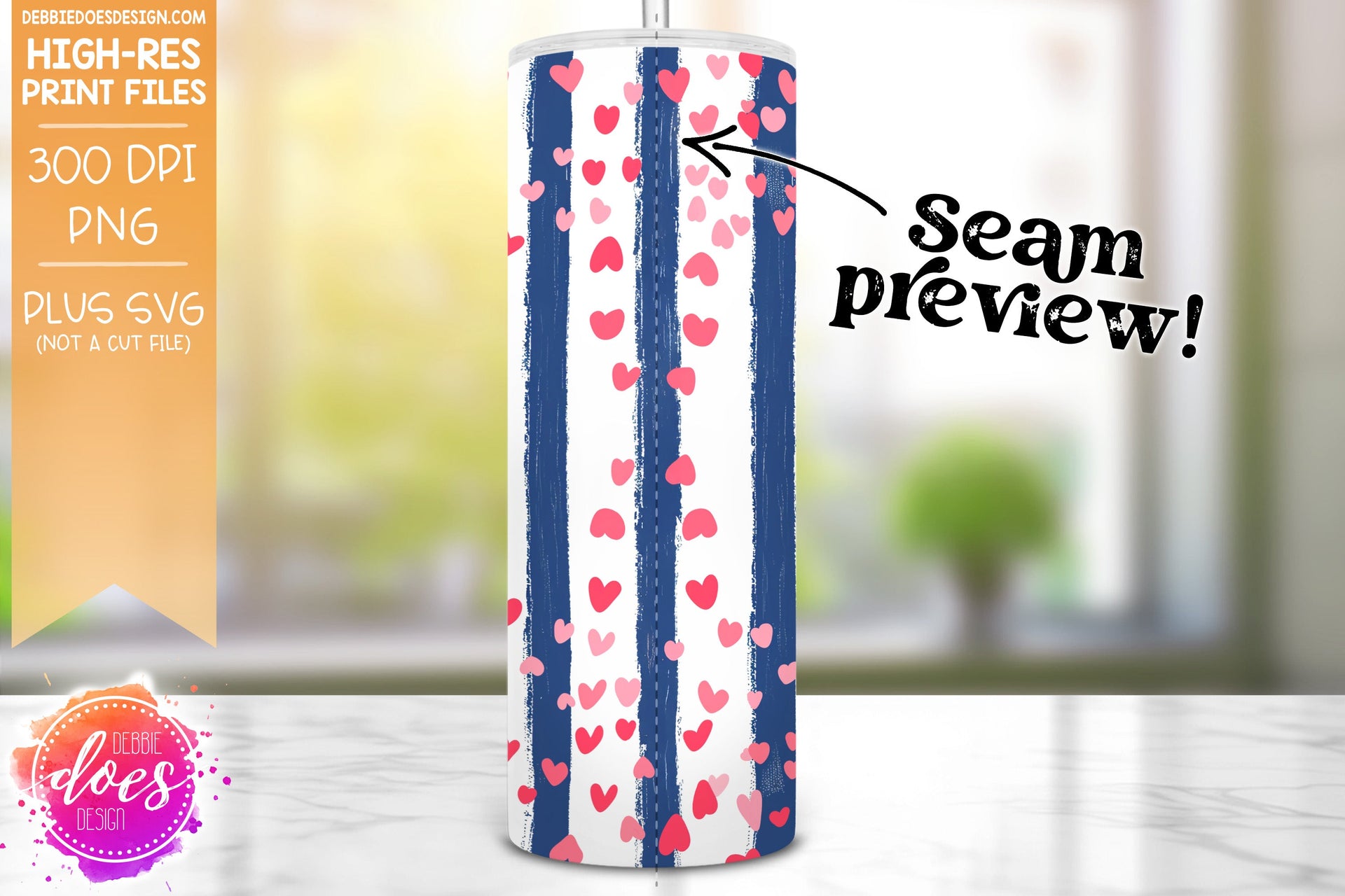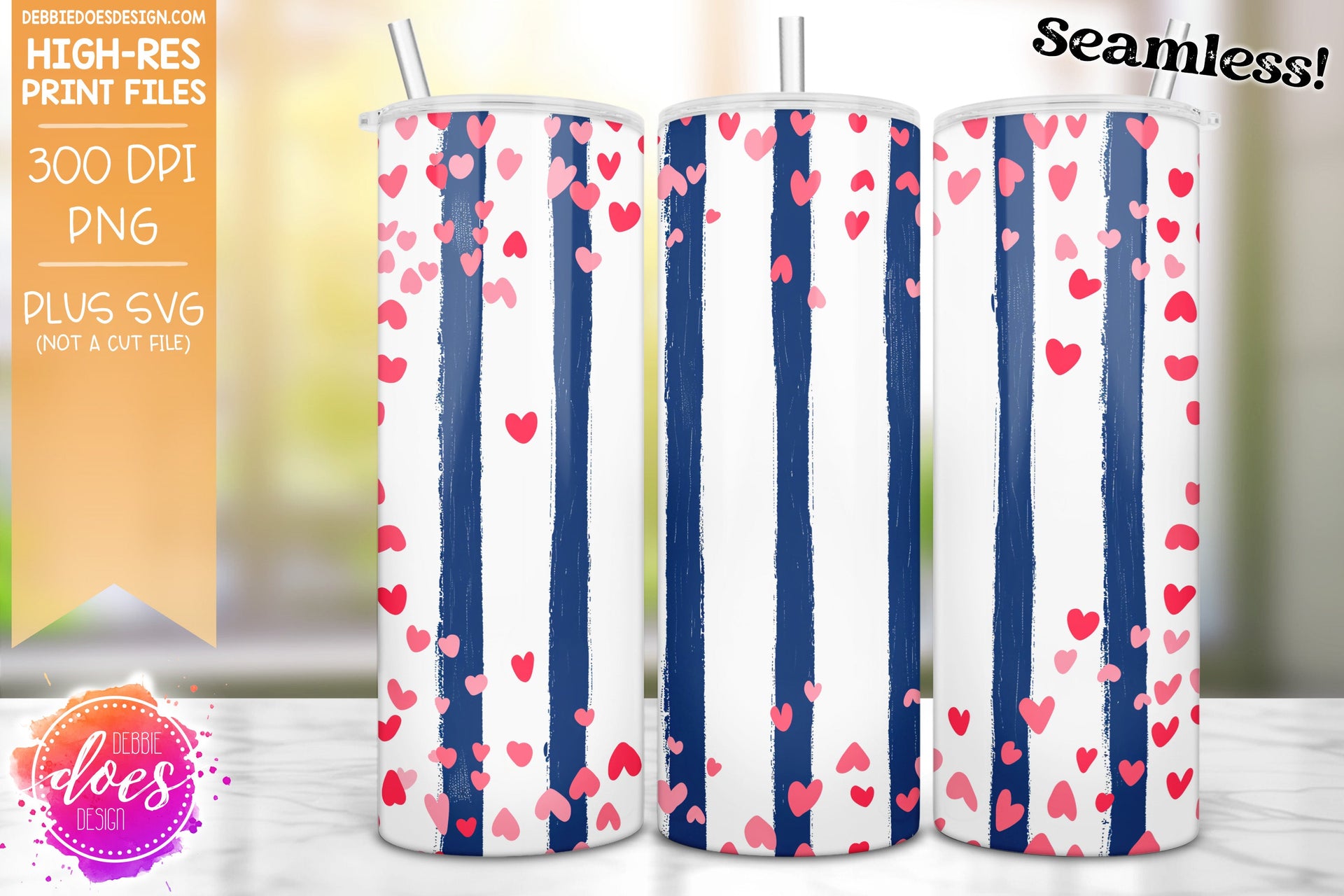 Hearts and Stripes Seamless Tumbler - 3 - Sublimation/Printable Design