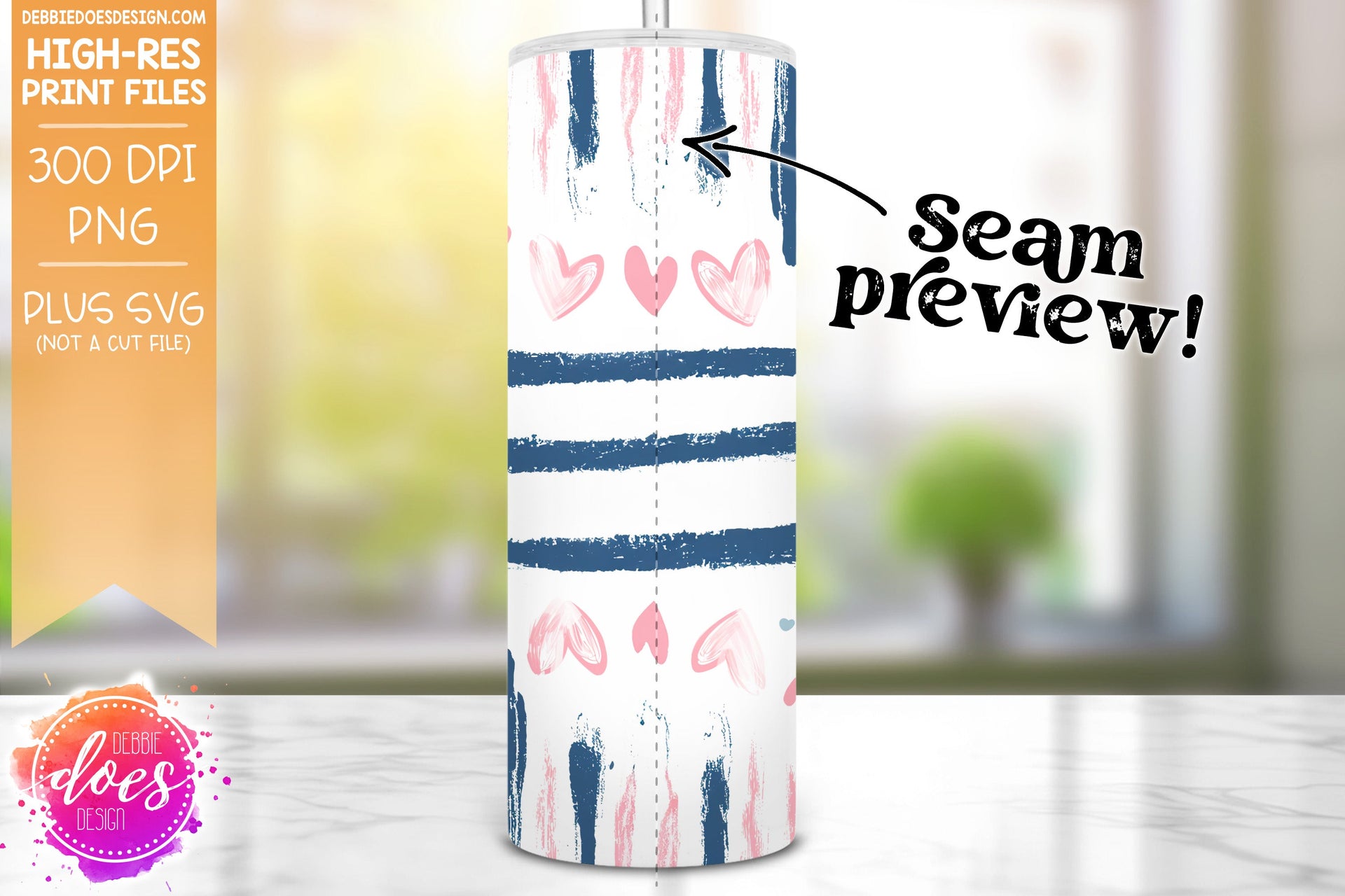 Hearts and Stripes Seamless Tumbler - 4 - Sublimation/Printable Design
