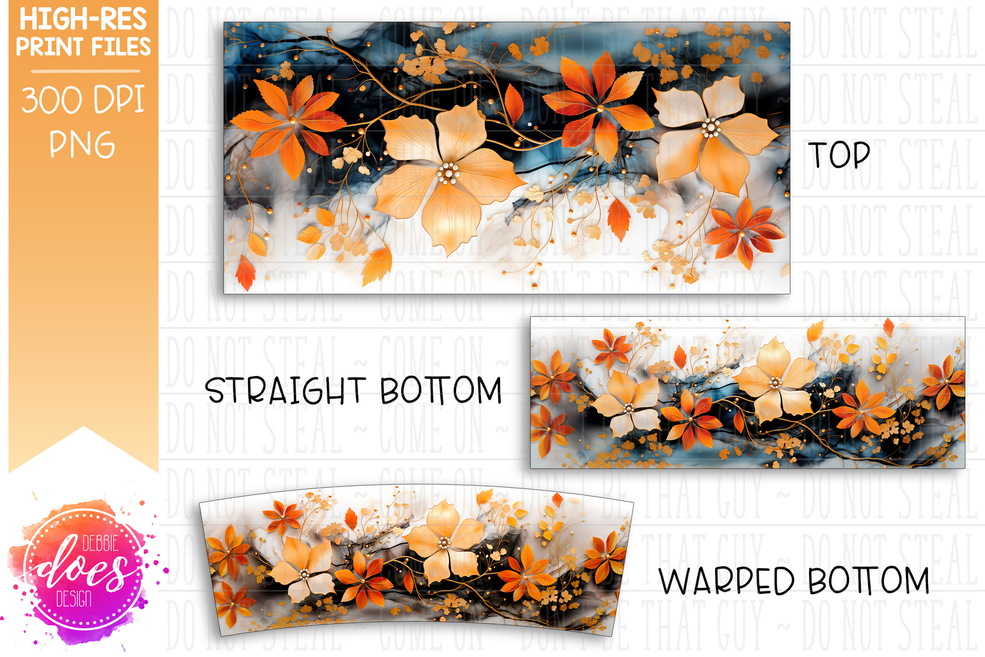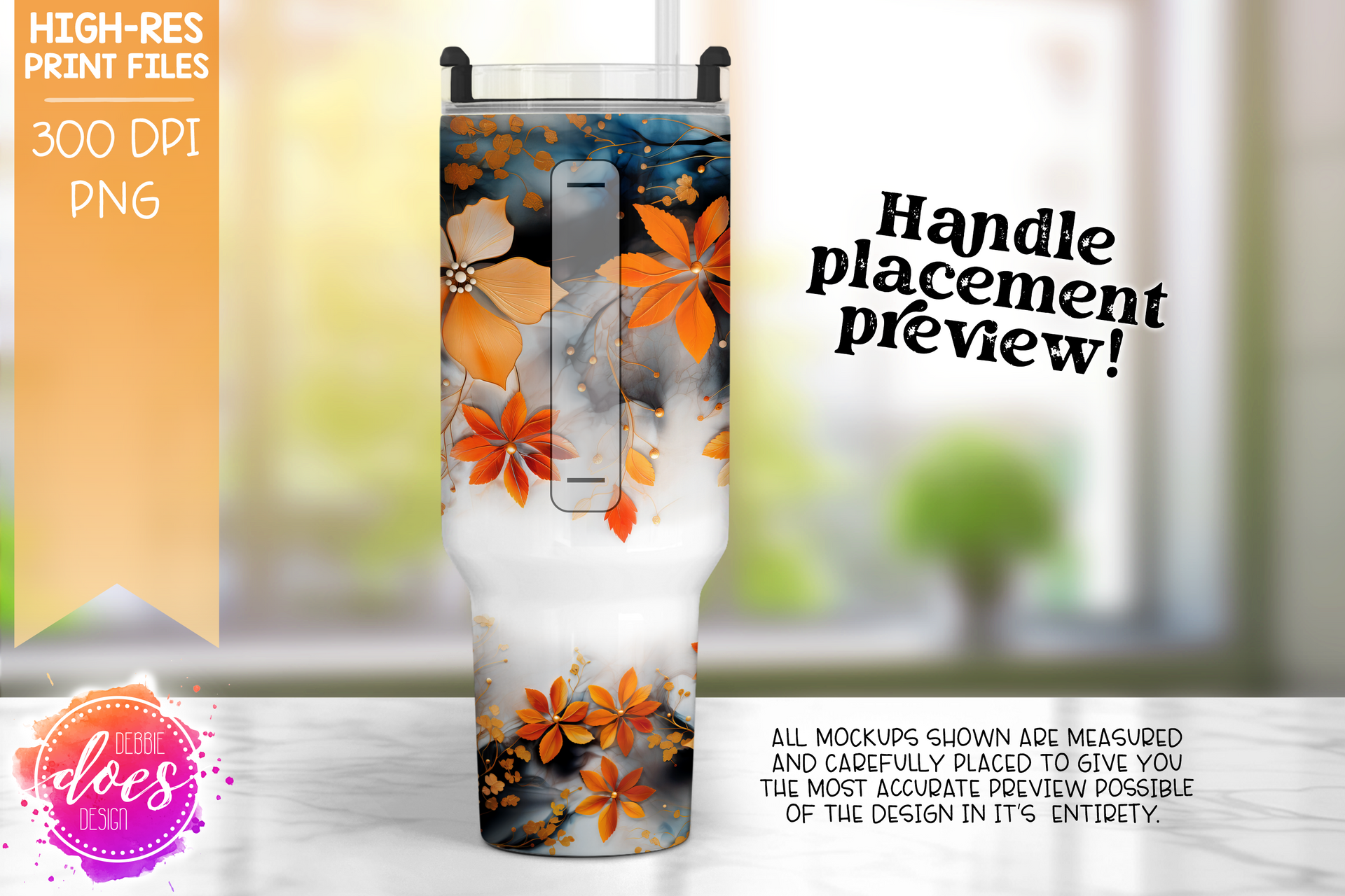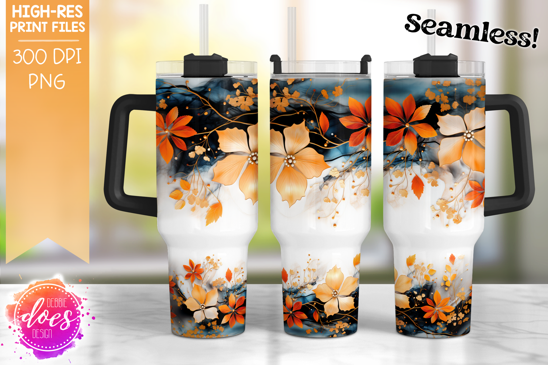 3D Blue and Gold Fall Flowers - 40oz Tumbler - Seamless - Printable/Sublimation Design