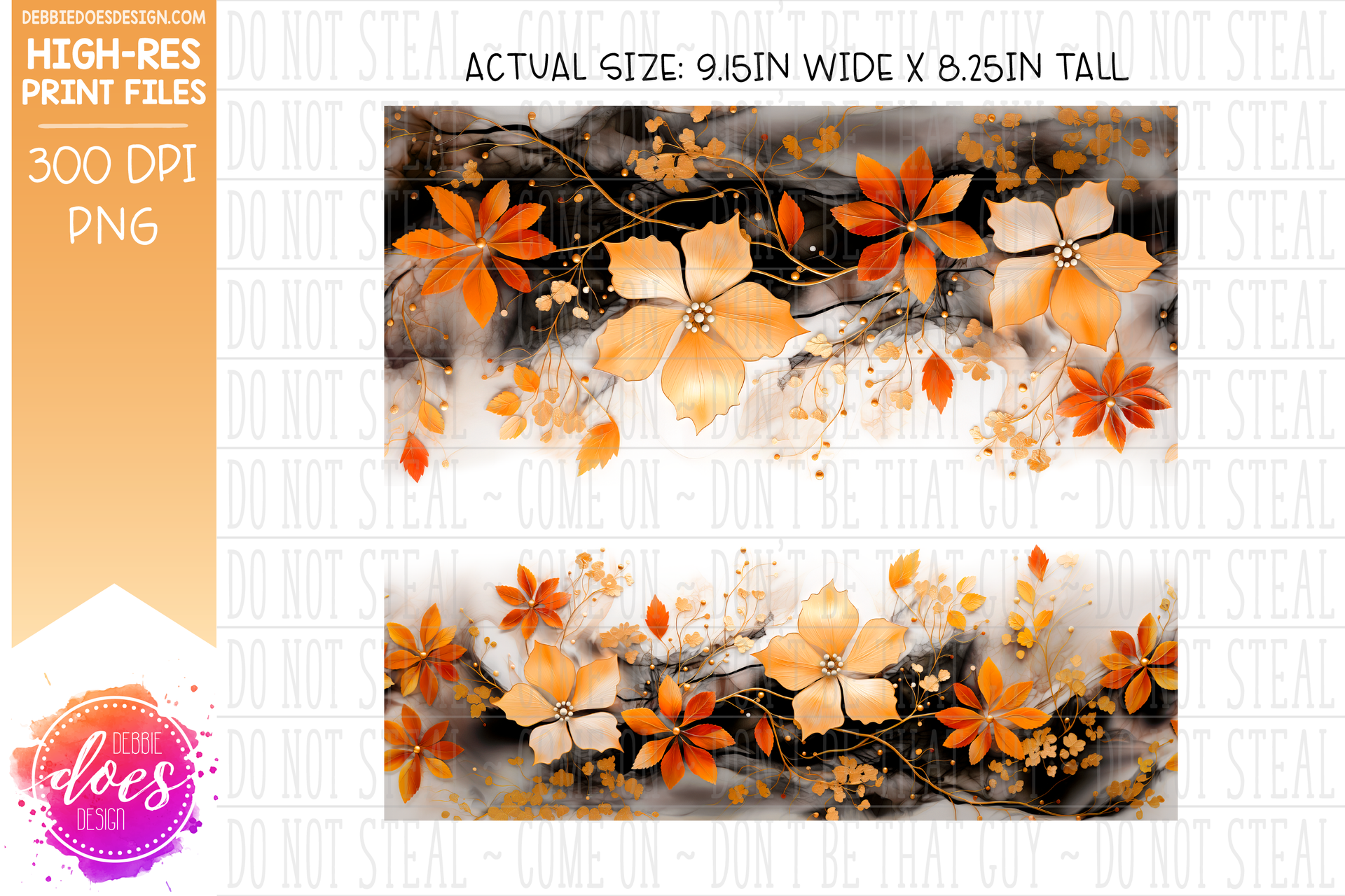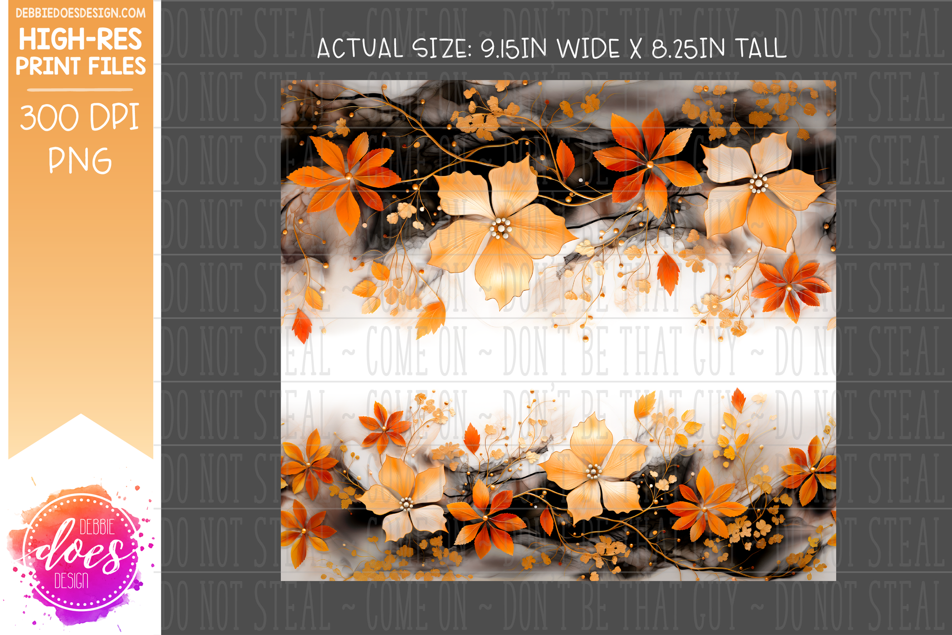 3D Black and Gold Fall Flowers - Tumbler - Seamless - Printable/Sublimation Design