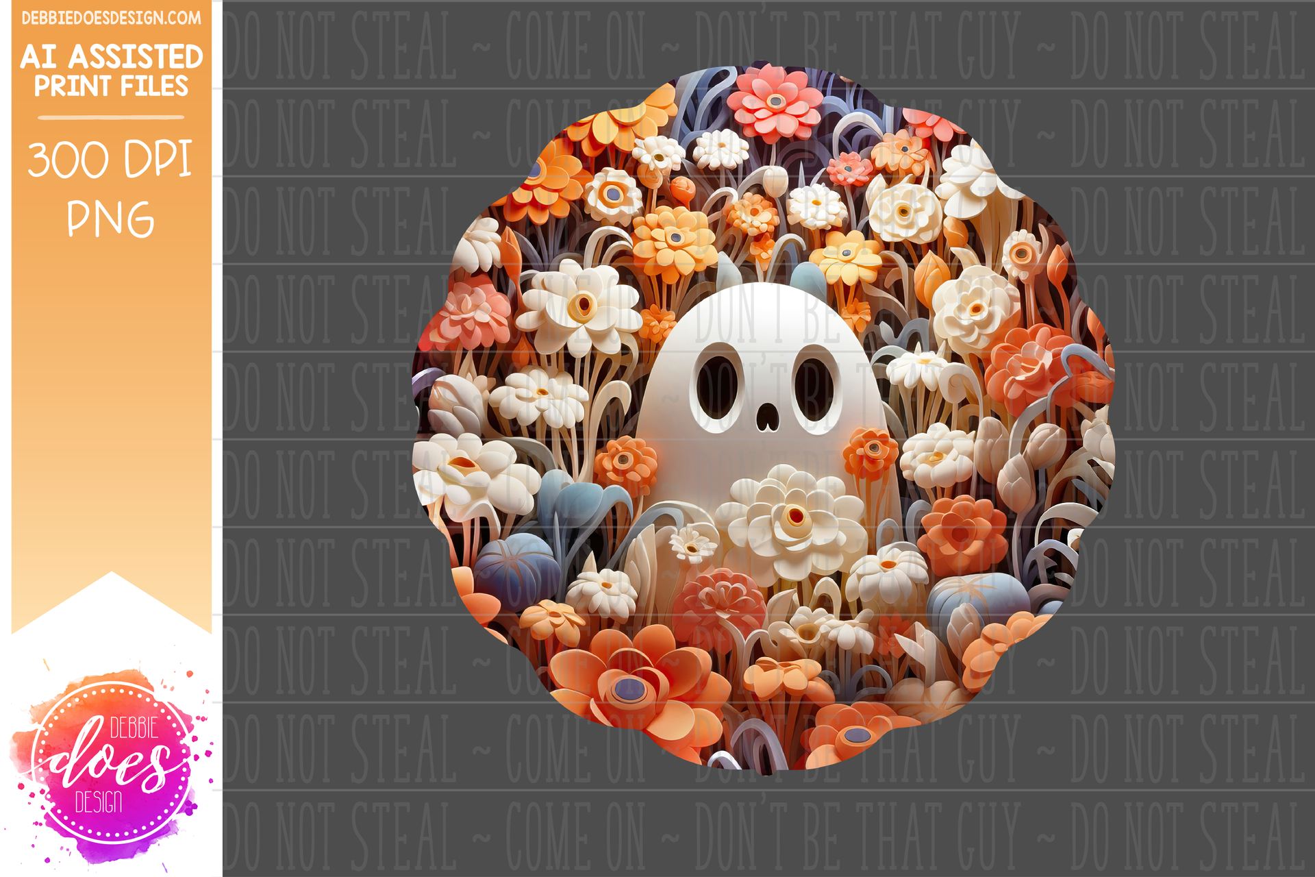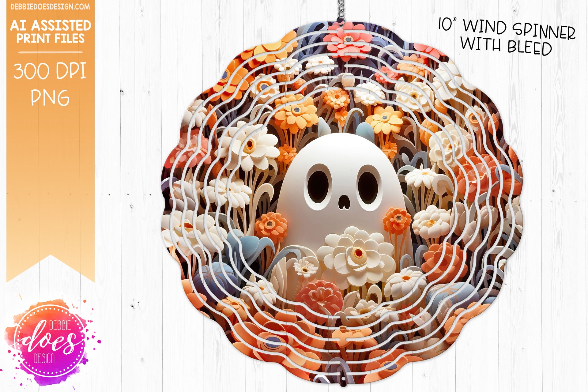 3D Clay Ghost and Flowers 1 - Wind Spinner - Printable/Sublimation Design