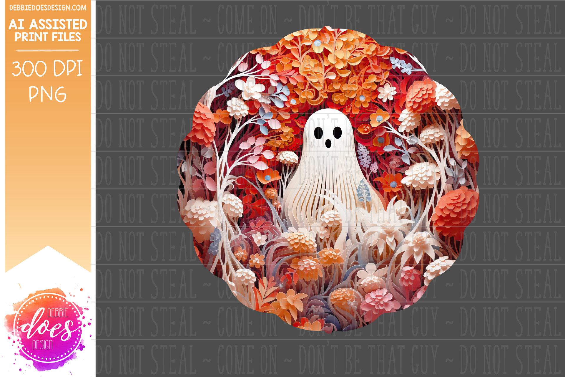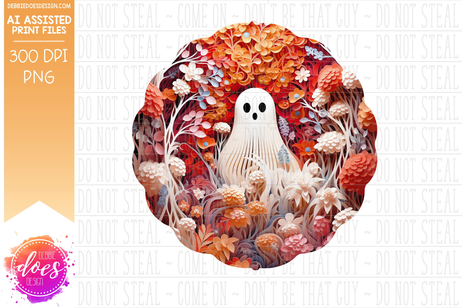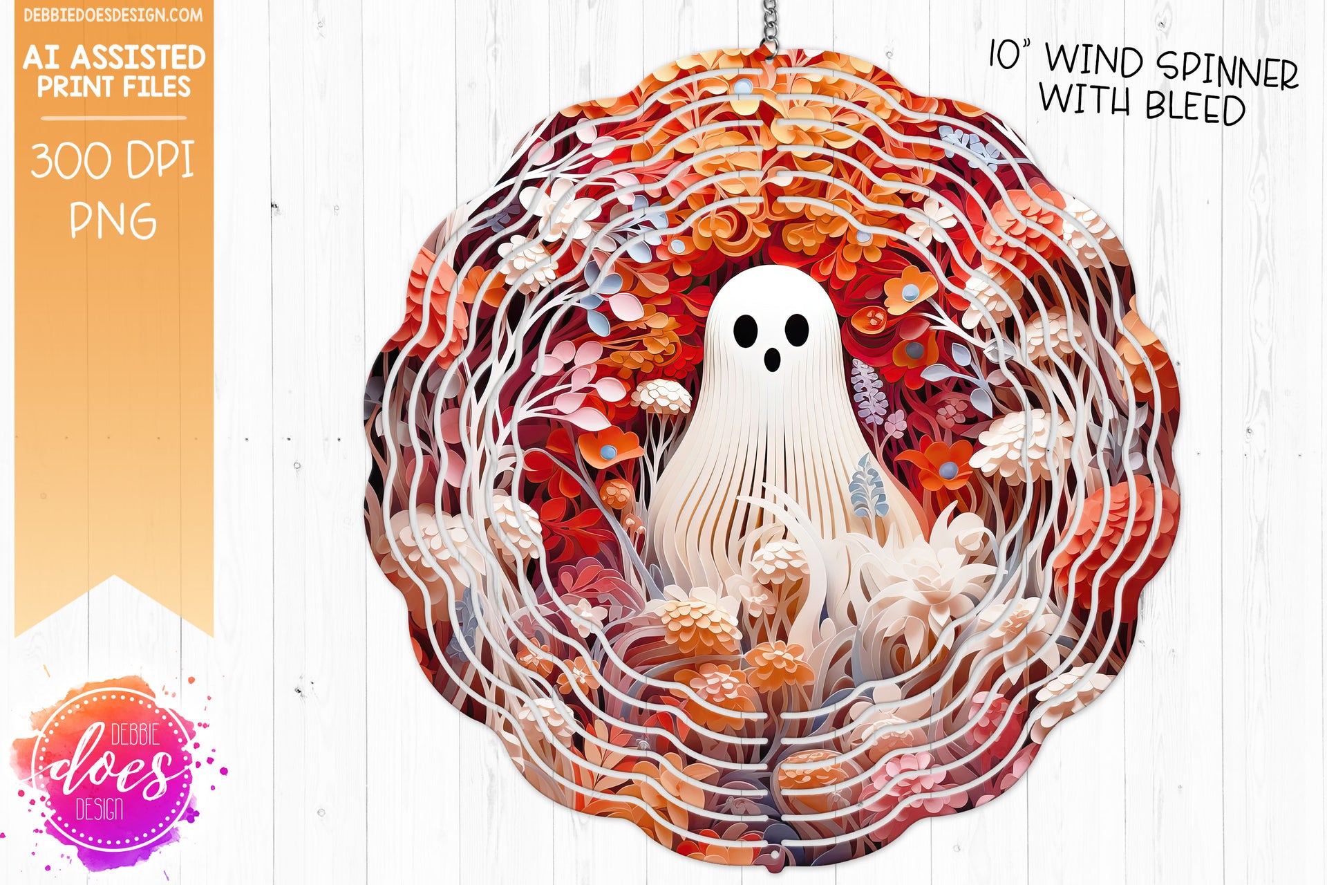 3D Clay Ghost and Flowers 2 - Wind Spinner - AI Assisted Printable/Sublimation Design