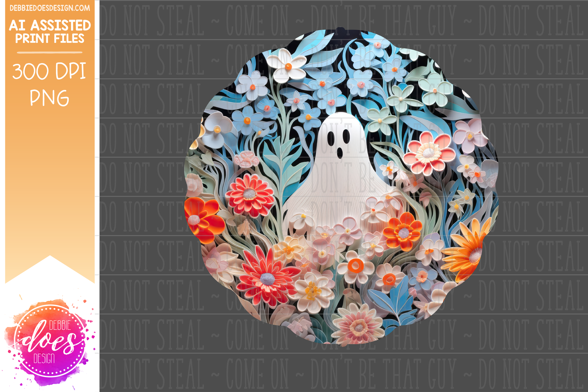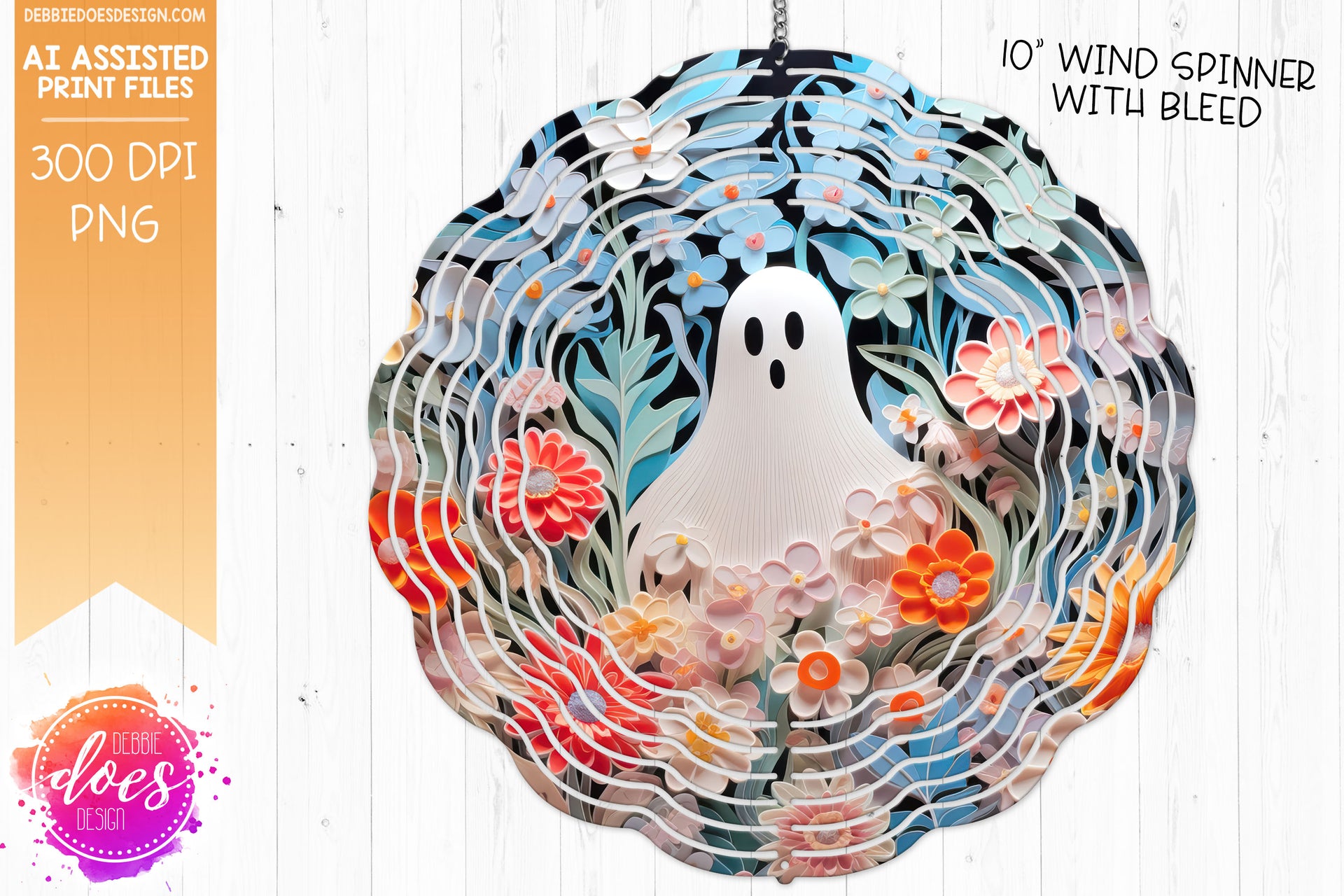 3D Clay Ghost and Flowers 3 - Wind Spinner - Printable/Sublimation Design