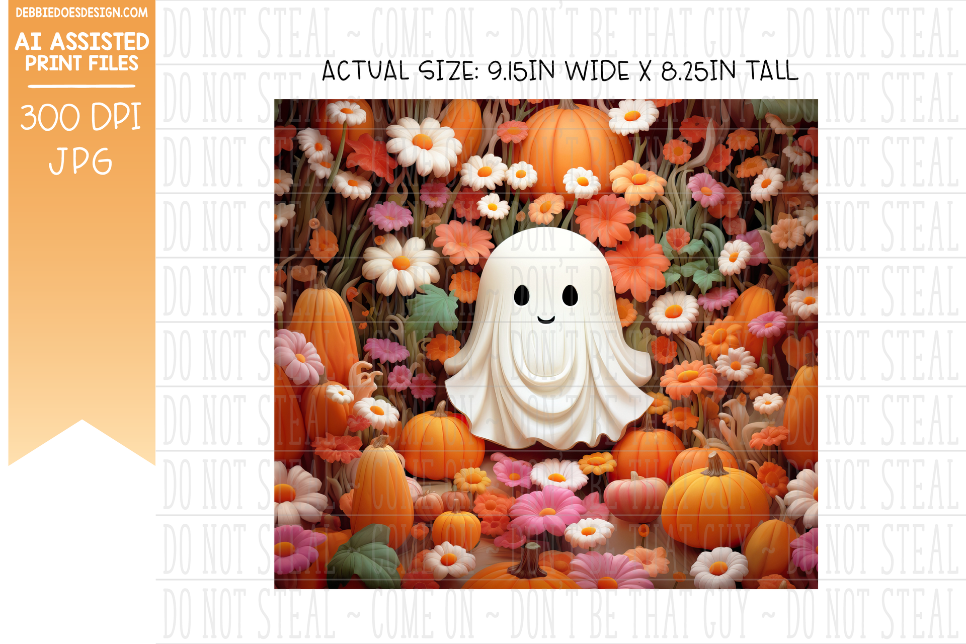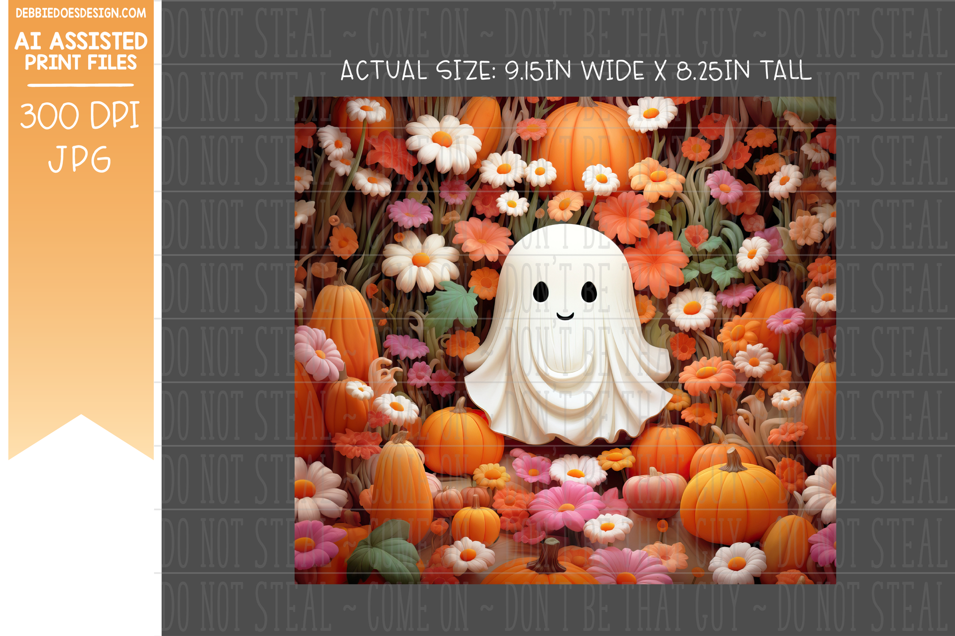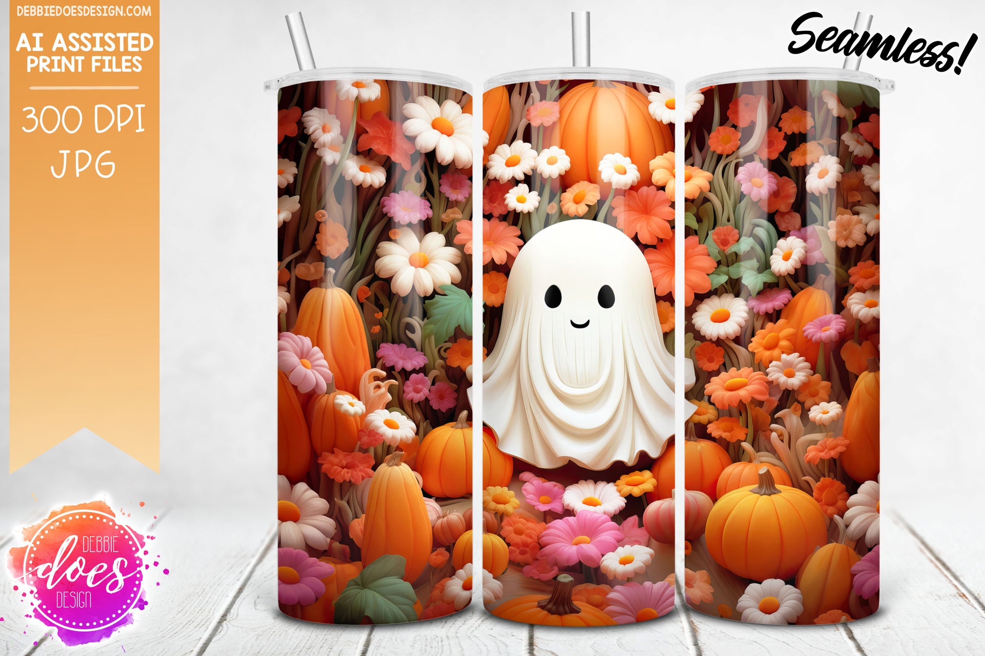 3D Clay Ghost and Flowers 4 - Tumbler - Seamless - AI Assisted Printable/Sublimation Design
