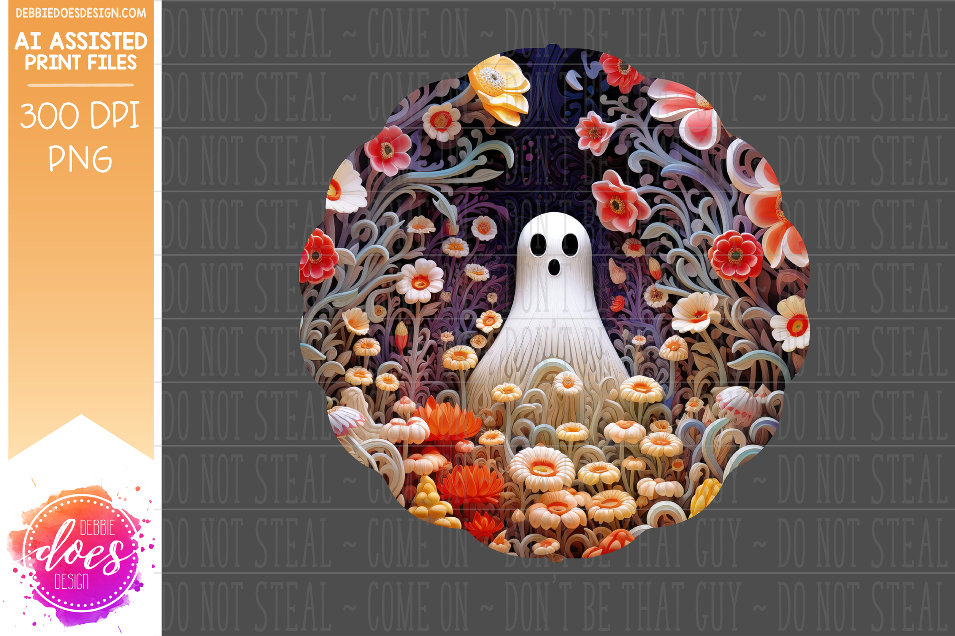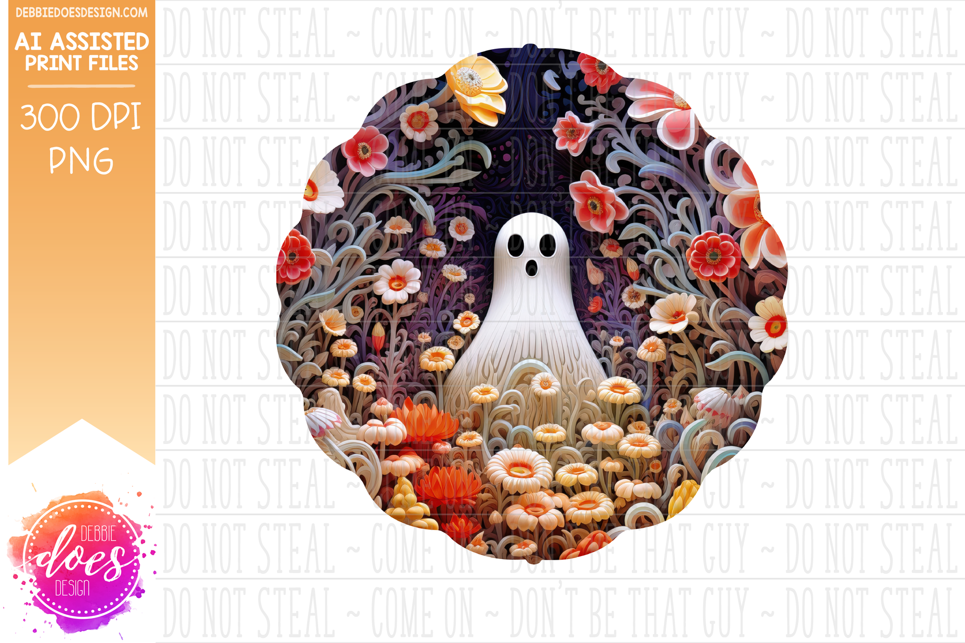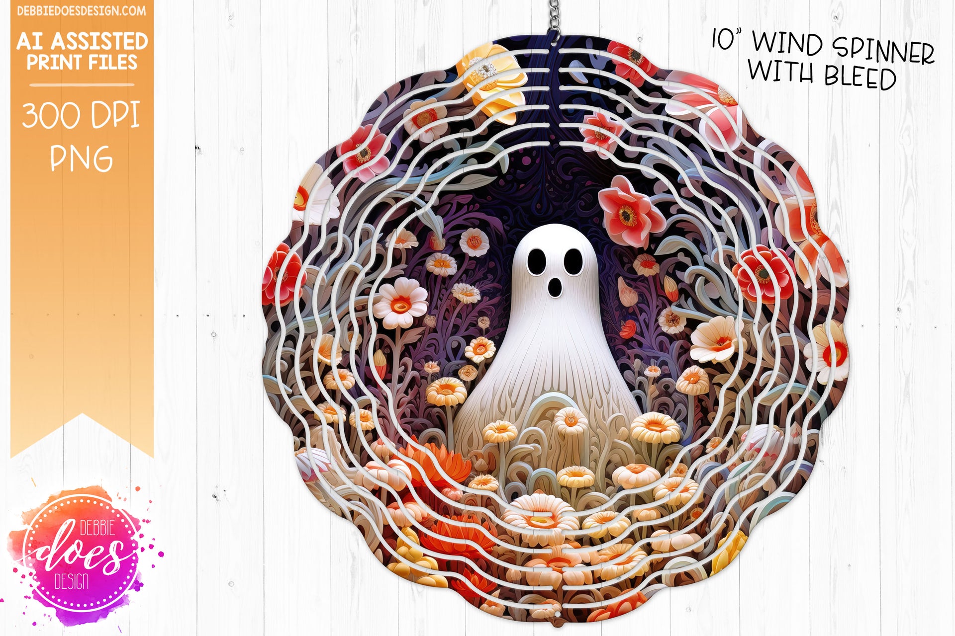 3D Clay Ghost and Flowers 5 - Wind Spinner - AI Assisted Printable/Sublimation Design