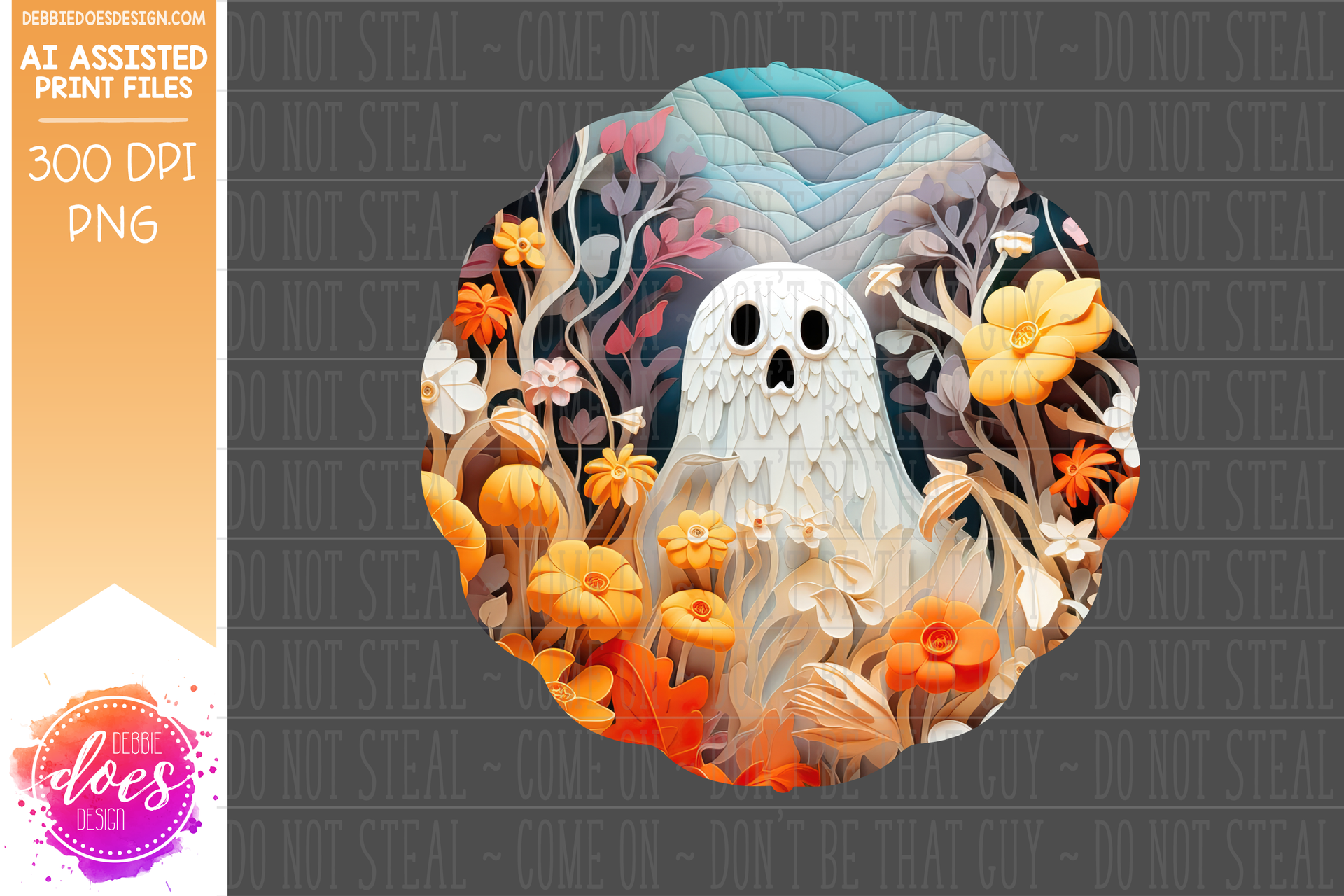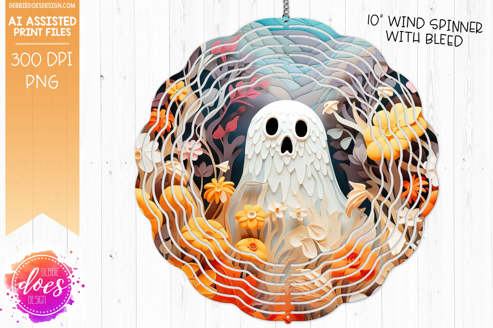 3D Clay Ghost and Flowers 6 - Wind Spinner - AI Assisted Printable/Sublimation Design