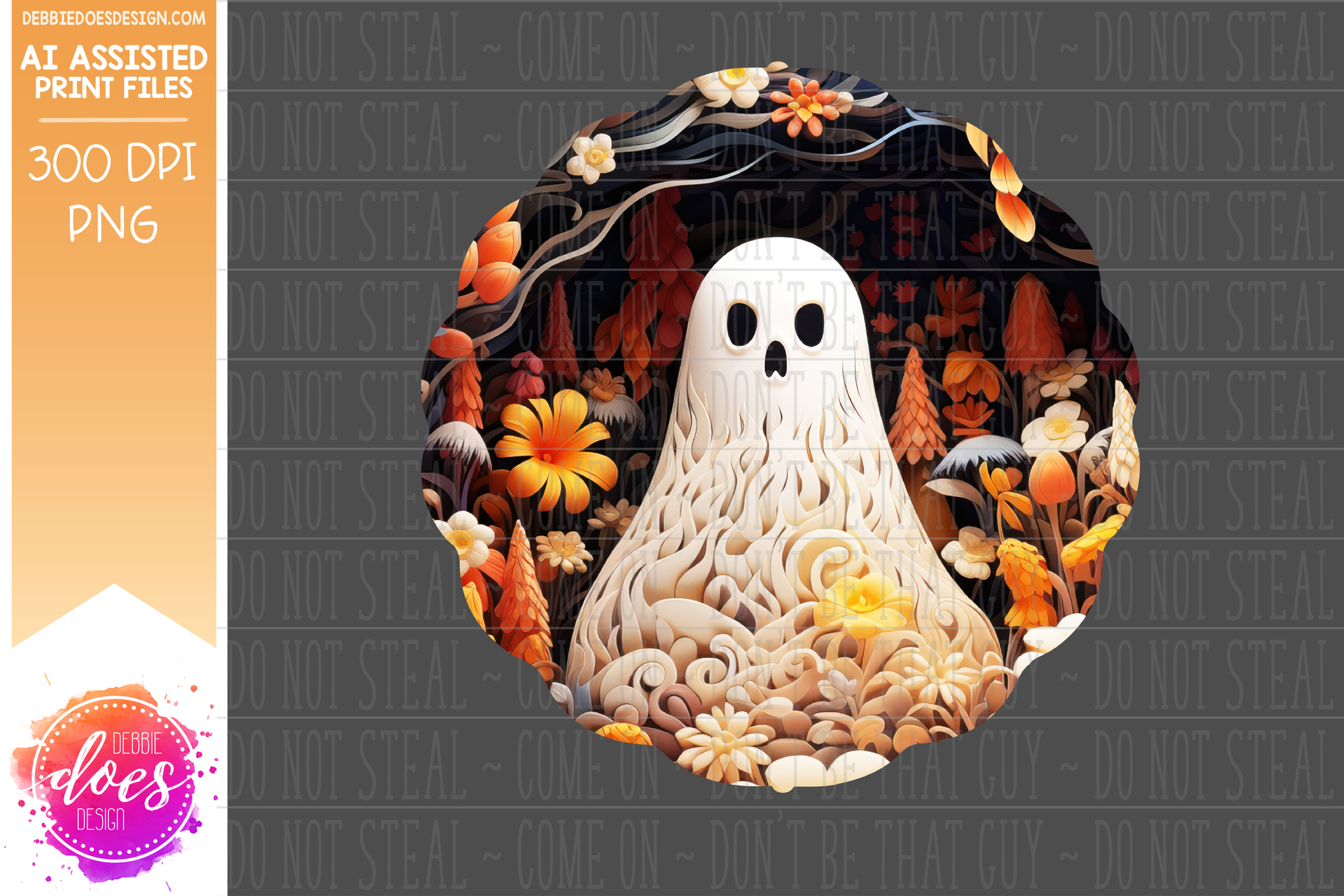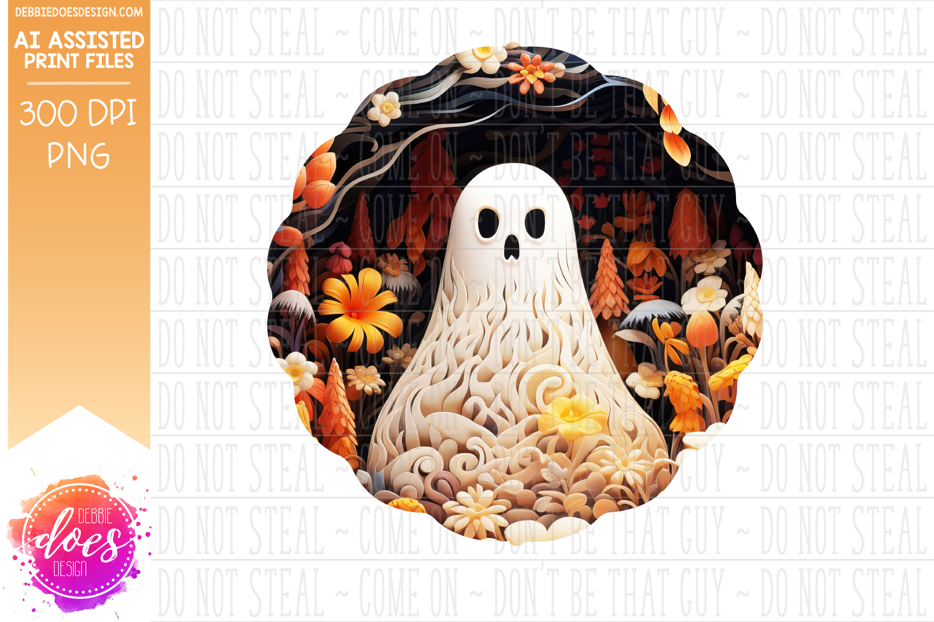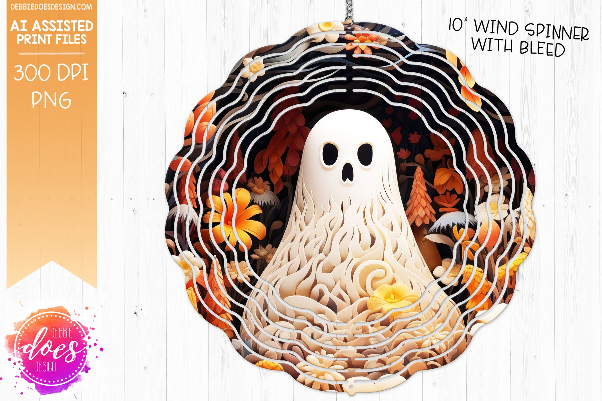 3D Clay Ghost and Flowers 8 - Wind Spinner - AI Assisted Printable/Sublimation Design
