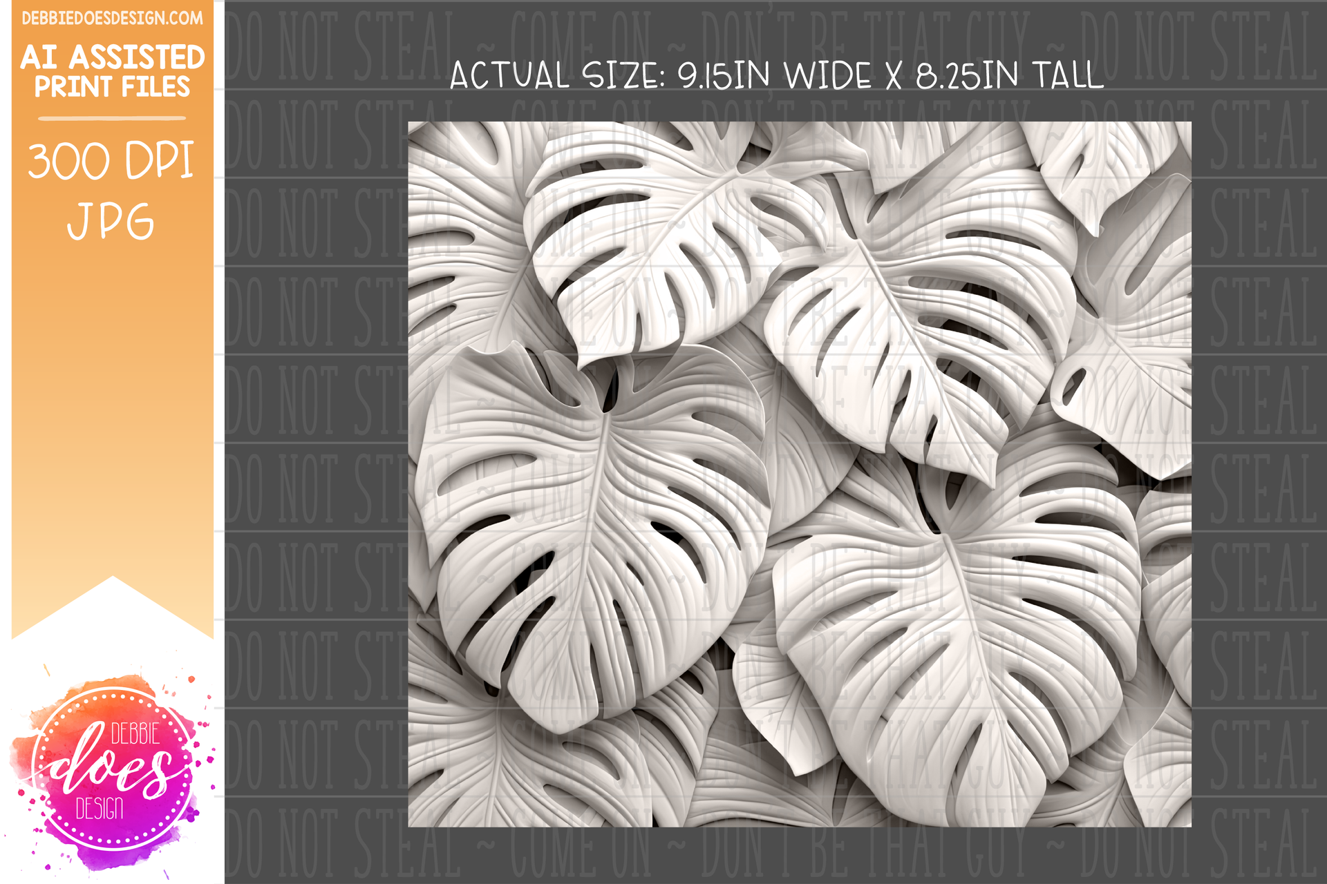 3D Clay Monstera Leaves 1 - 3D Tumbler - Printable/Sublimation Design