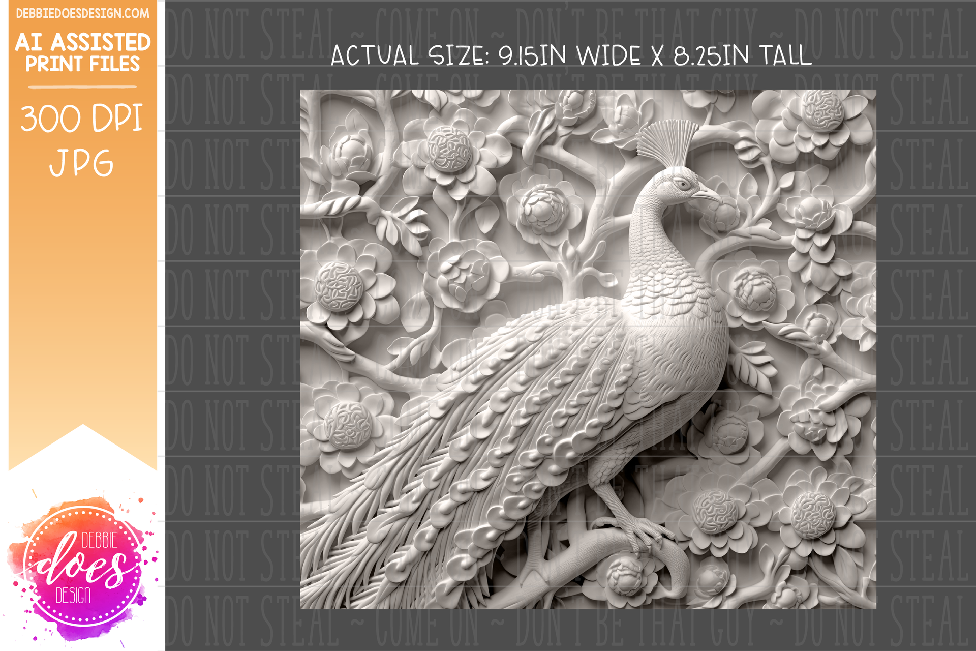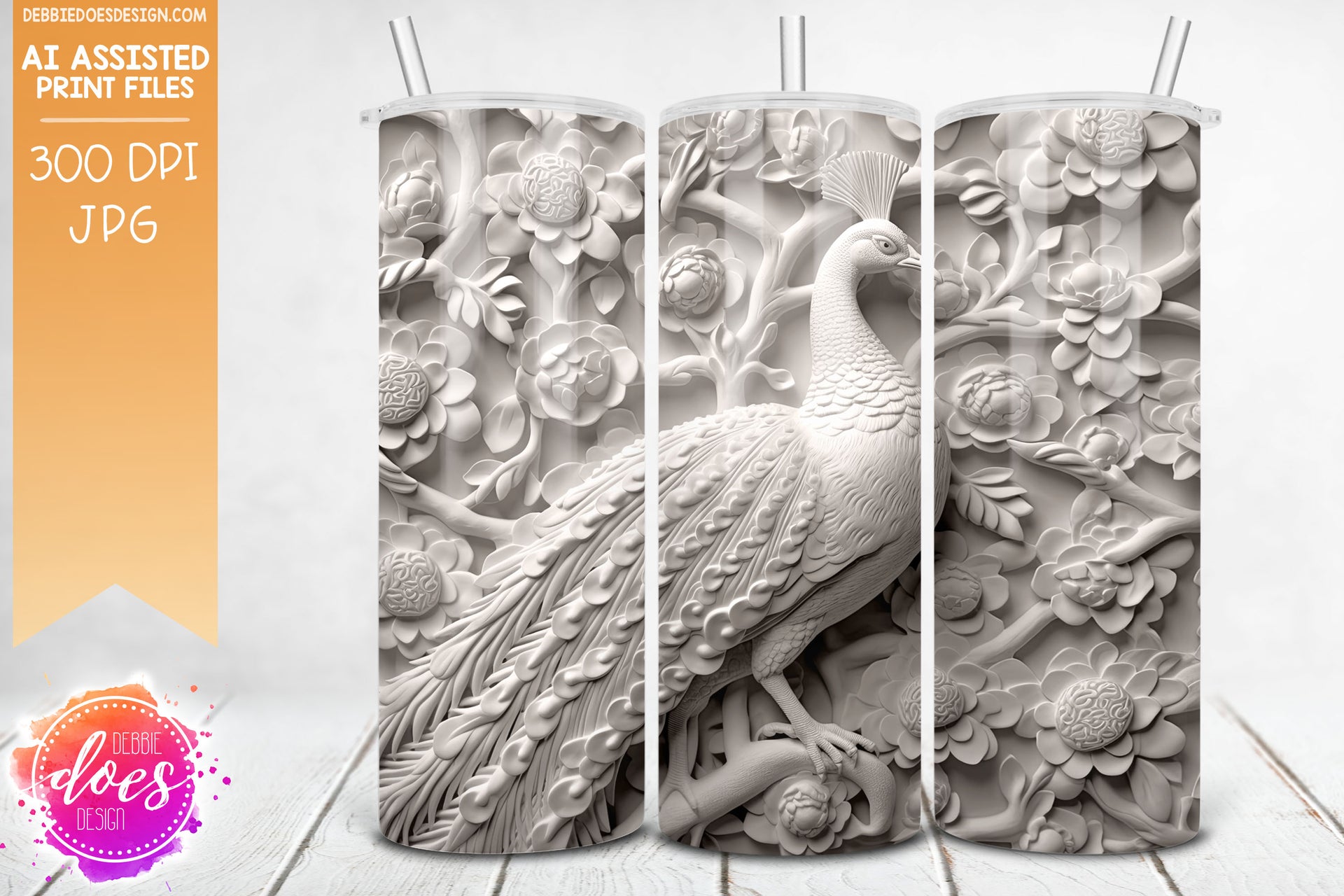 3D Clay Peacock 2 - 3D Tumbler - Printable/Sublimation Design