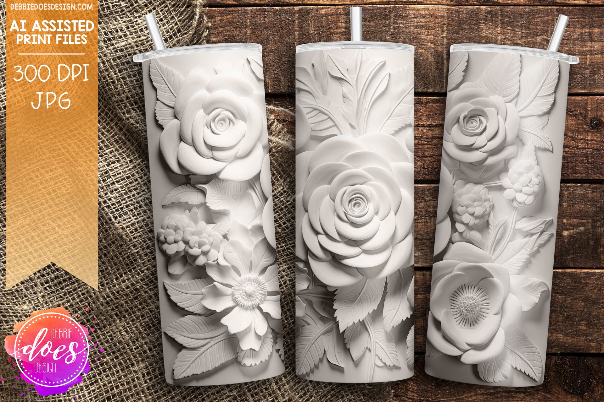 3D Clay Flowers 1 - 3D Tumbler - Printable/Sublimation Design