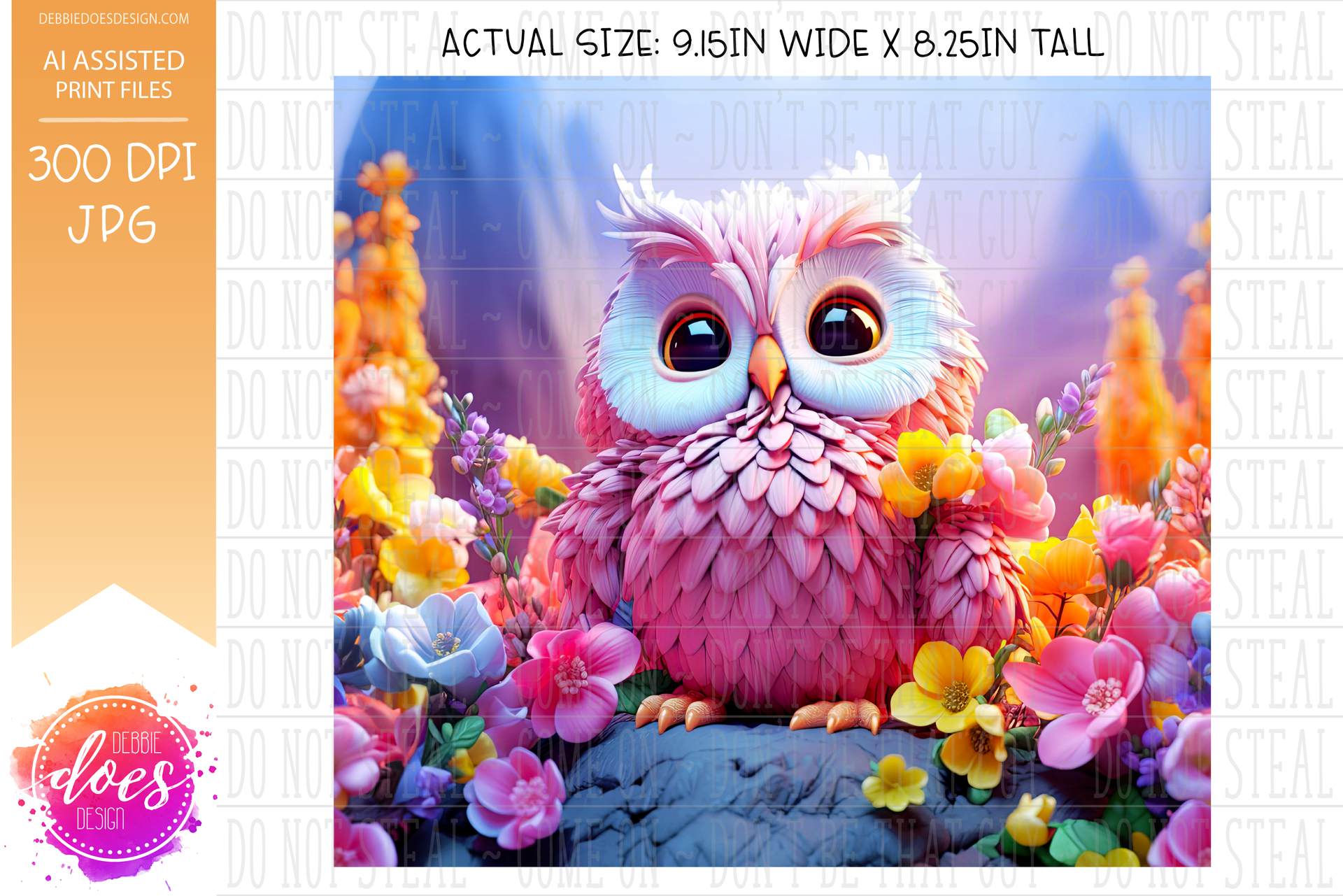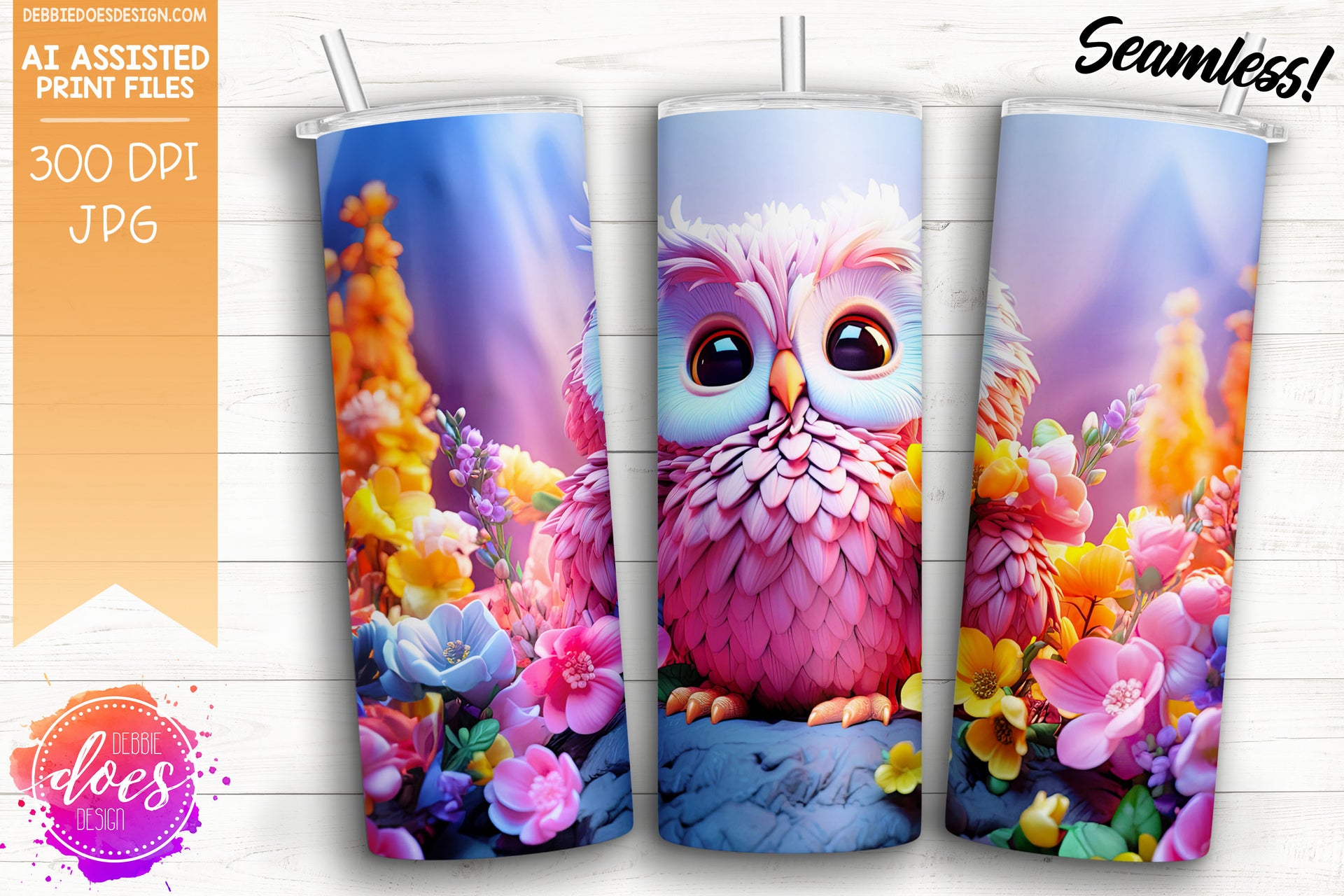 3D Cute Pink Owl in Flowers 1 - Seamless 3D Tumbler - Printable/Sublimation Design