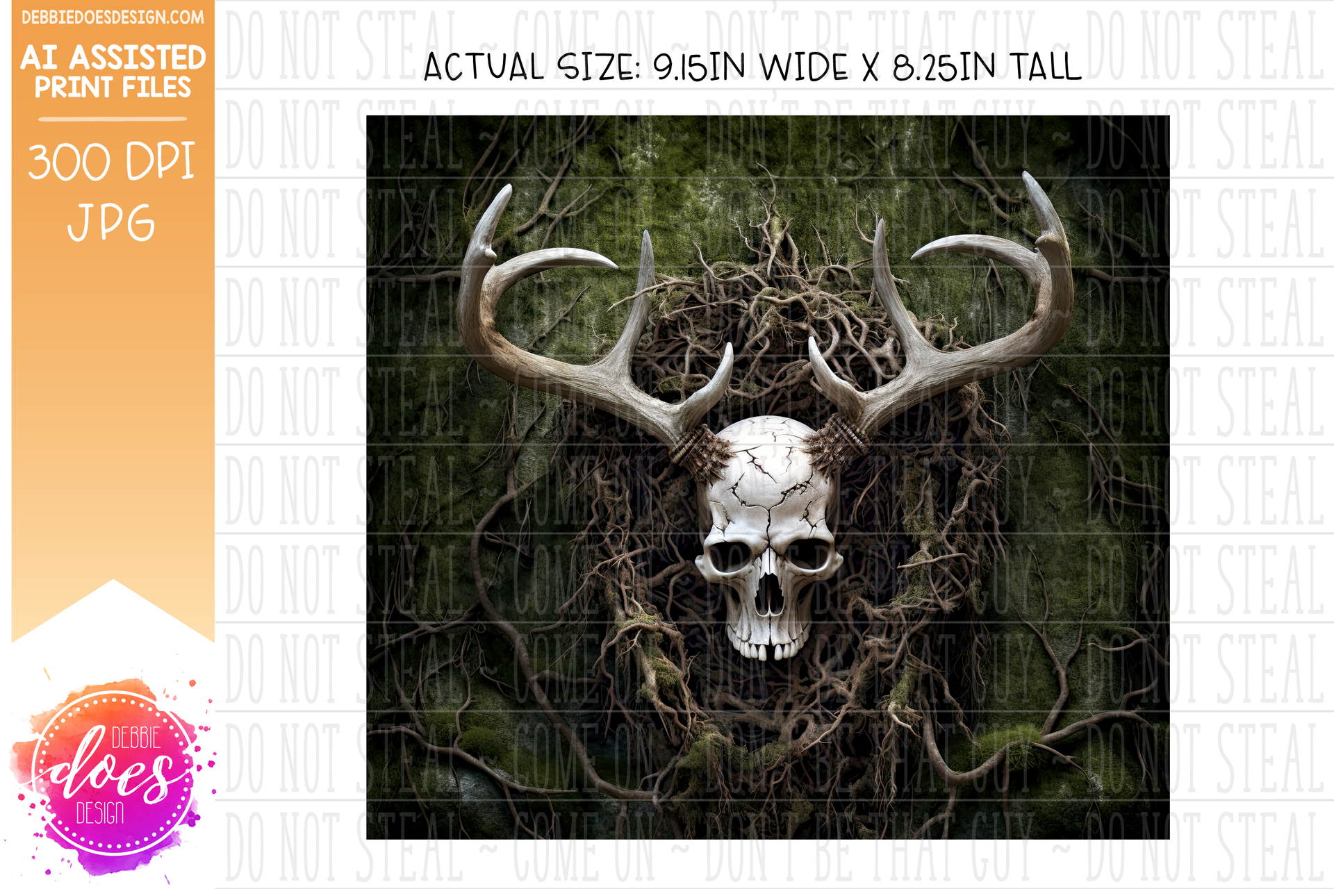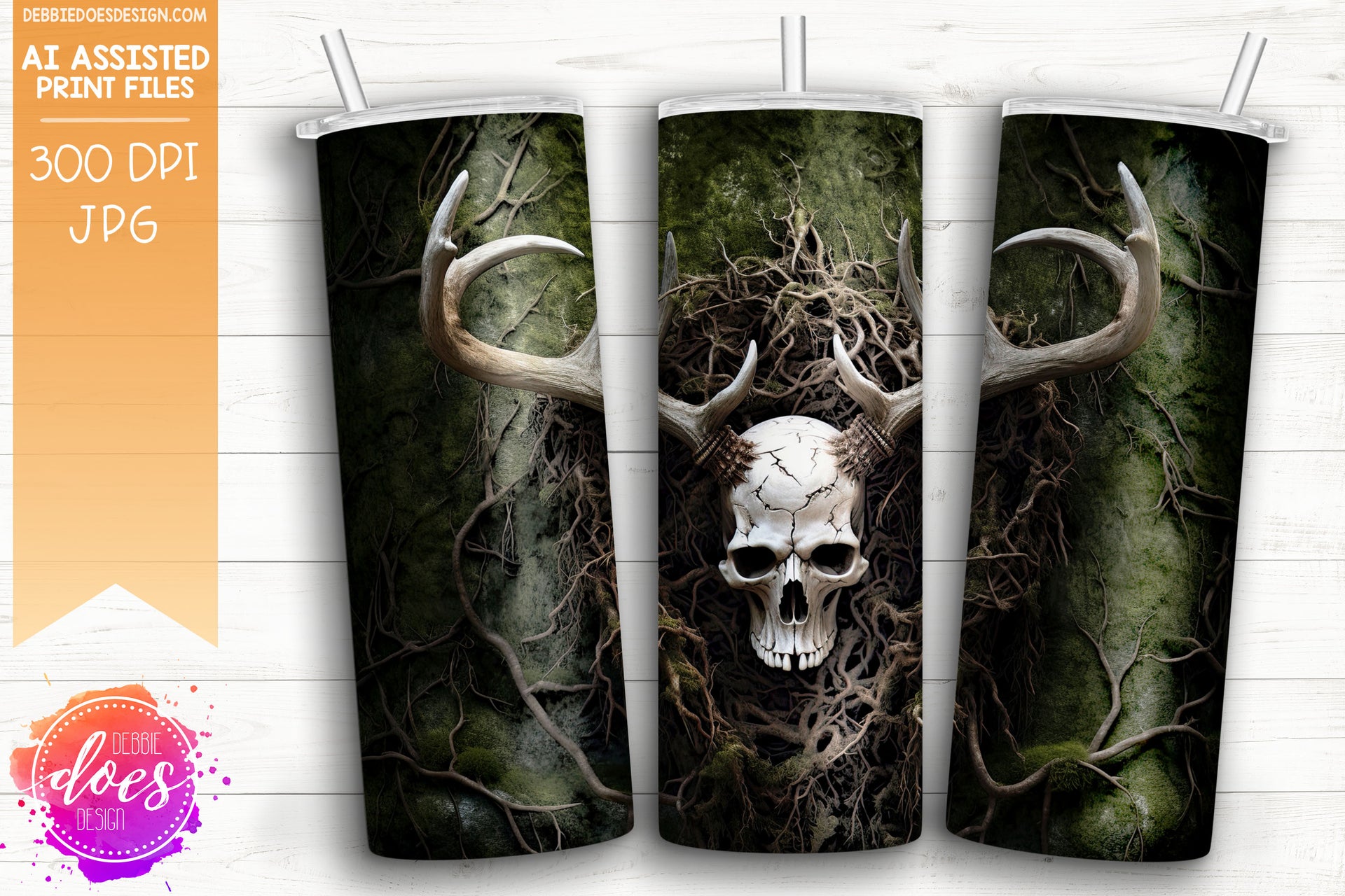 3D Evil Skull with Antlers 1 - 3D Tumbler - Printable/Sublimation Design