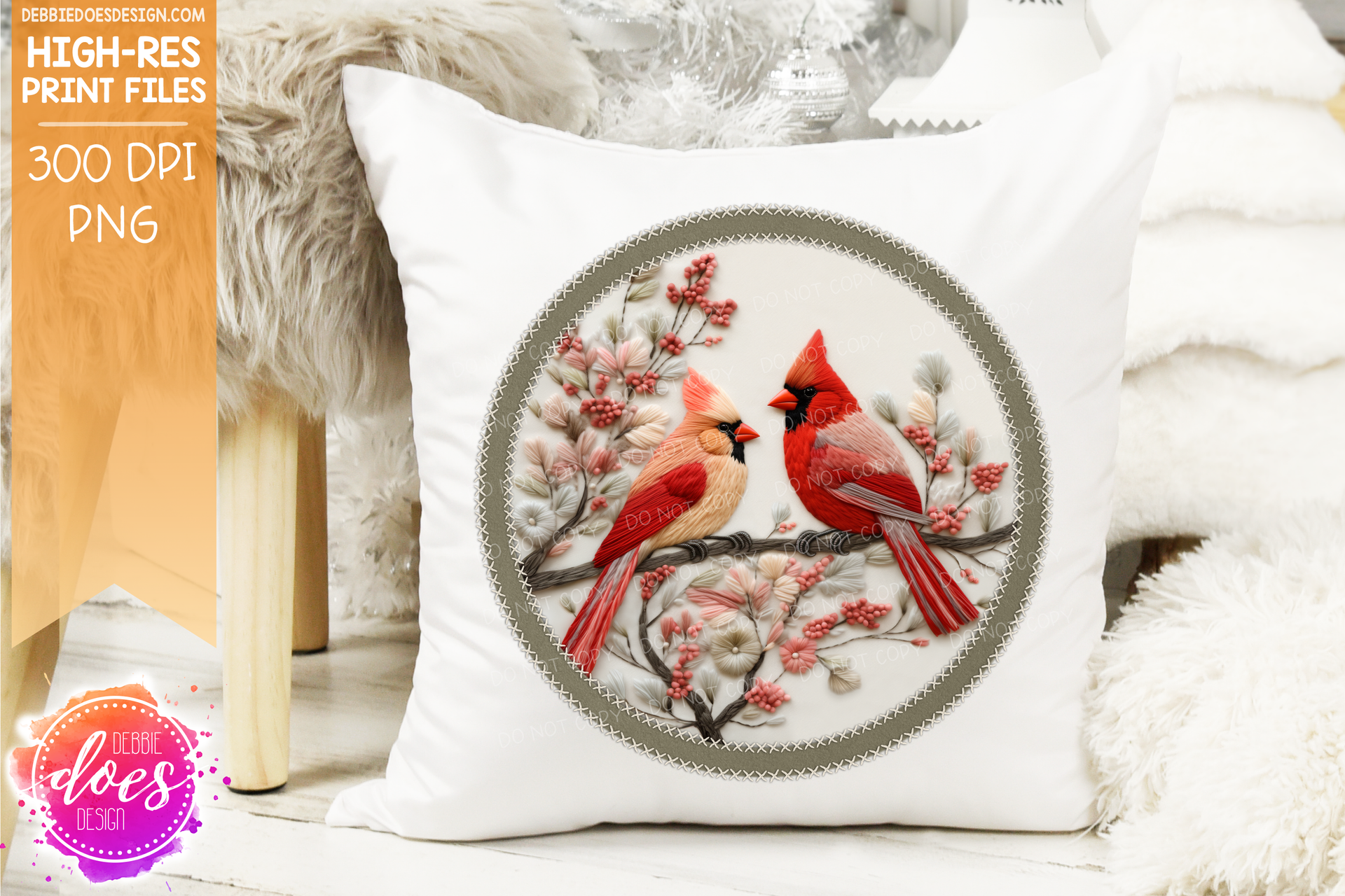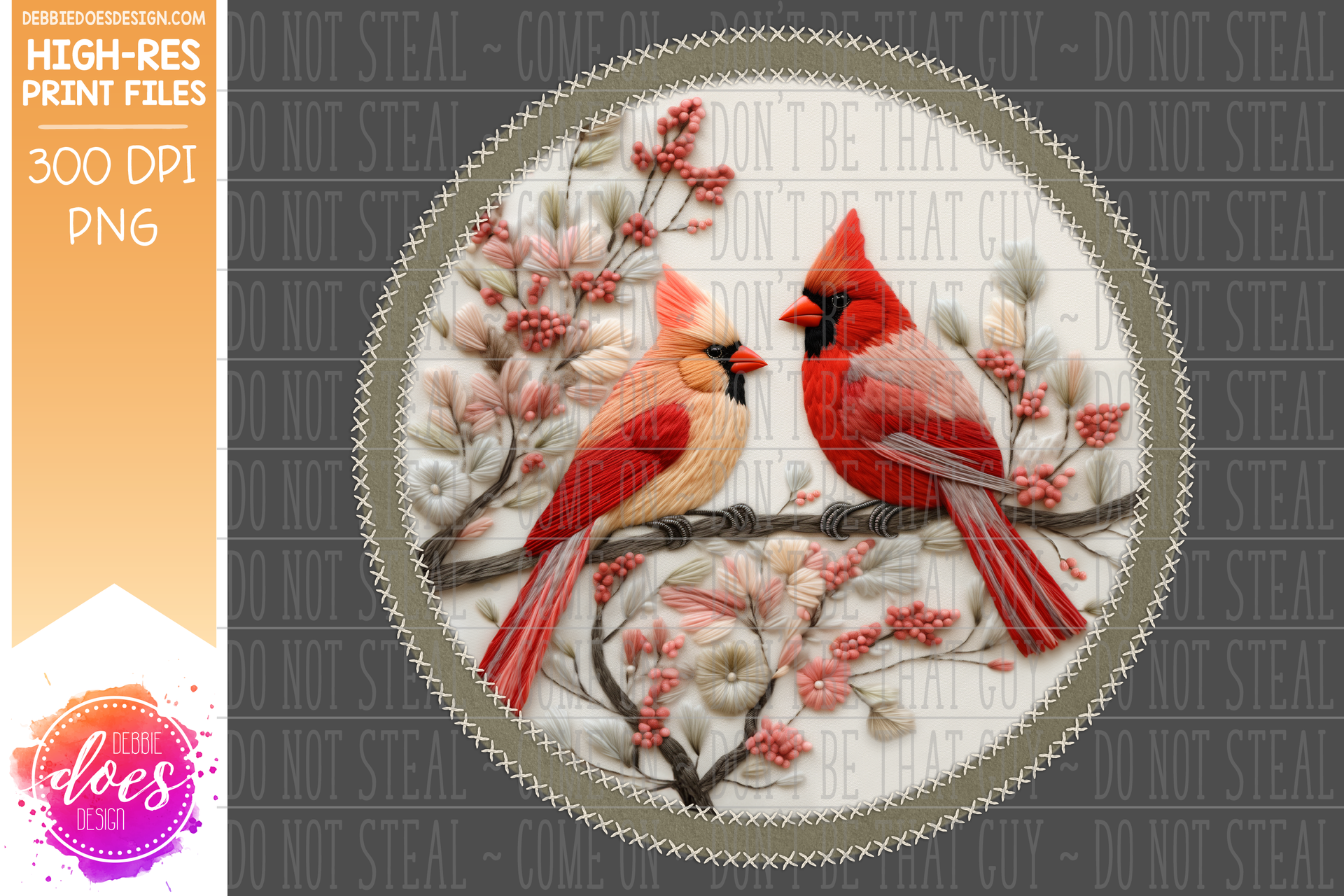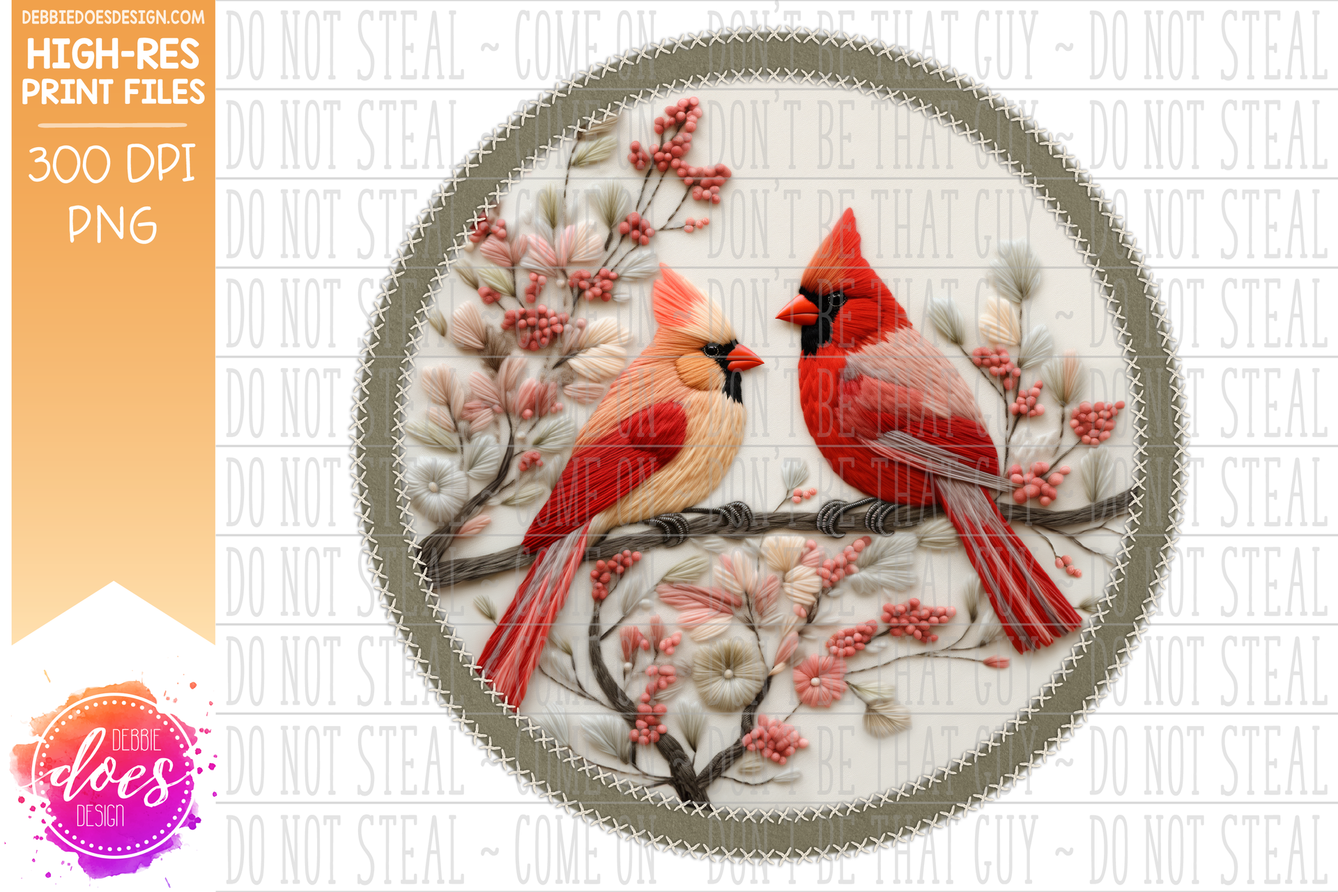 3D Felt Circle Applique - Cardinal Pair - Green - Sublimation/Printable Design