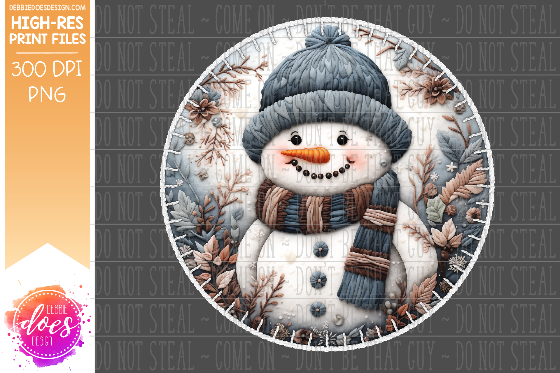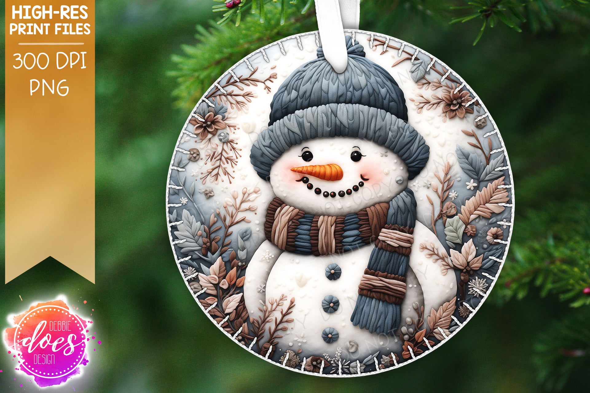 3D Felt Circle Ornament - Blue Brown Snowman - Sublimation/Printable Design