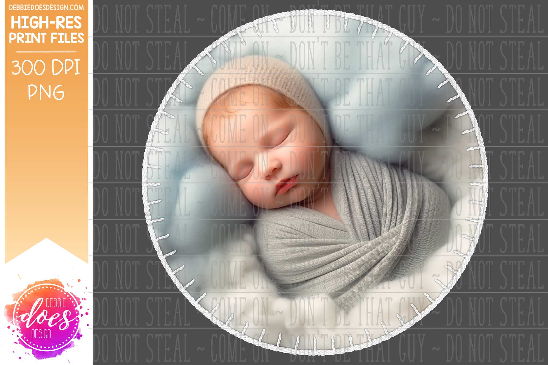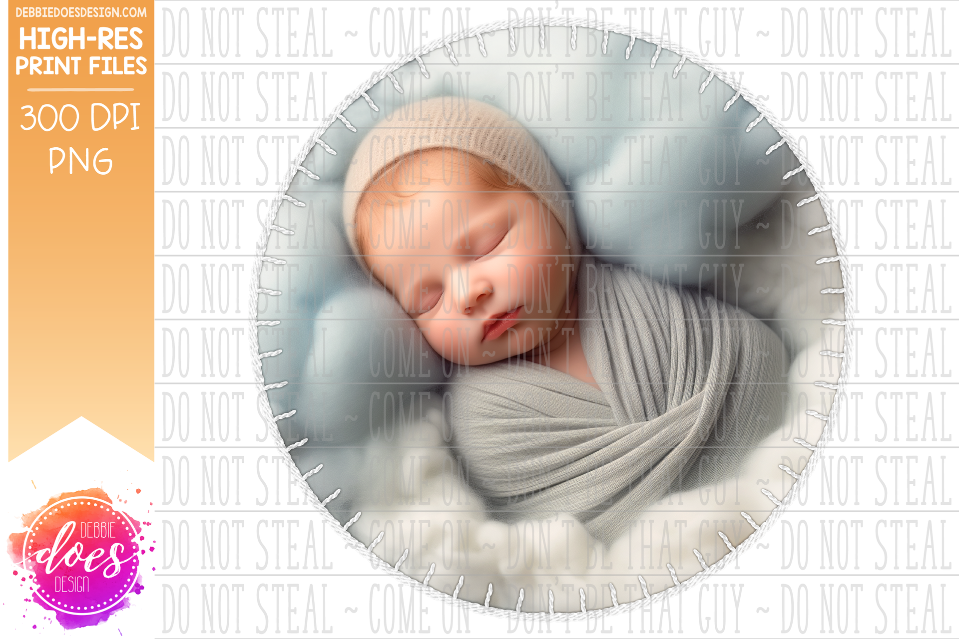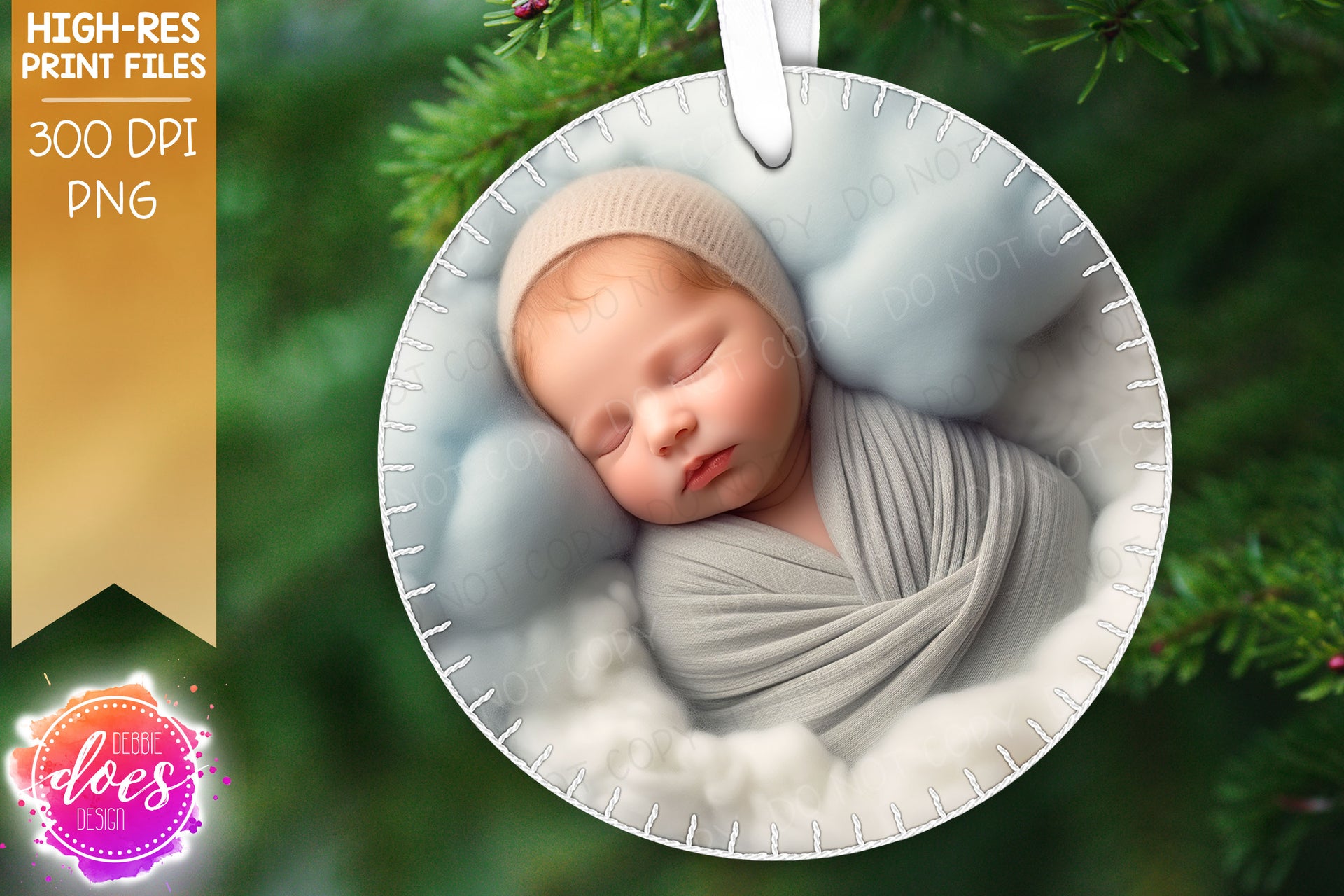 3D Felt Circle Ornament - Cloud Baby - Blue White - Sublimation/Printable Design
