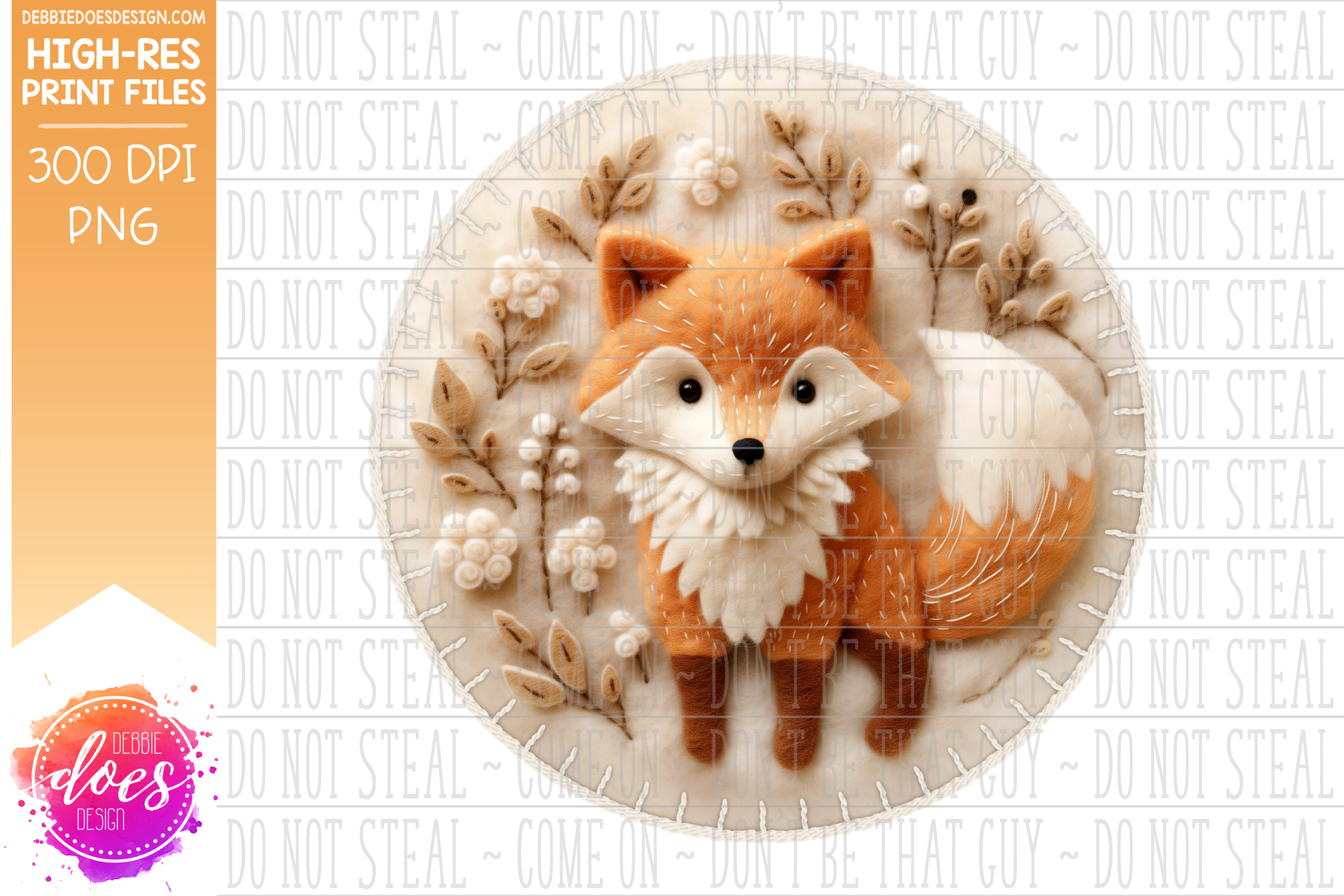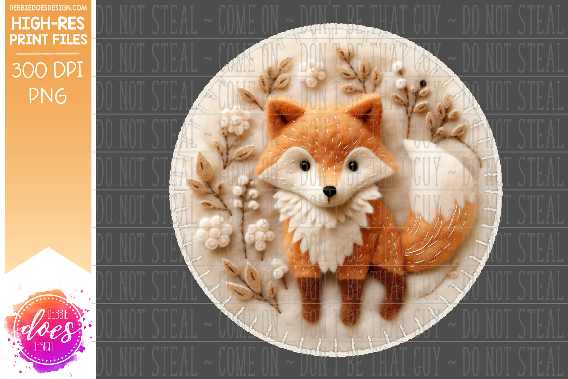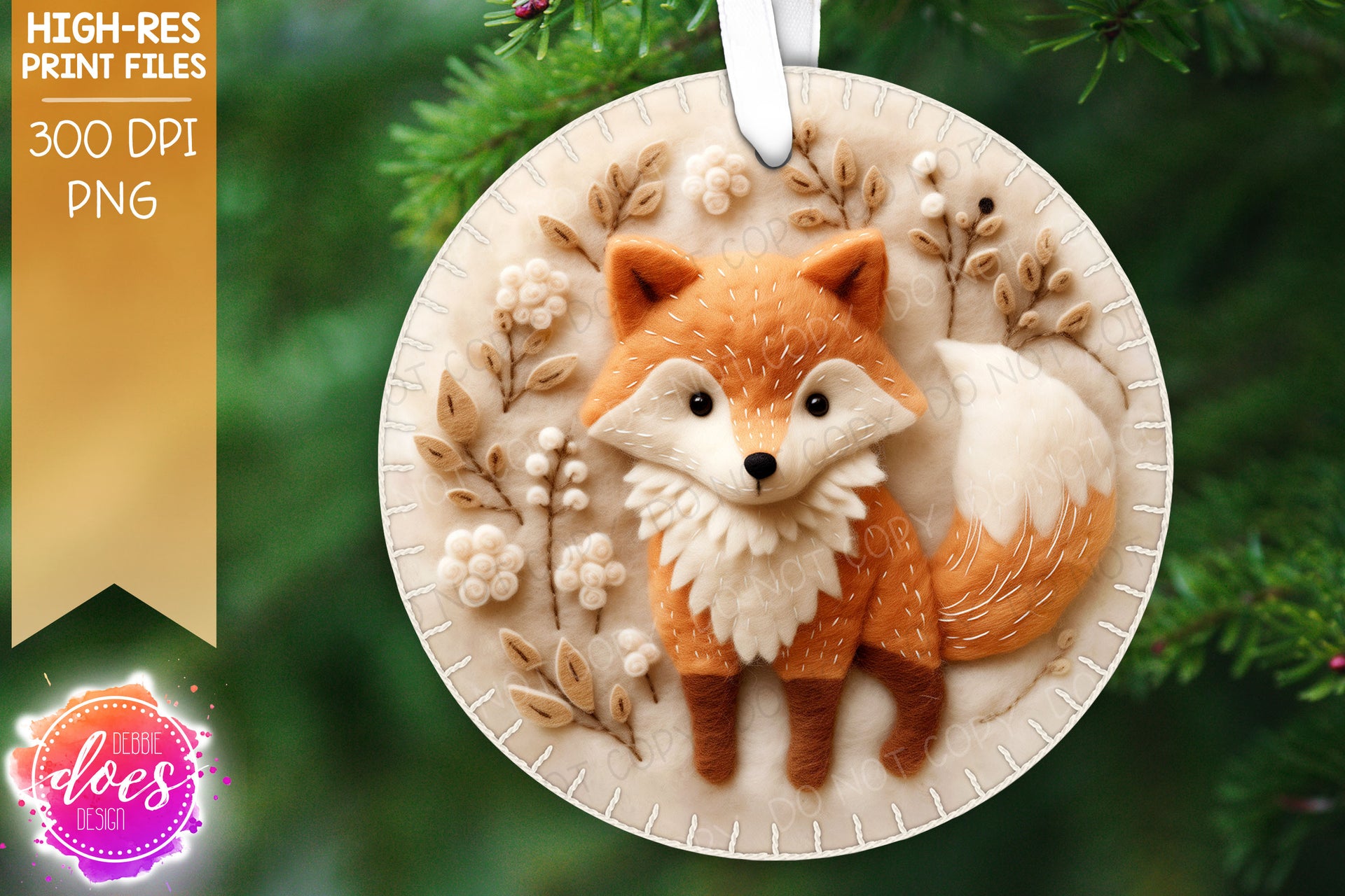3D Felt Circle Ornament - Fox Ivory Tan Leaves - Sublimation/Printable Design