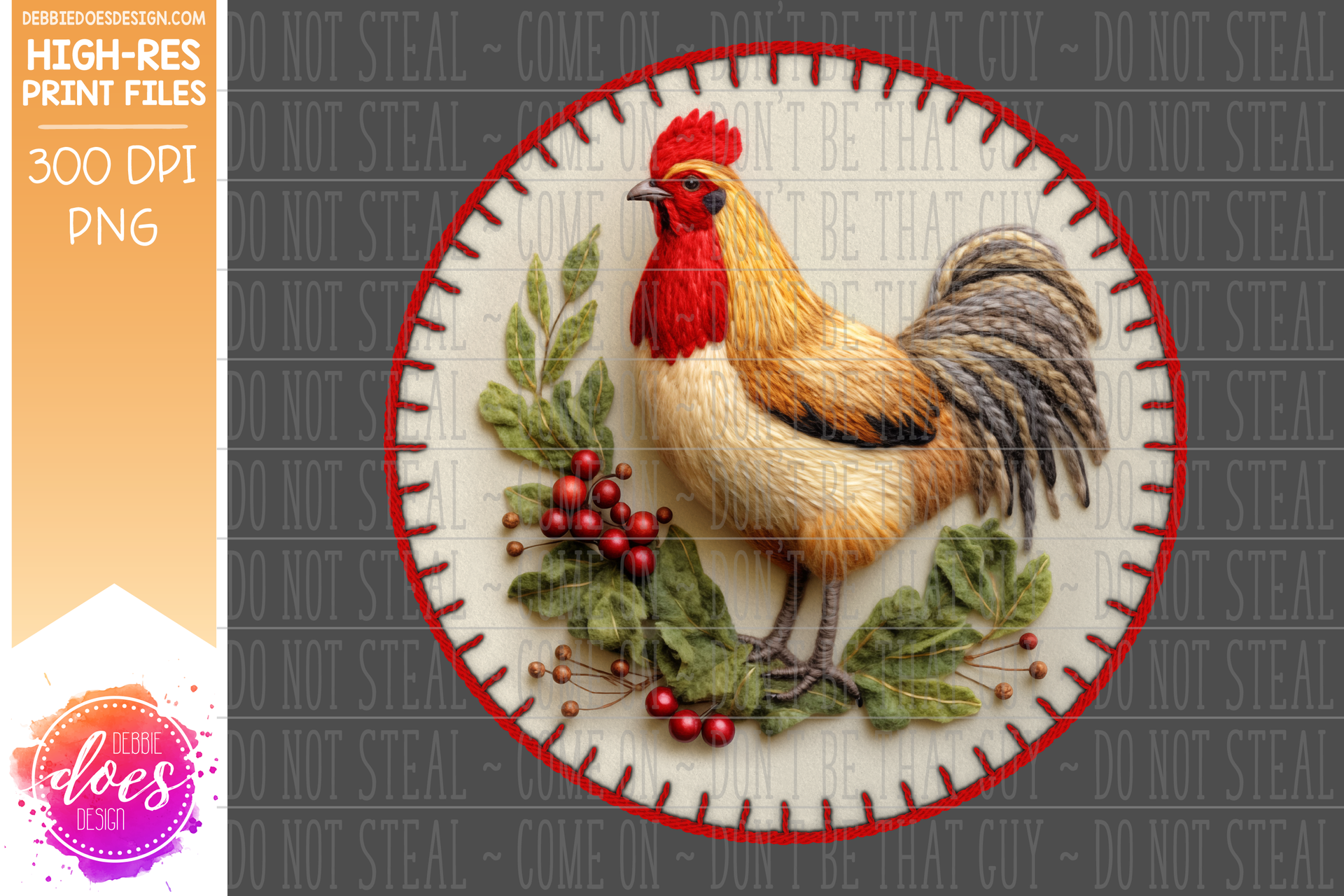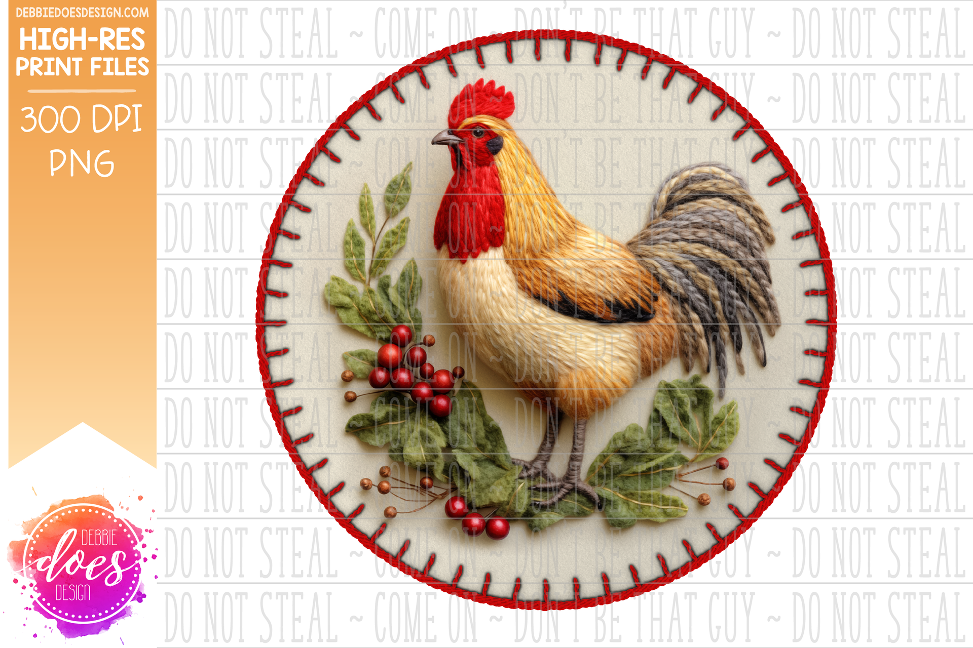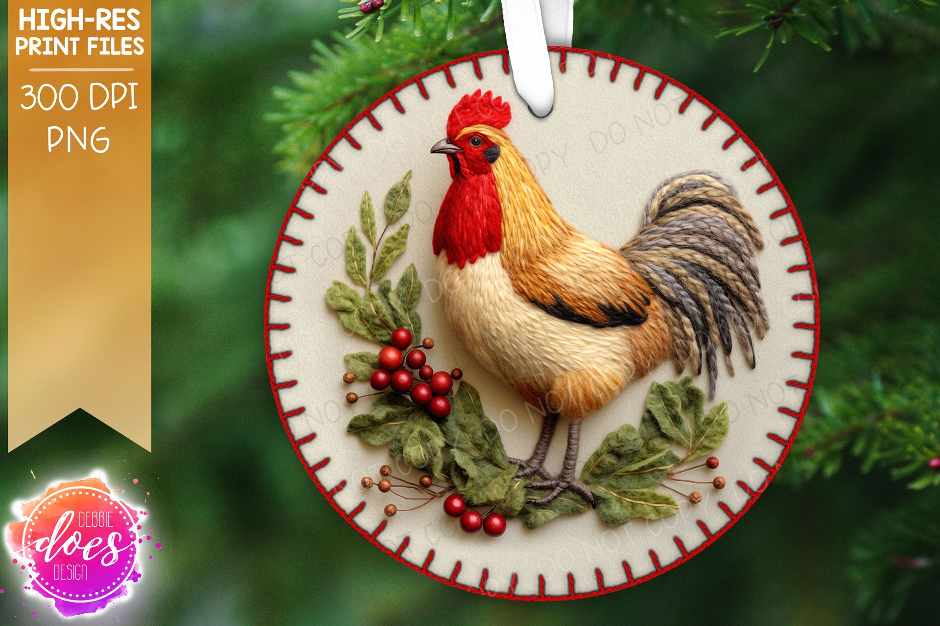 3D Felt Circle Ornament - Holly and Berries Buff Chicken - Red - Sublimation/Printable Design