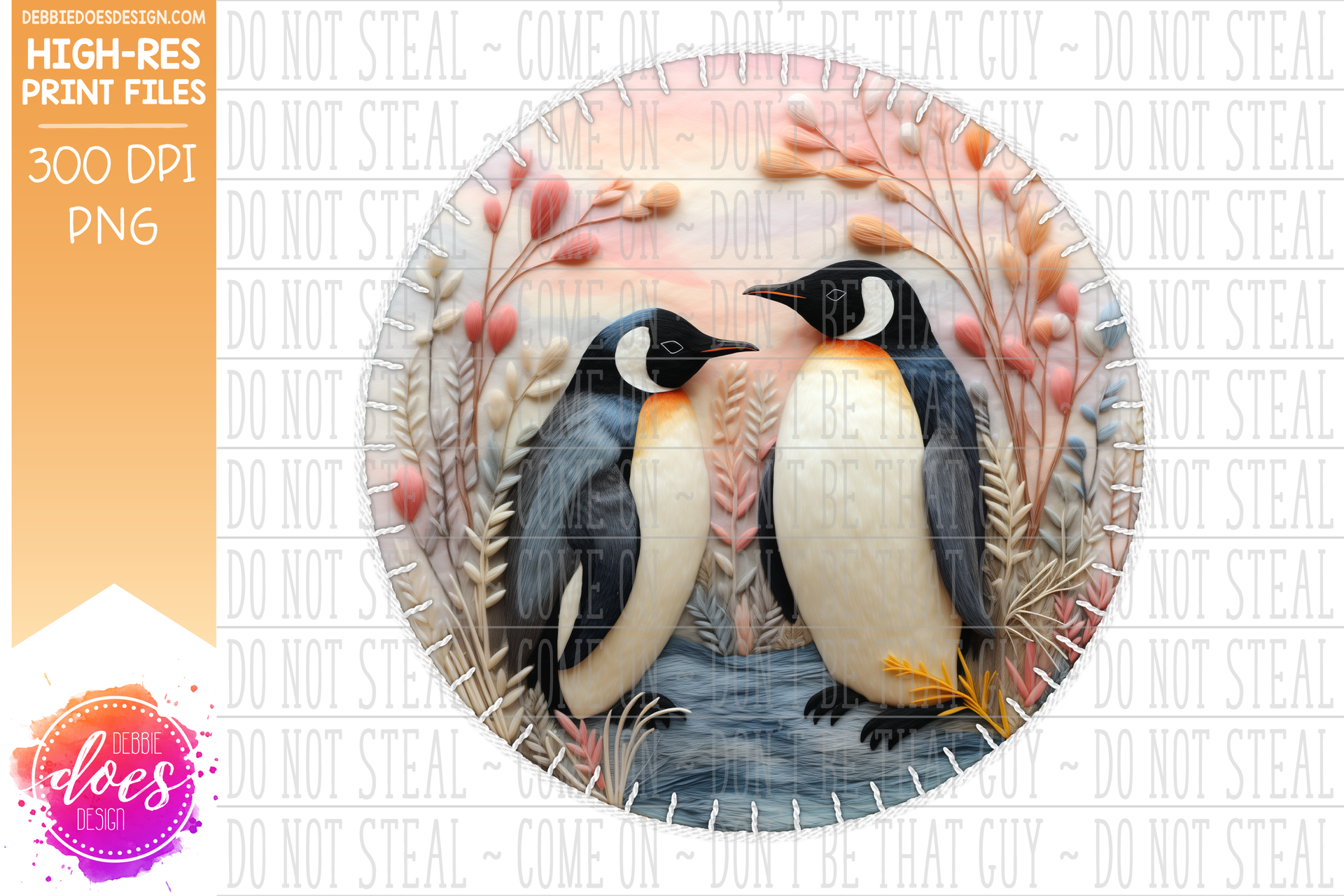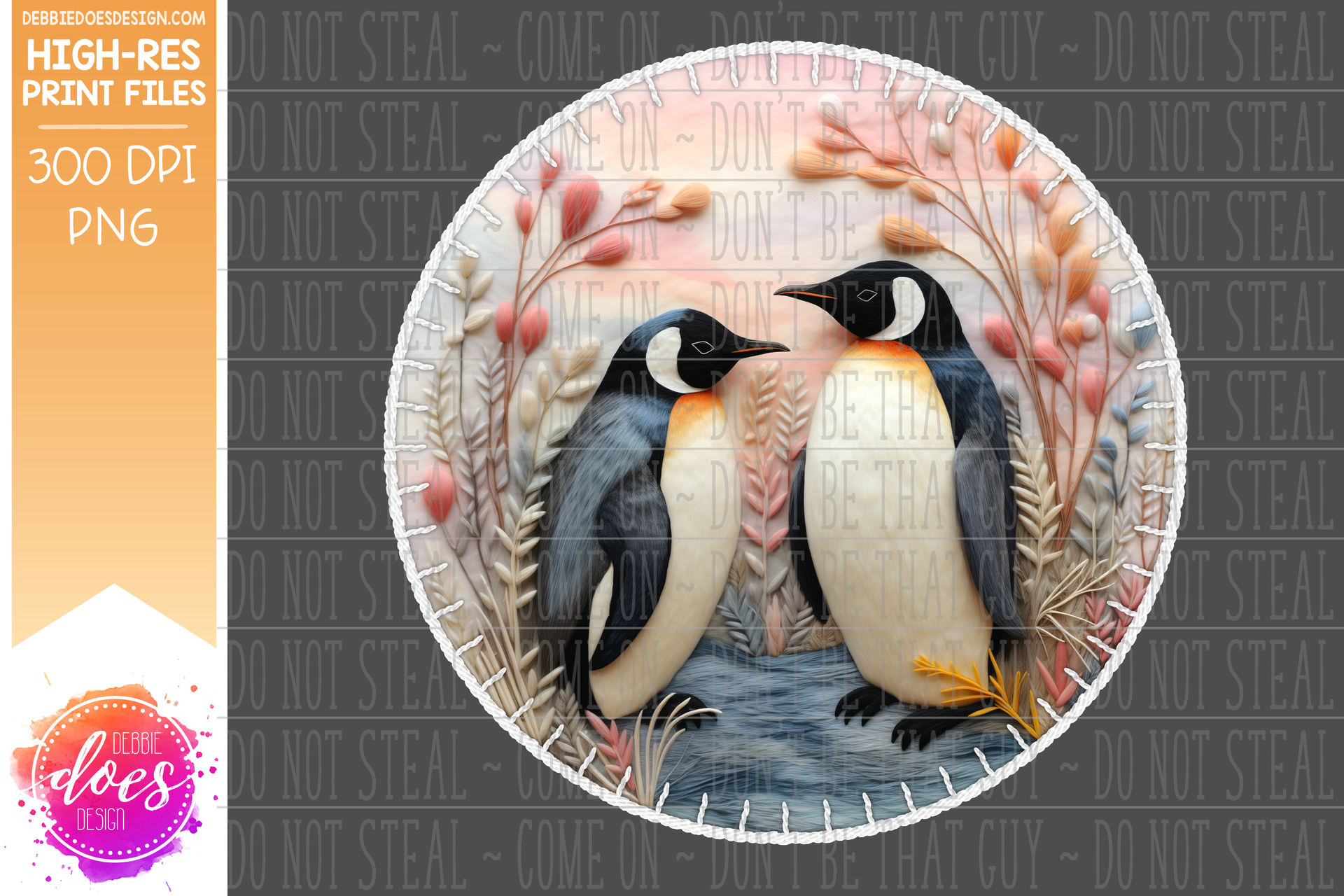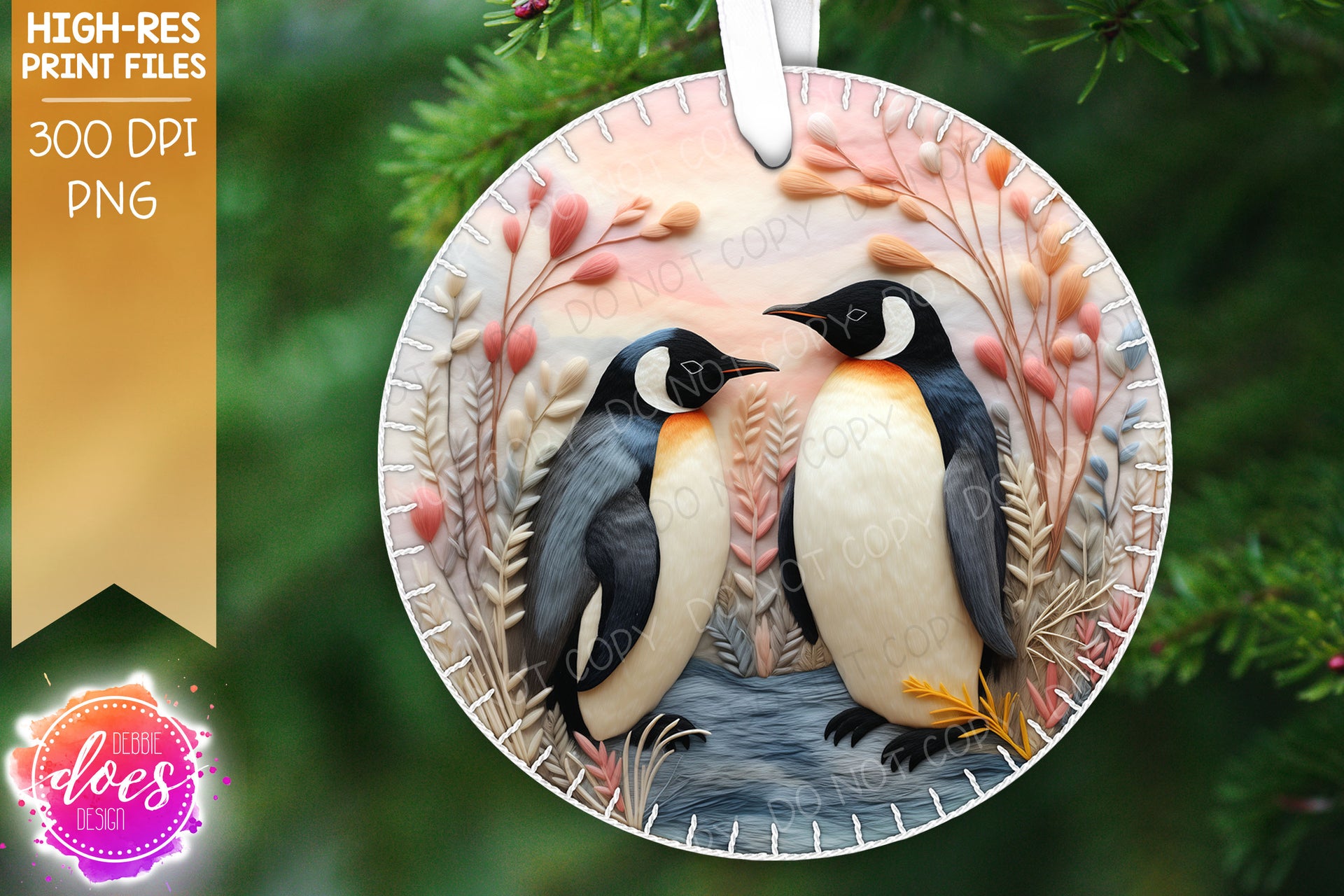 3D Felt Circle Ornament - Penguin Couple Pastels - Sublimation/Printable Design