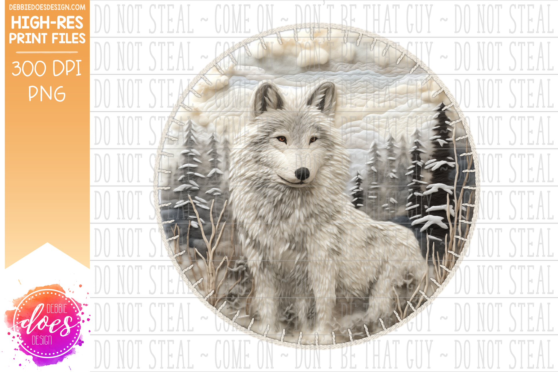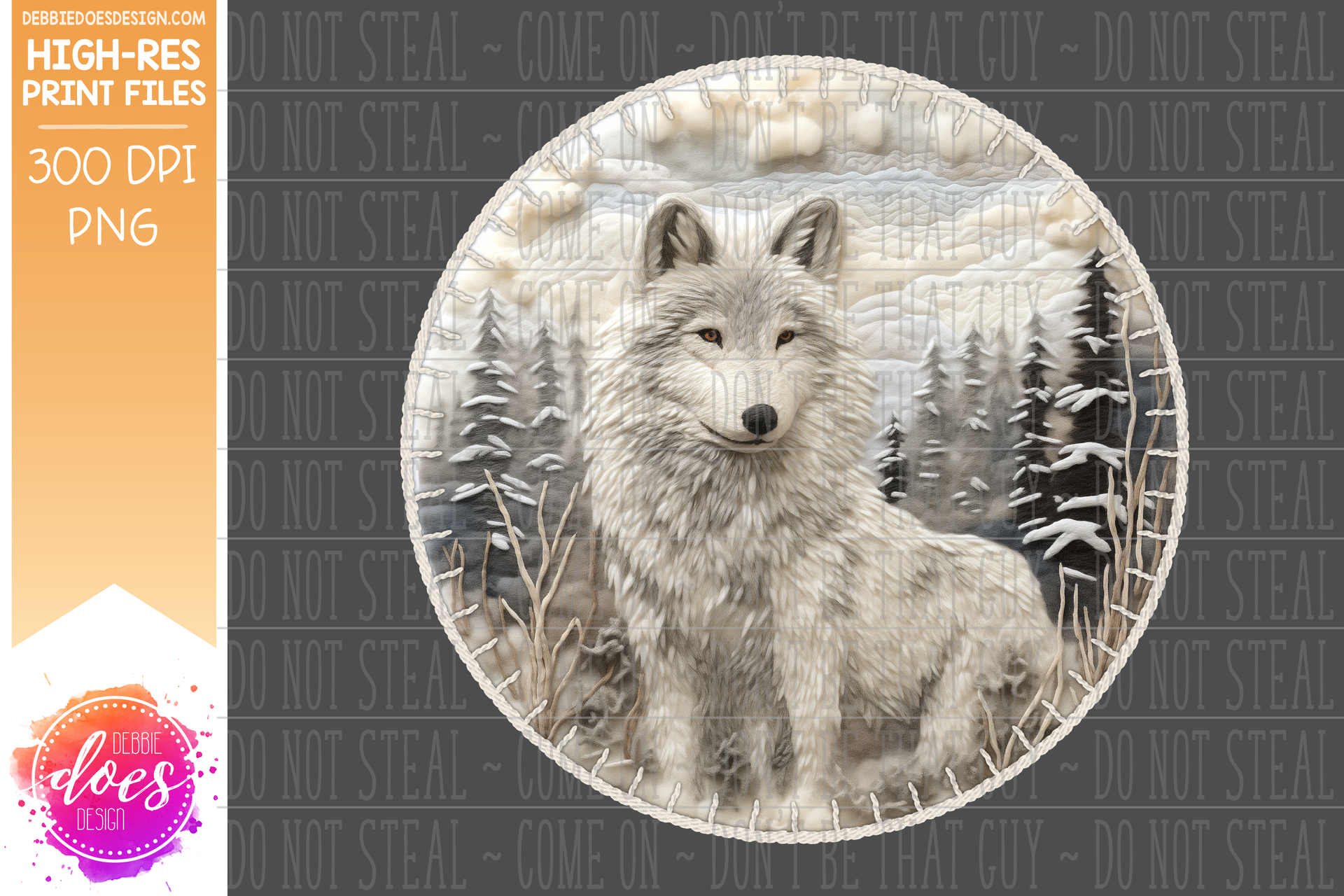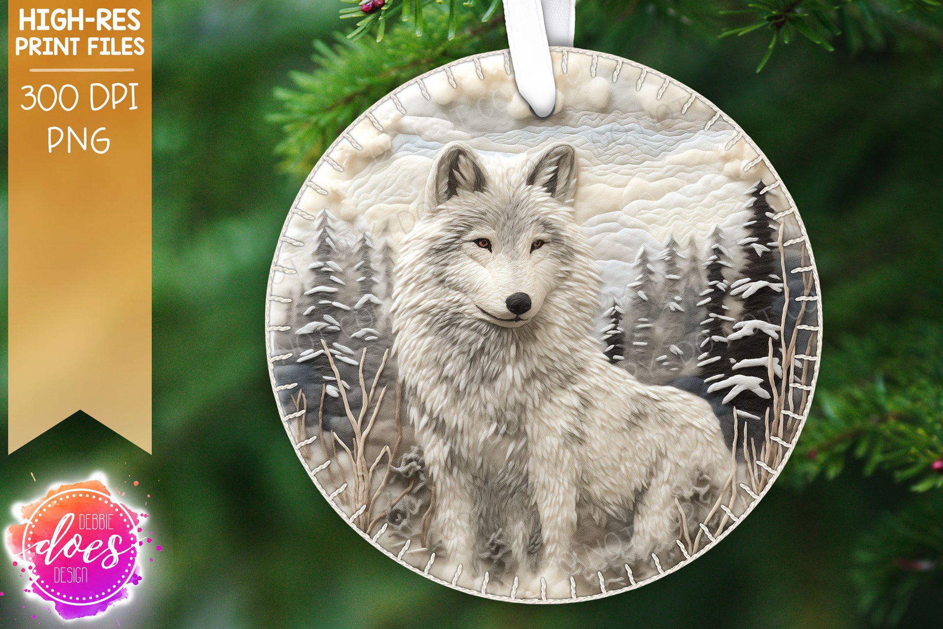 3D Felt Circle Ornament - Soft Winter Wolf - Sublimation/Printable Design