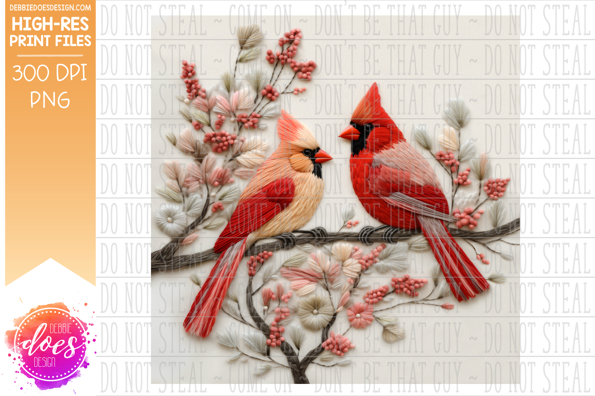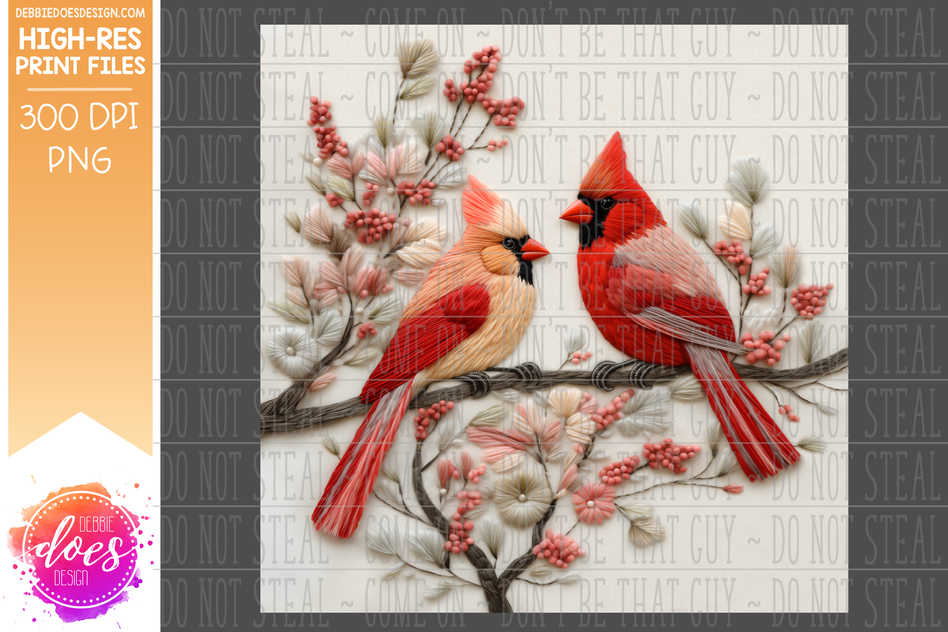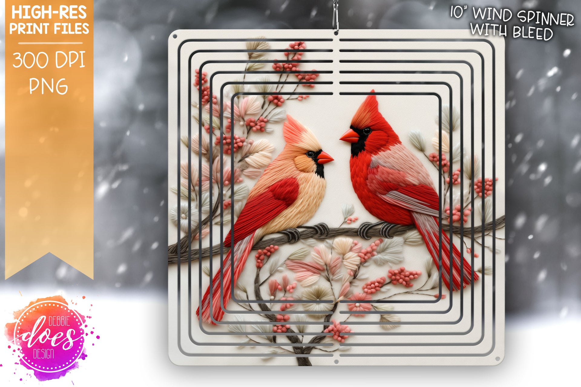 3D Felt Stitched Cardinal Pair - Square Wind Spinner - Printable/Sublimation Design
