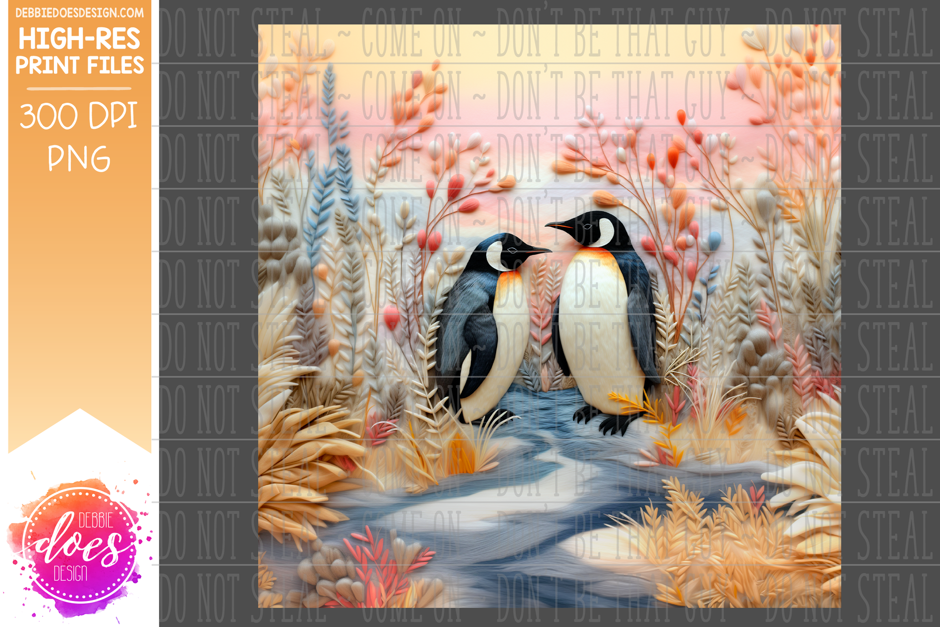 3D Felt Stitched Penguin Couple Pastels - Square Wind Spinner - Printable/Sublimation Design