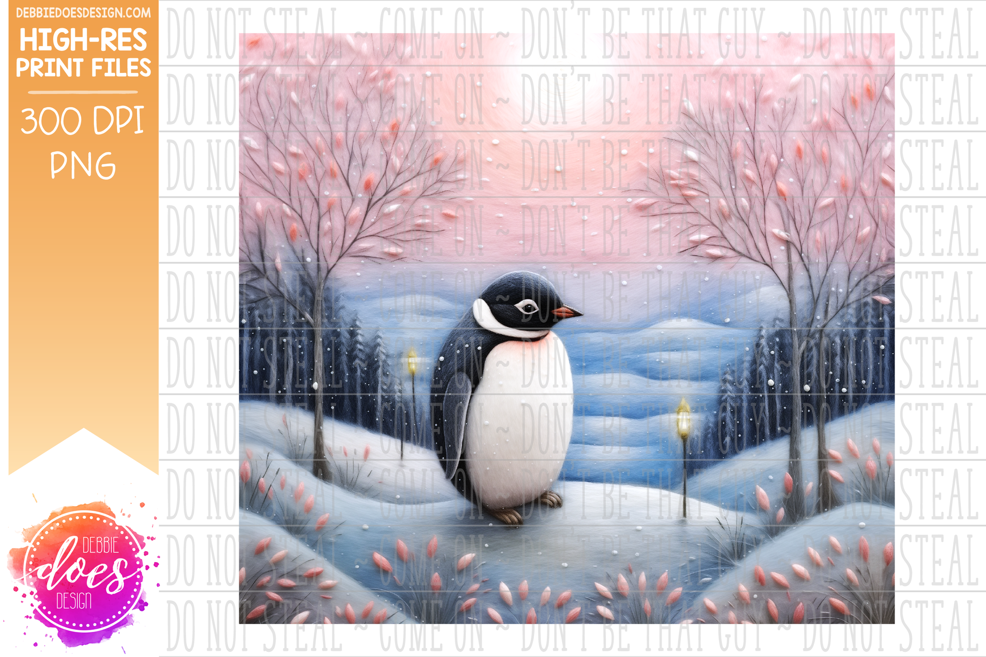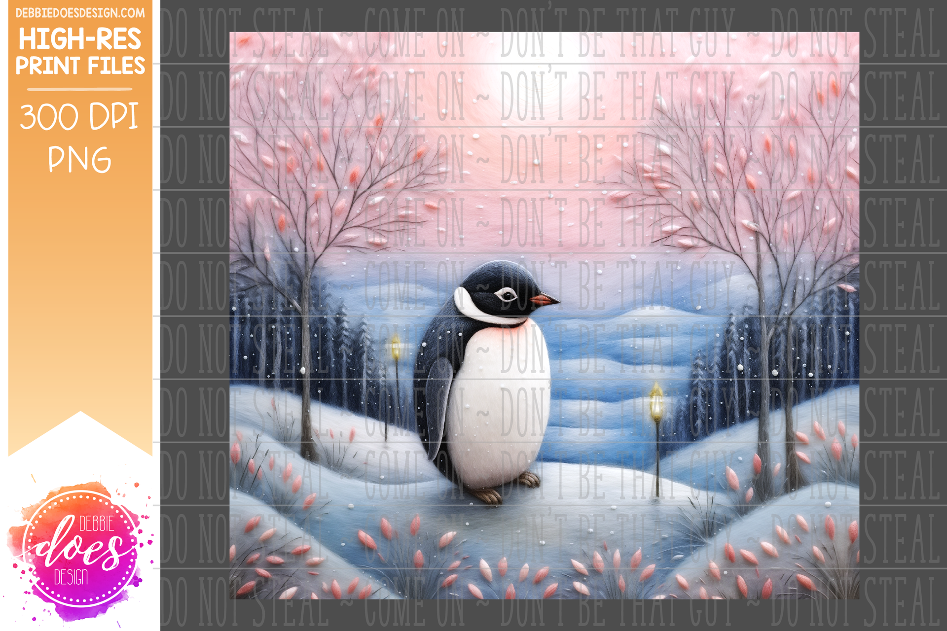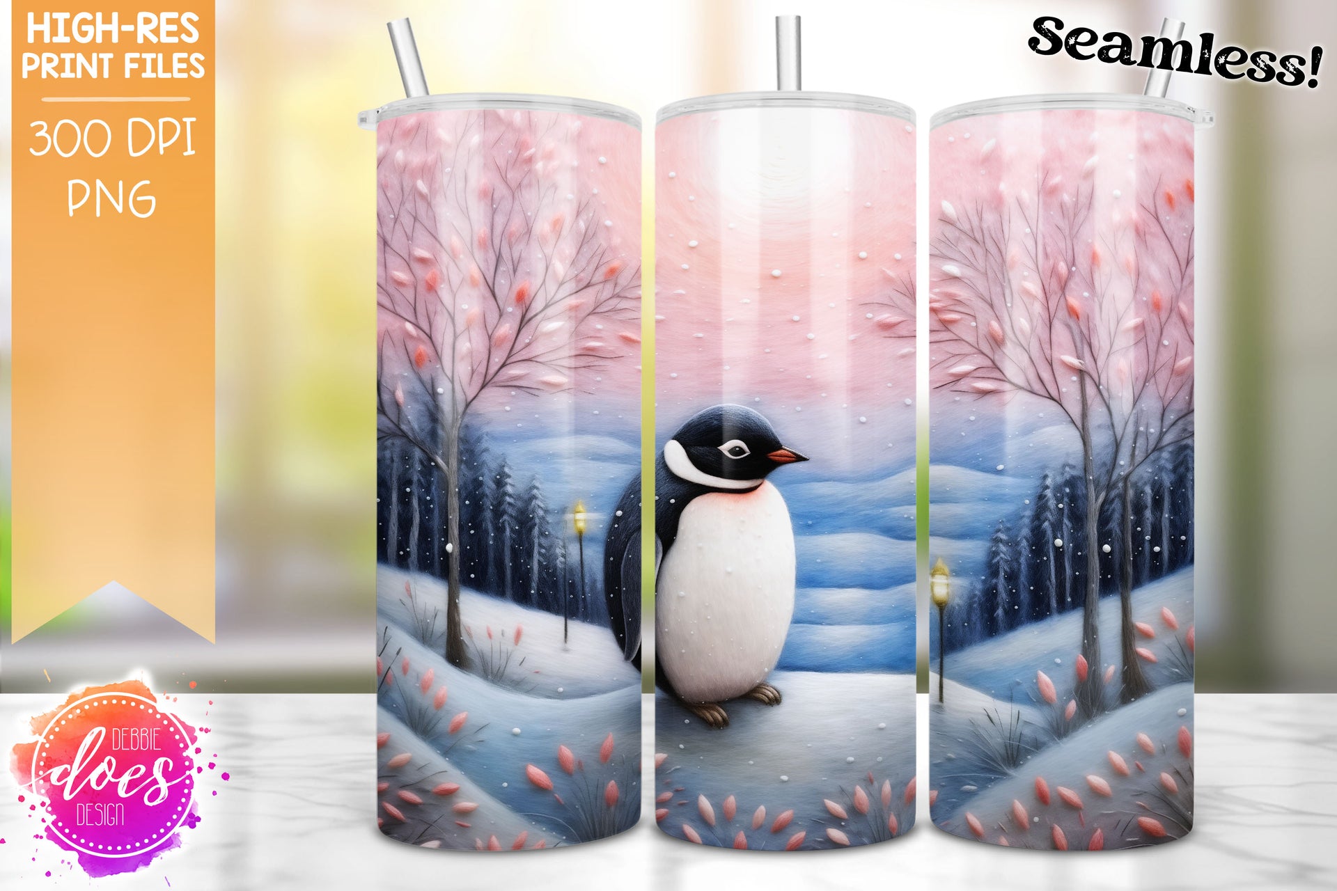3D Felt Stitched Penguin Pink Blue Tumbler - Seamless - Printable/Sublimation Design