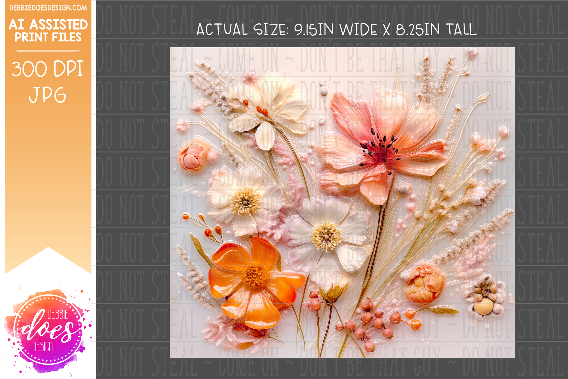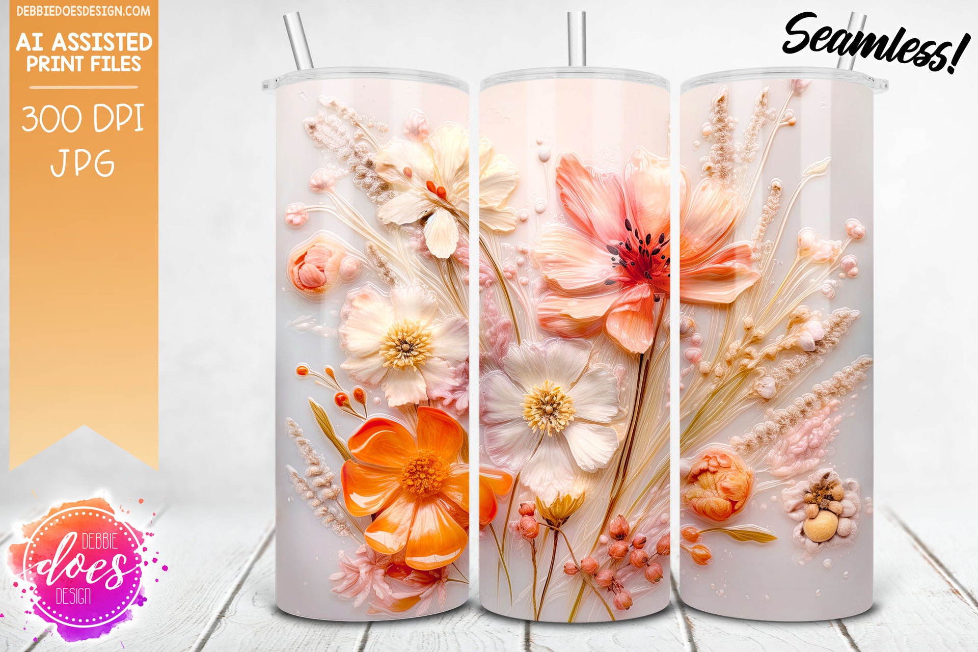 3D Flowers - Coral Orange White Resin 1 - 3D Tumbler - Printable/Sublimation Design