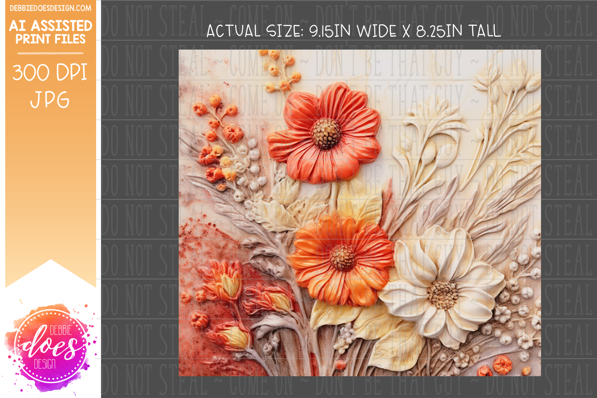 3D Flowers - Orange Ivory Ceramic 1 - 3D Tumbler - Printable/Sublimation Design