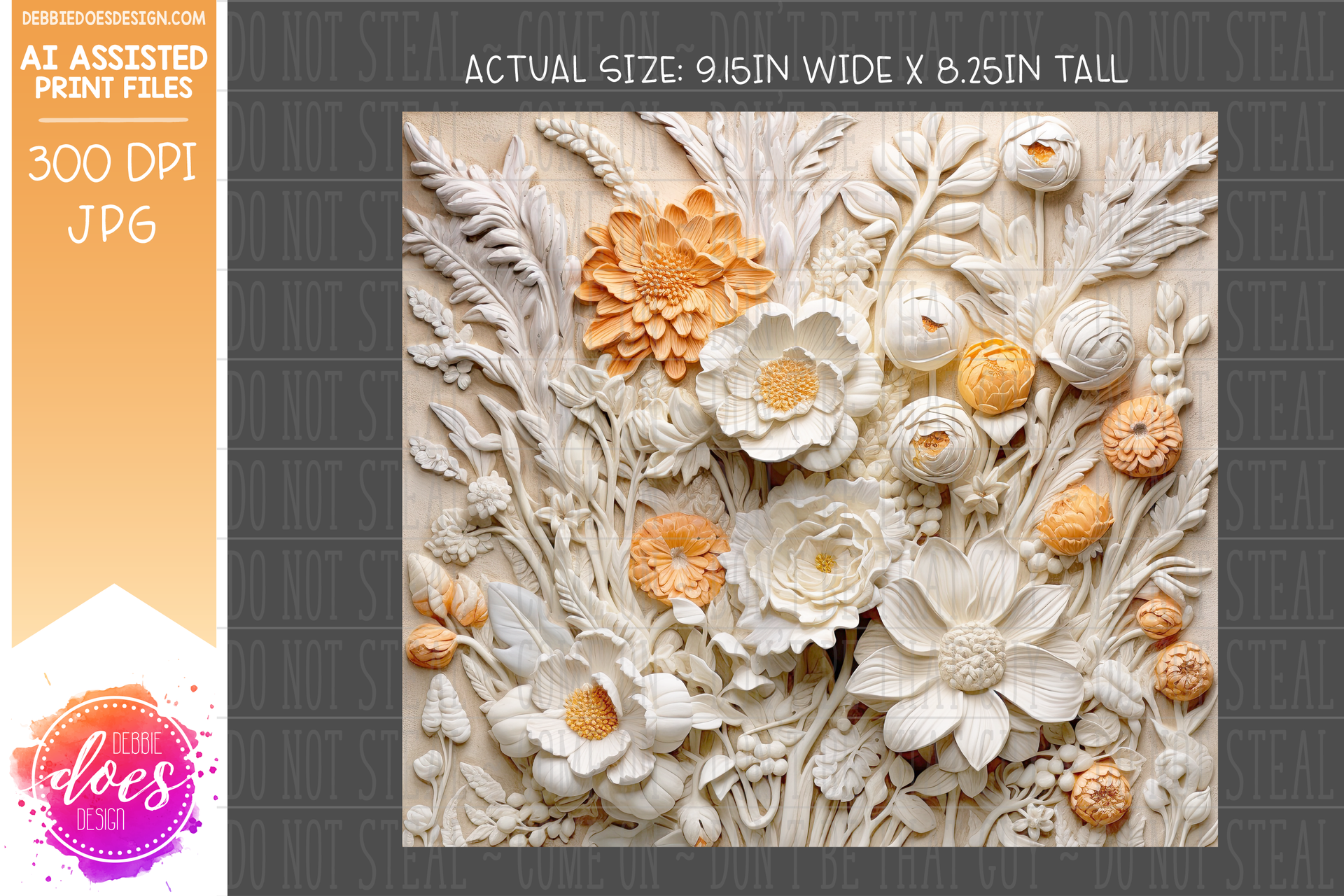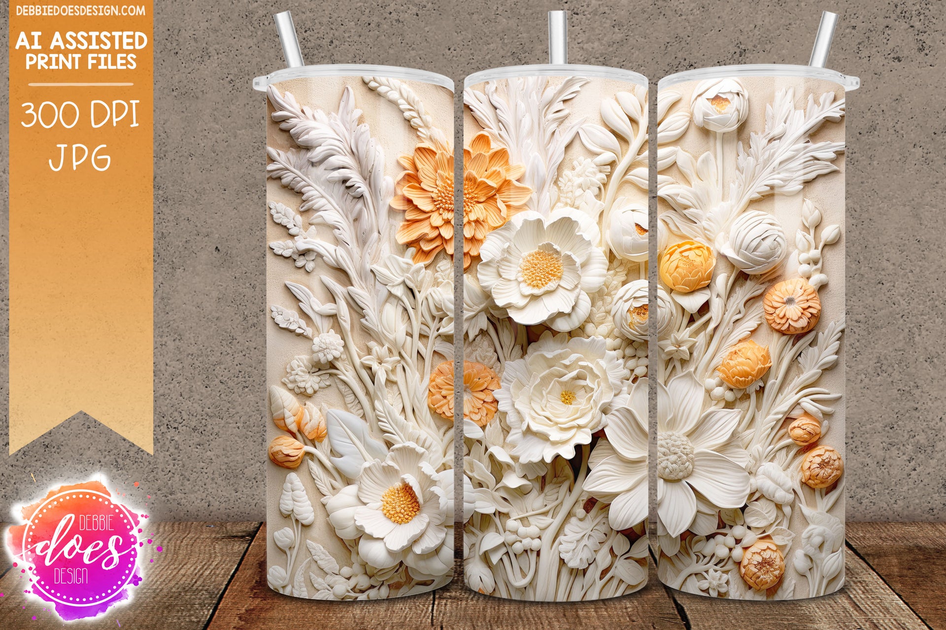 3D Flowers - Orange Ivory Clay 1 - 3D Tumbler - Printable/Sublimation Design