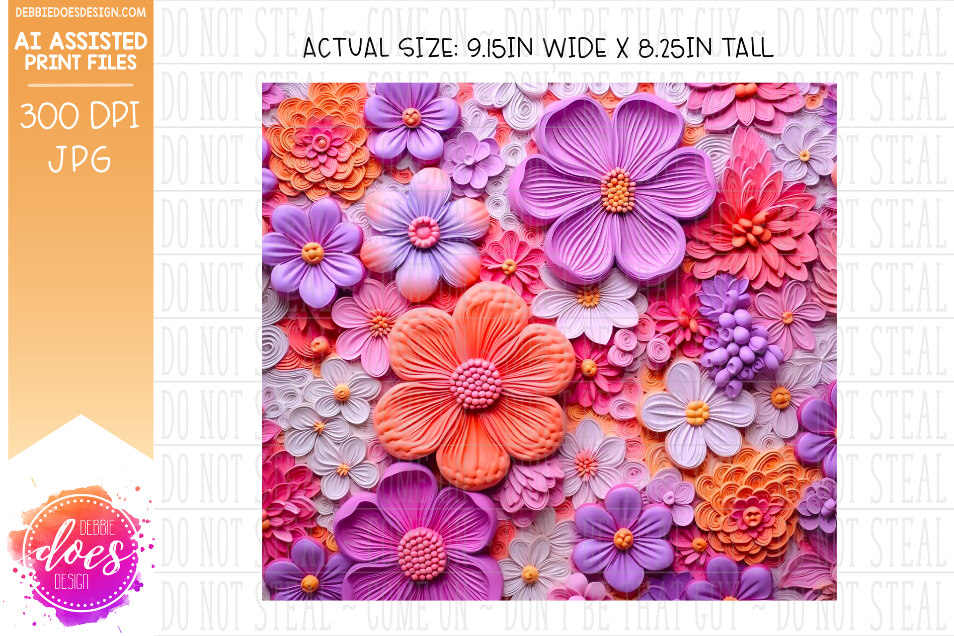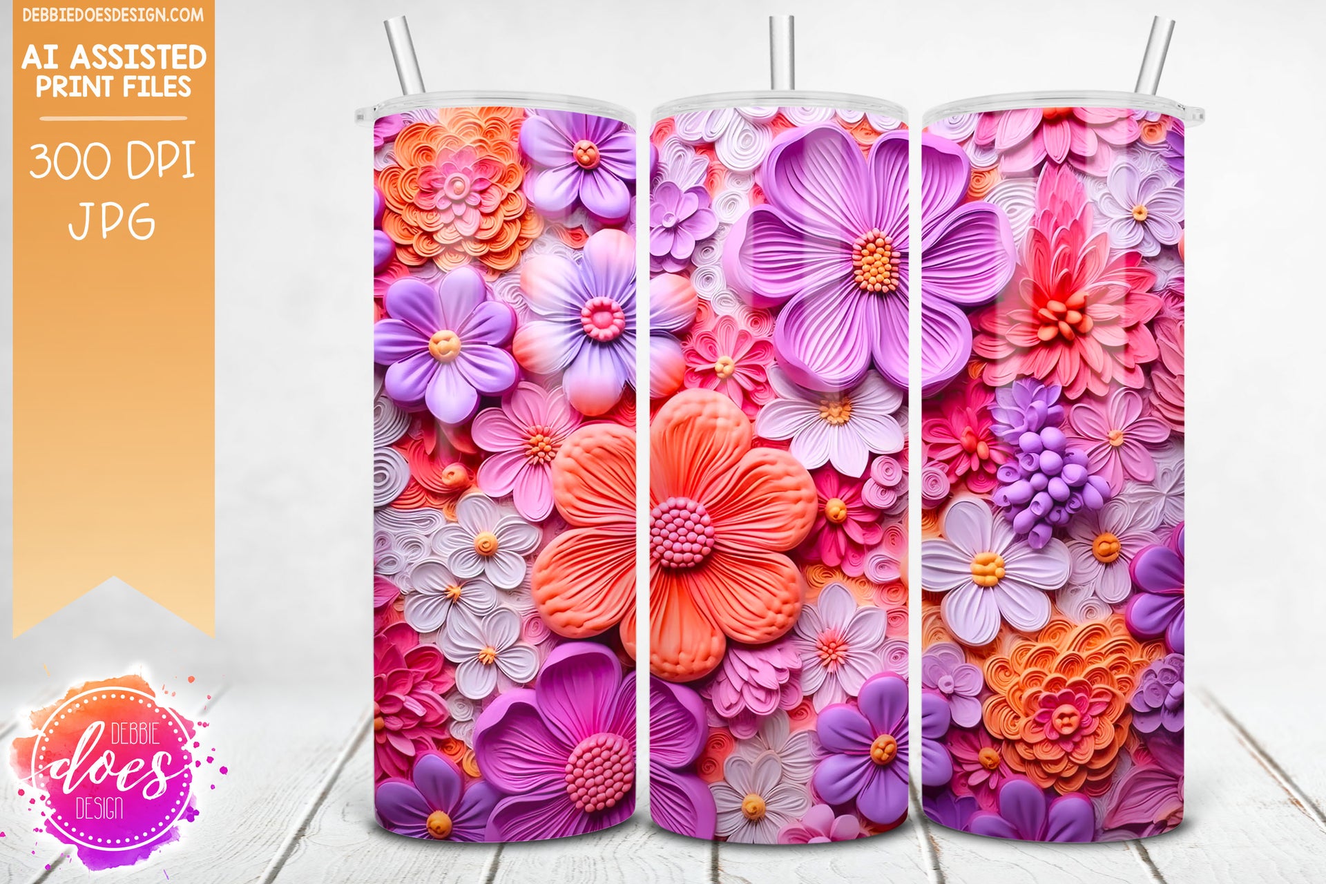 3D Flowers - Purple Pink Coral 1 - 3D Tumbler - Printable/Sublimation Design