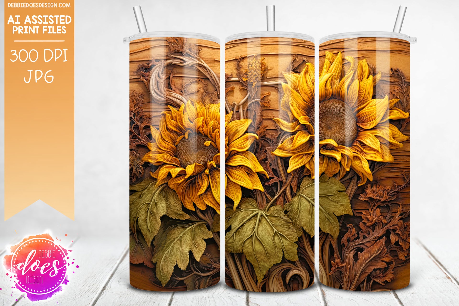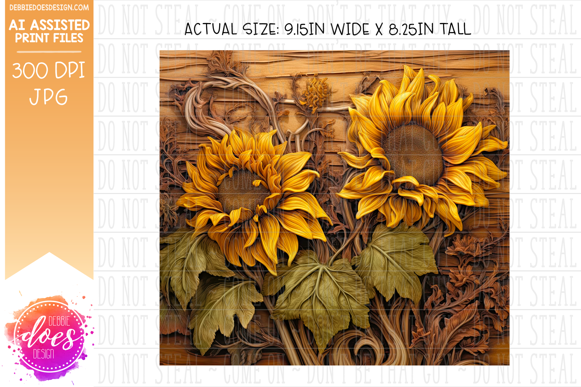 3D Flowers - Wood Sunflowers 3 - 3D Tumbler - Printable/Sublimation Design