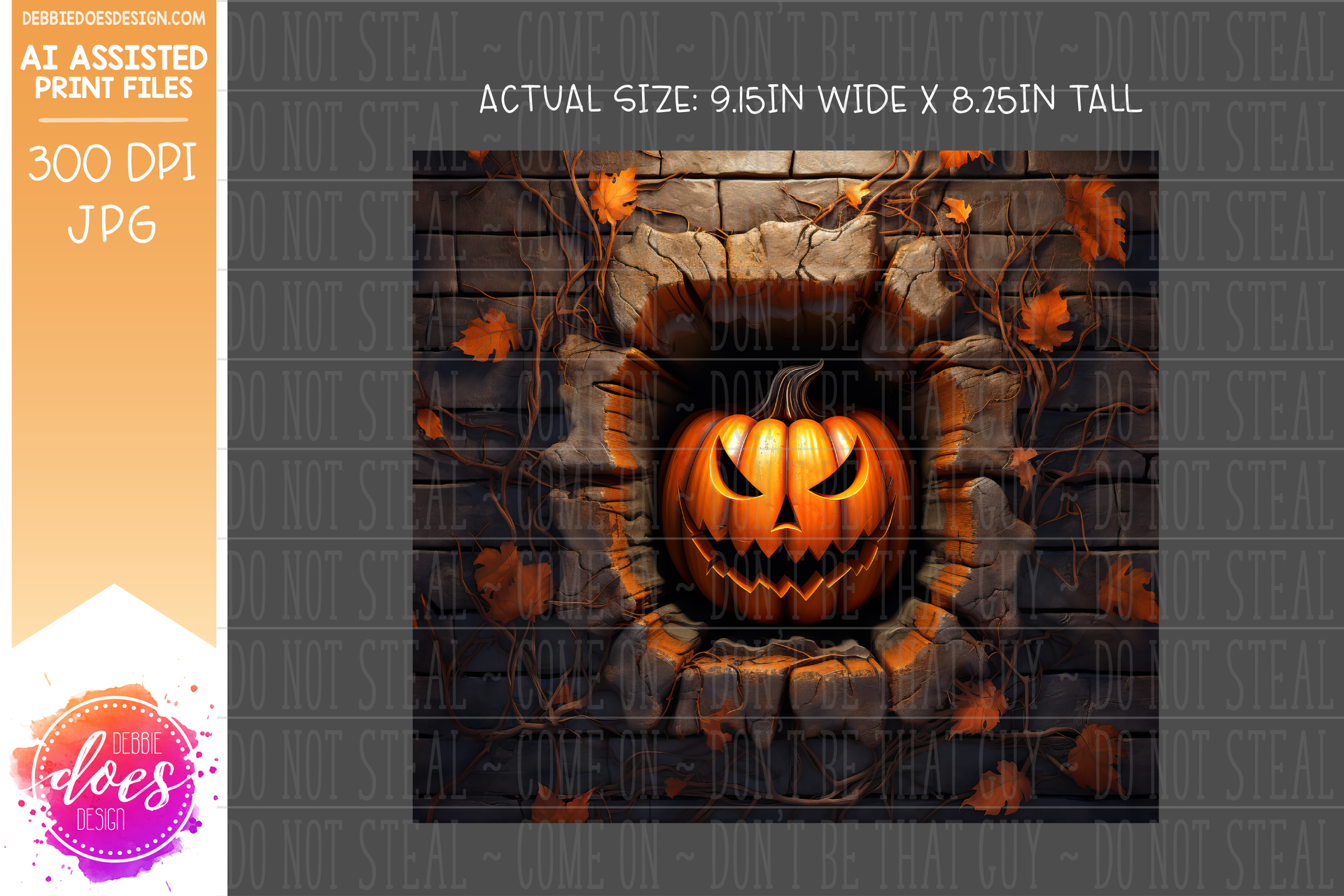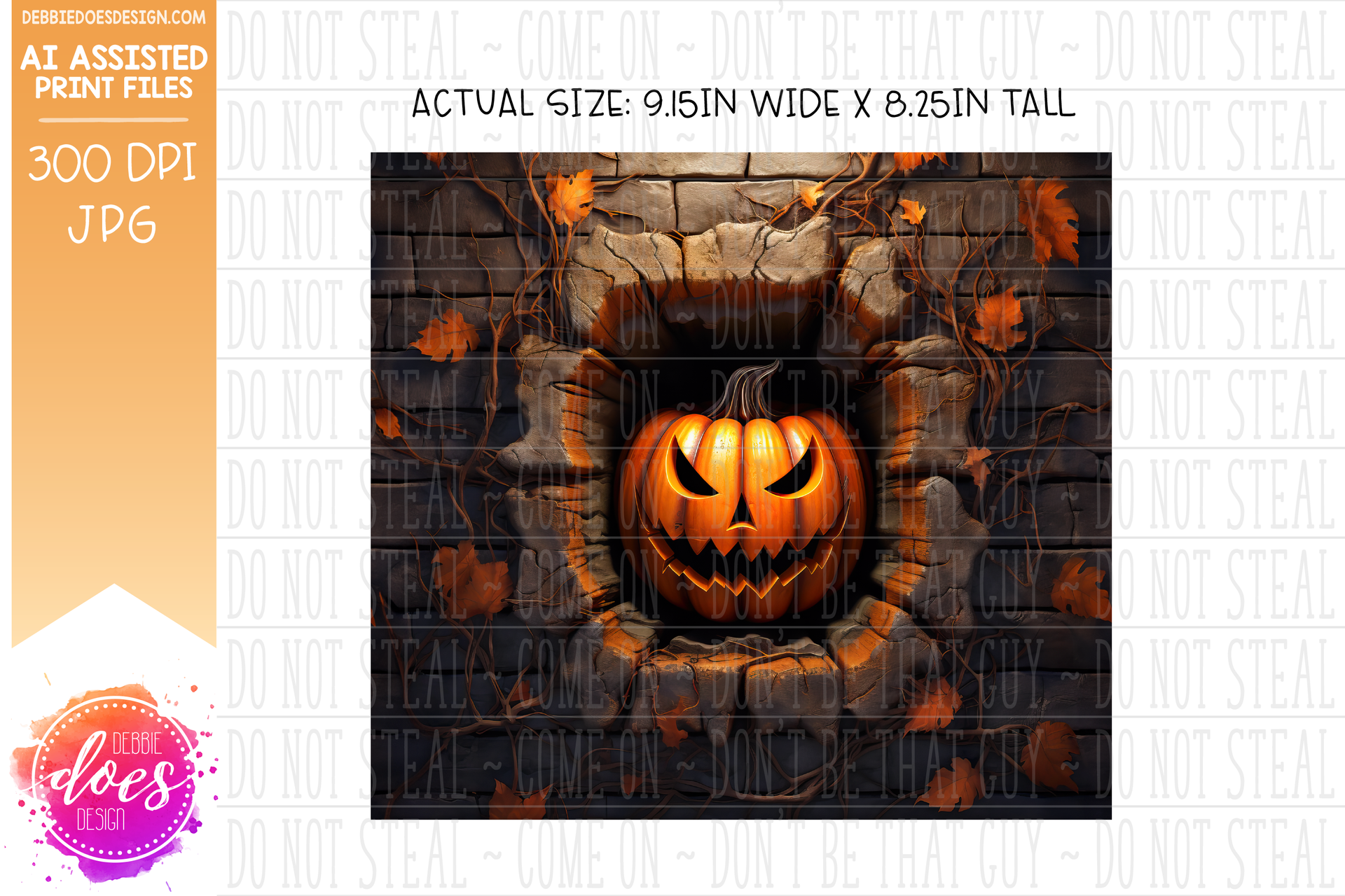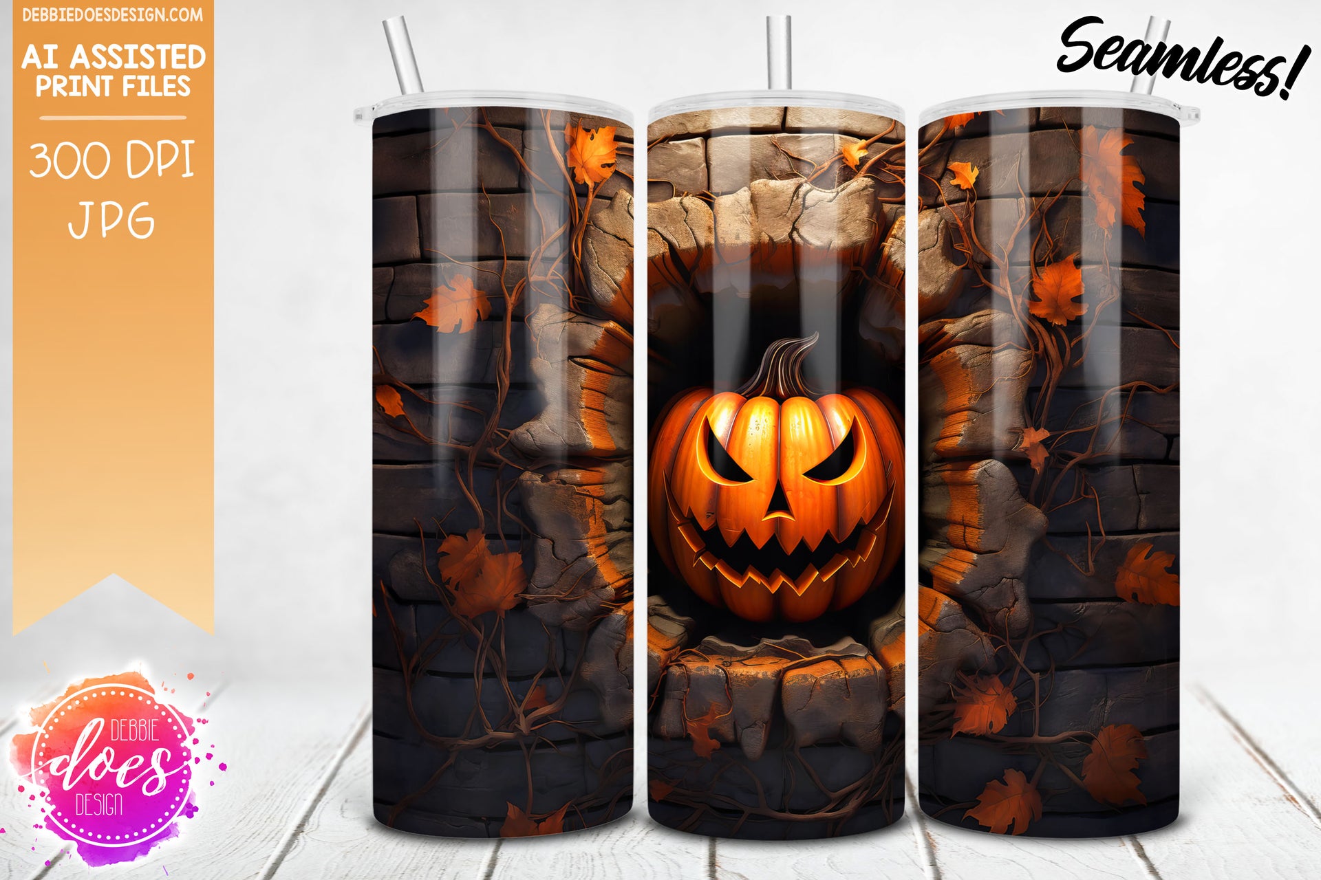 3D Glowing Jack O Lantern Brick Wall - Tumbler - Seamless - AI Assisted Printable/Sublimation Design