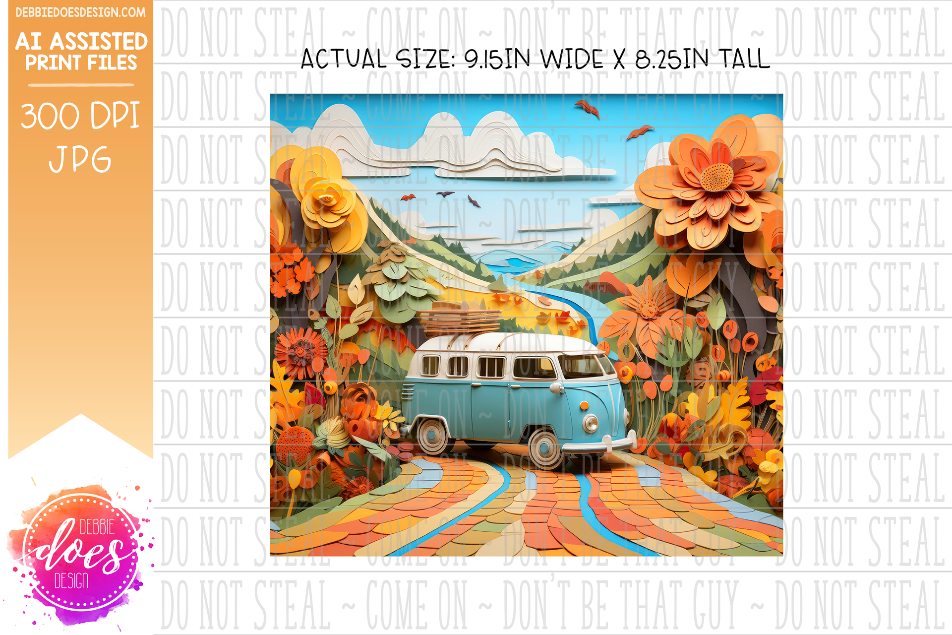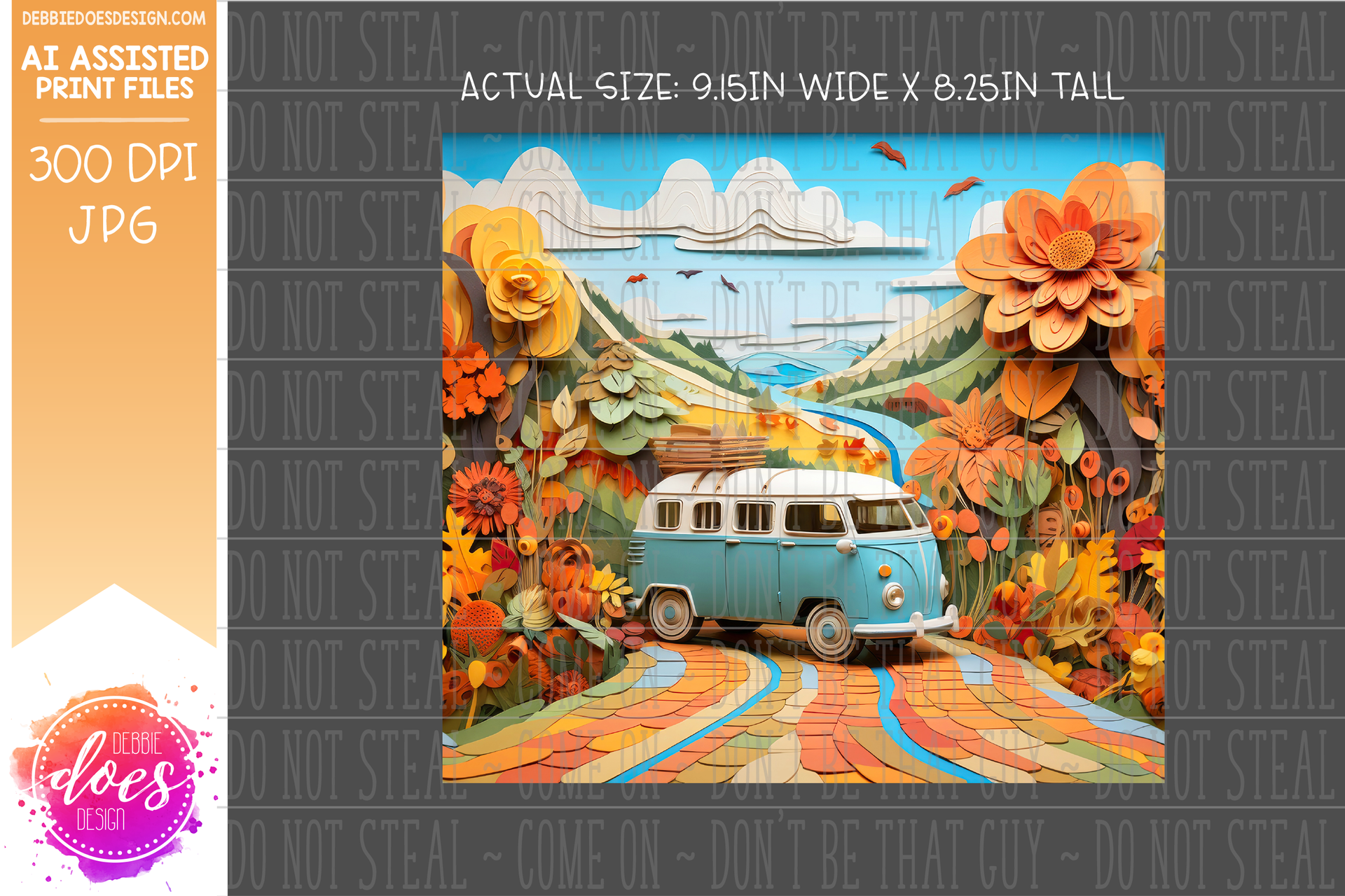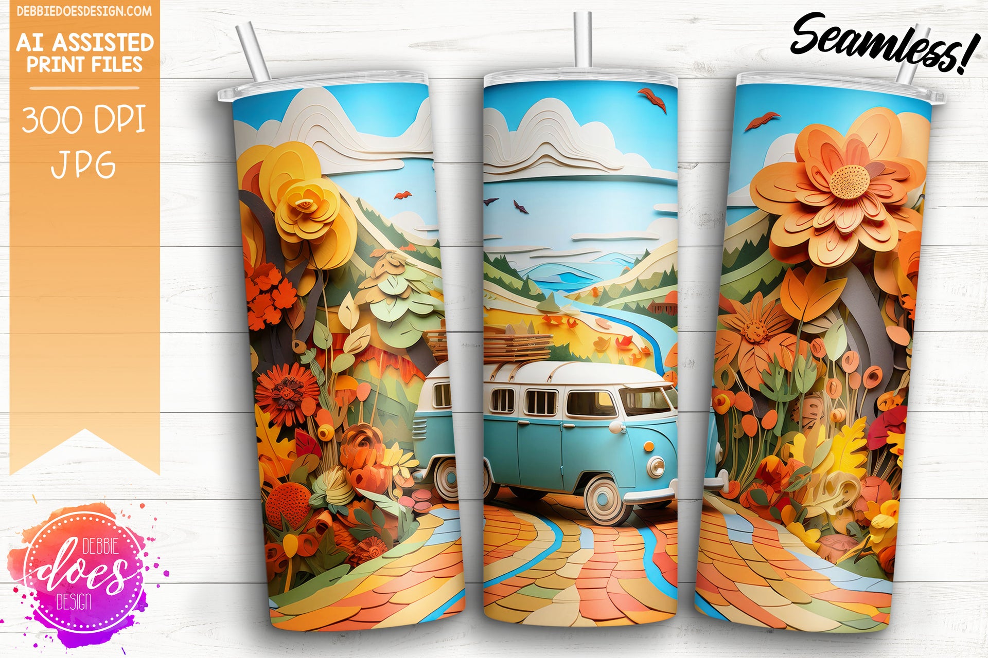 3D Paper Art Fall Orange Hippie Van 2 - Tumbler - Seamless - Printable/Sublimation Design
