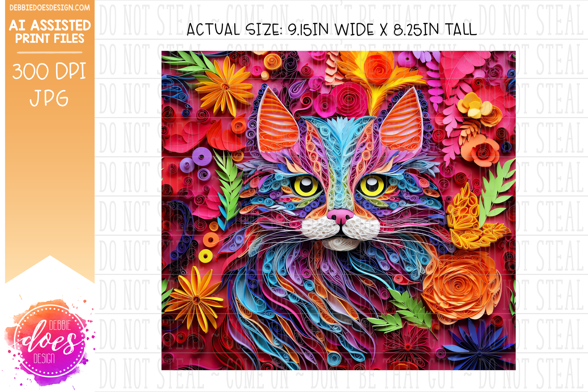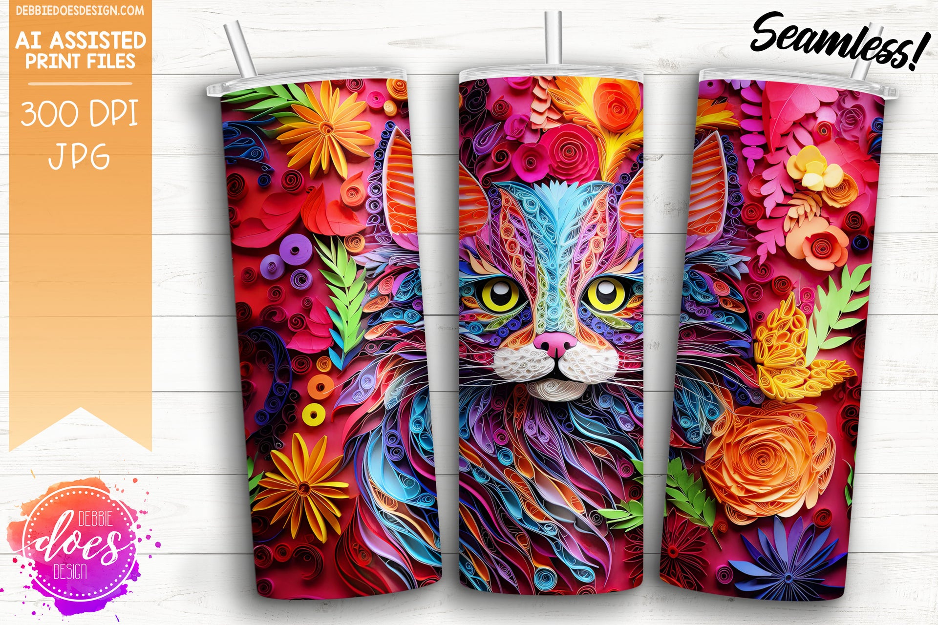 3D Paper Cat 2 - Tumbler - Printable/Sublimation Design