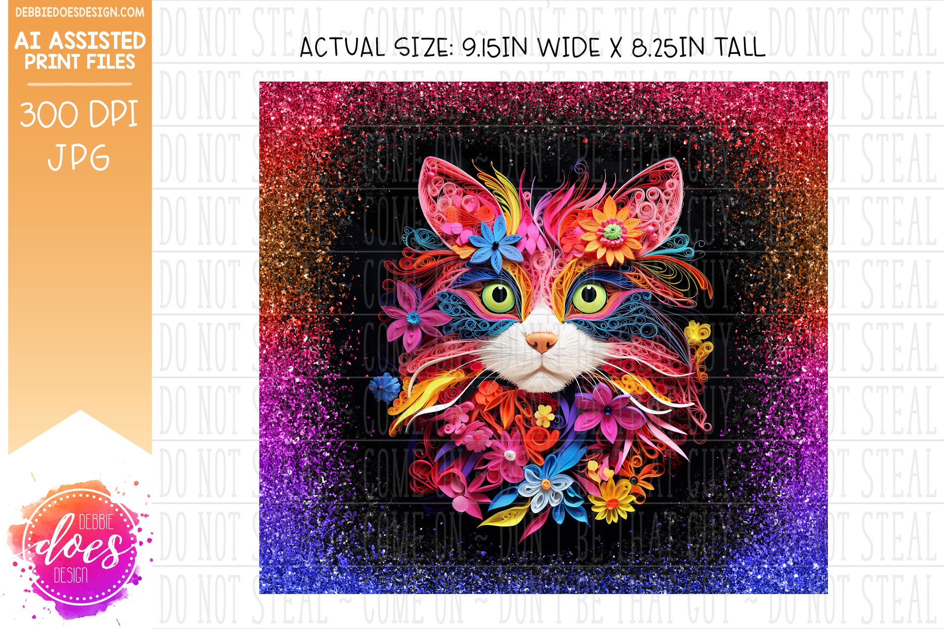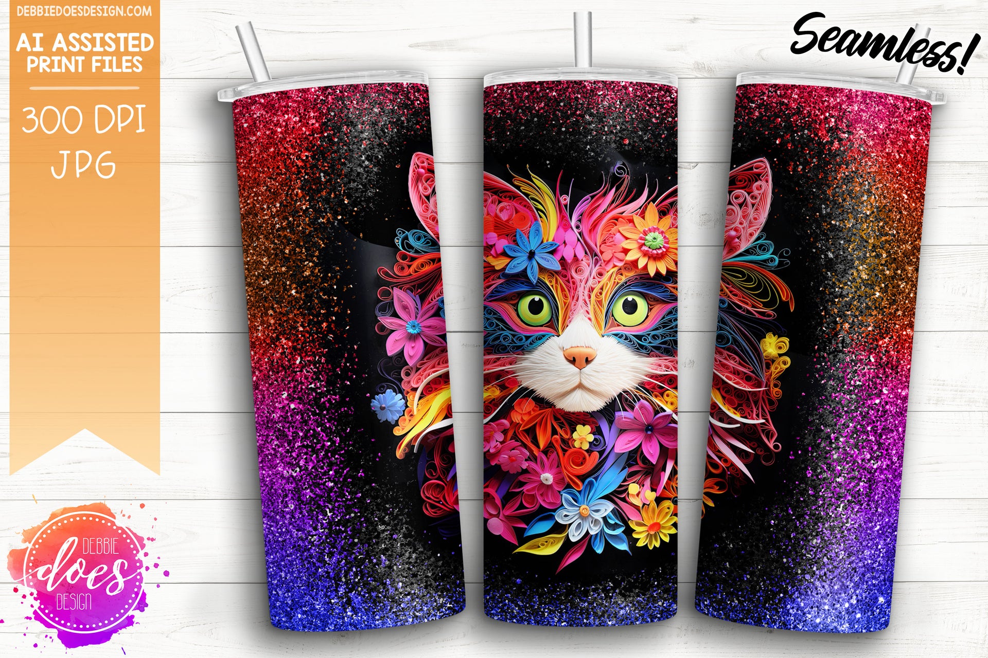 3D Paper Cat Glitter 4 - Tumbler - Printable/Sublimation Design