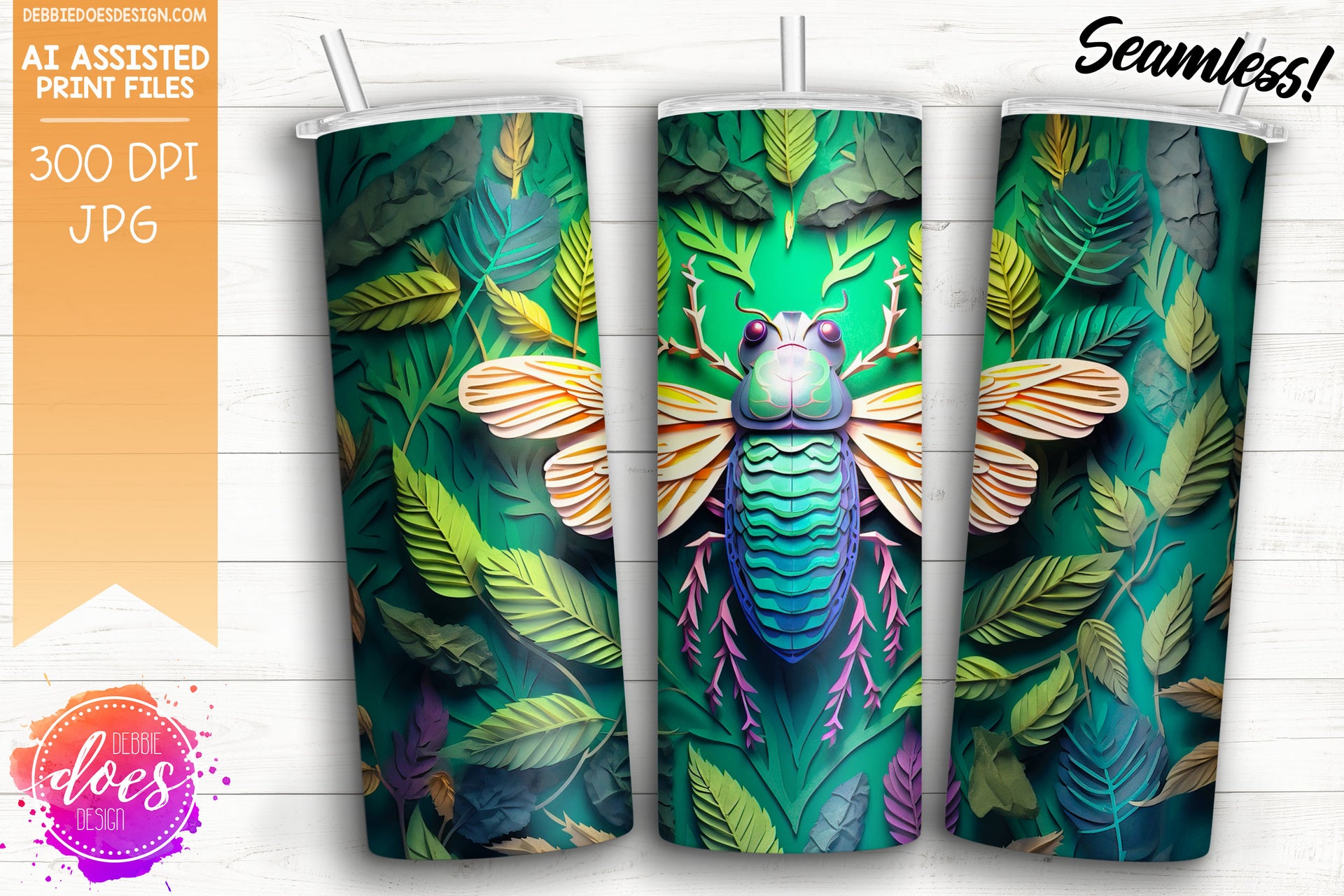 3D Paper Cicada 1 - Tumbler - Printable/Sublimation Design