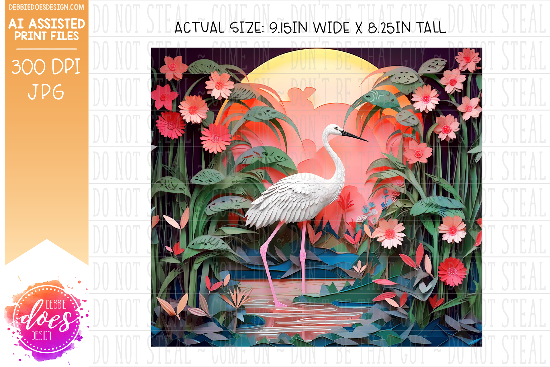 3D Paper Crane 1 - Tumbler - Printable/Sublimation Design