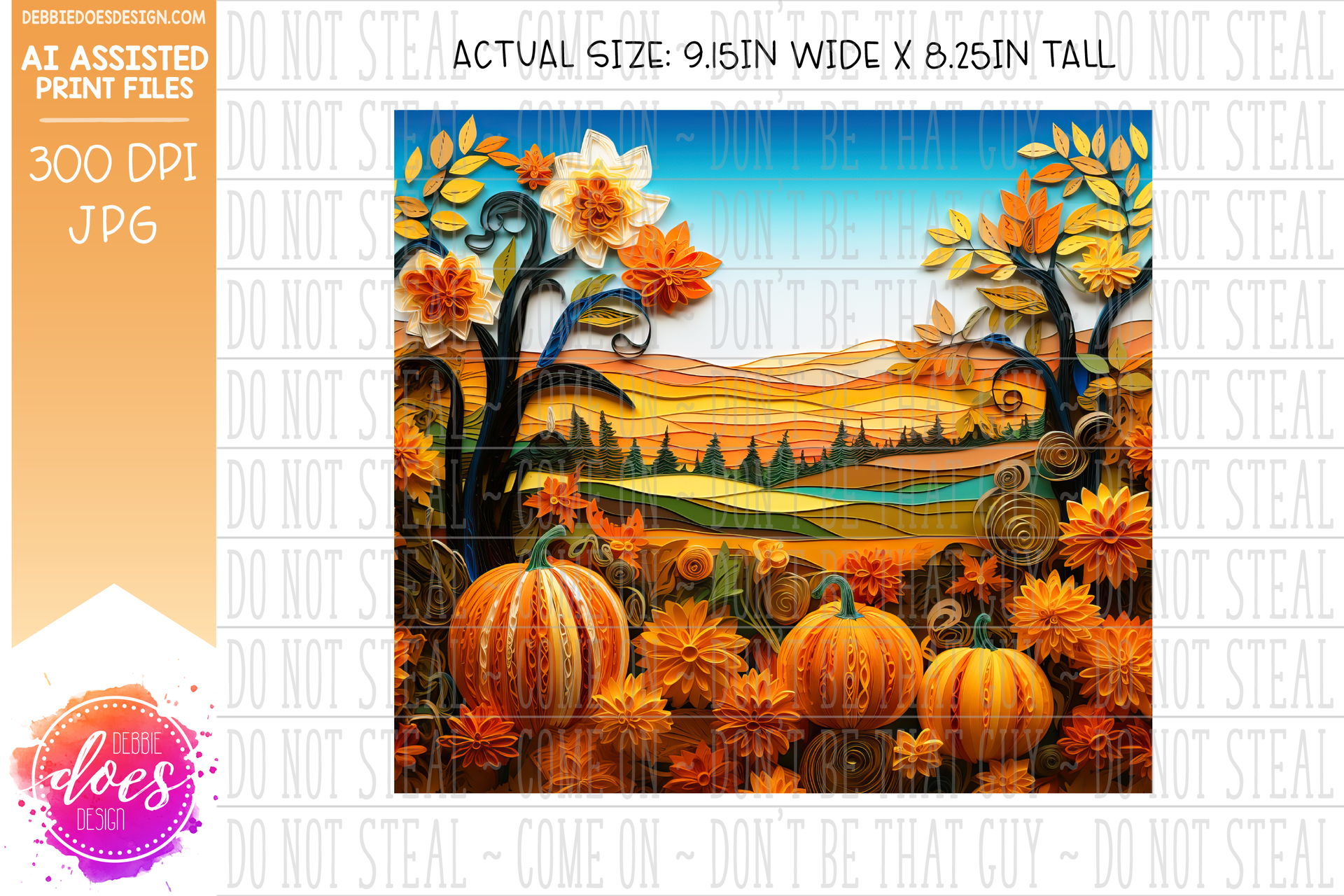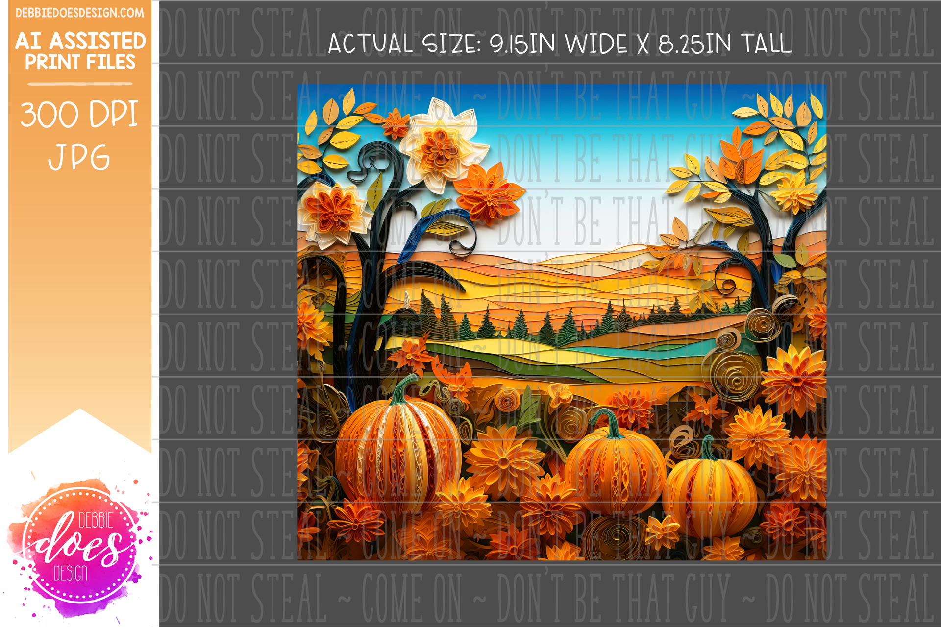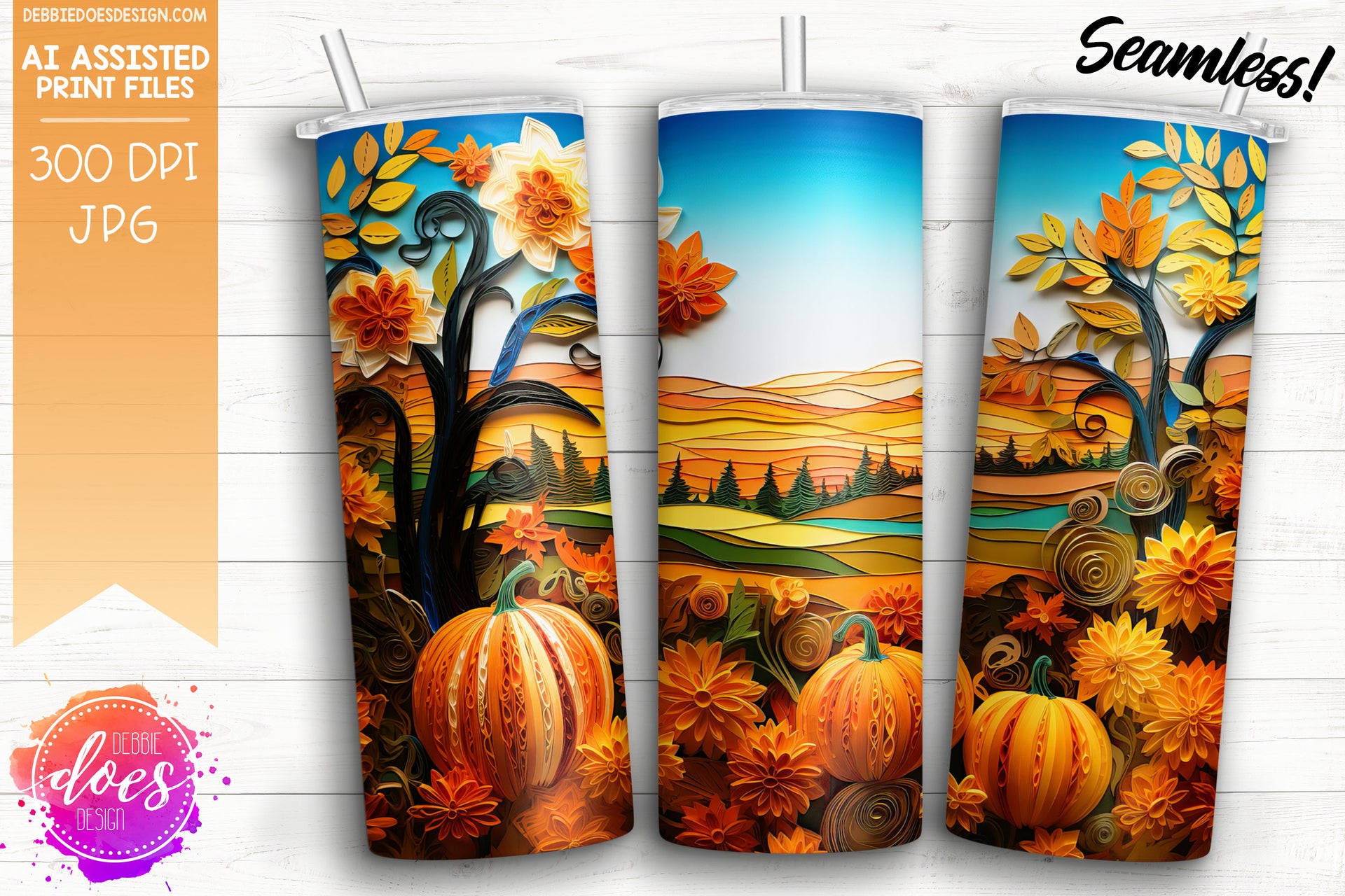 3D Paper Fall Scene 1 - Tumbler - Seamless - Printable/Sublimation Design