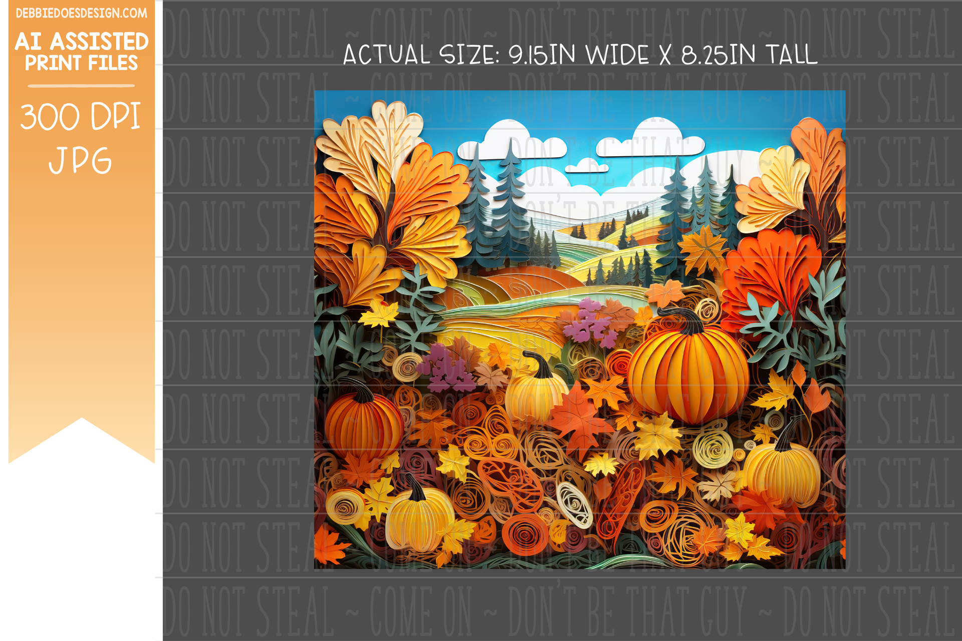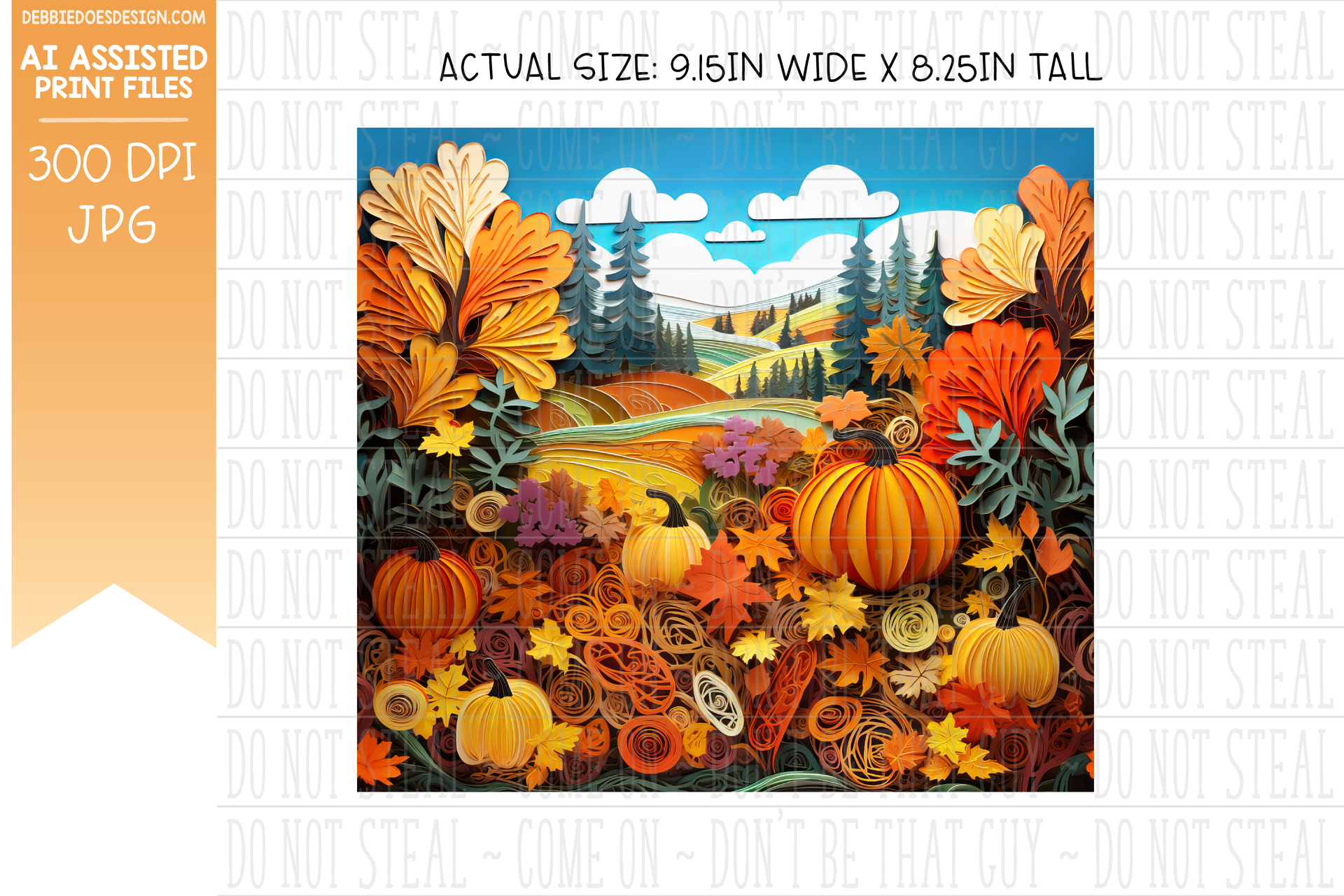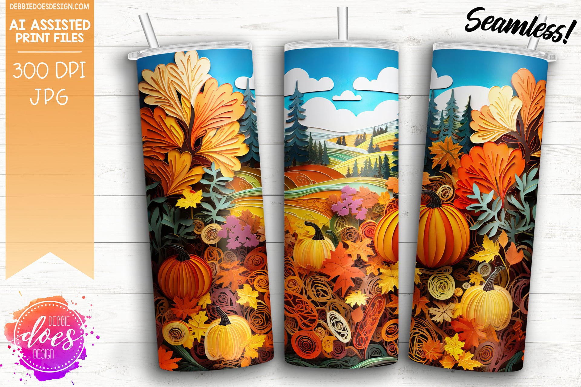 3D Paper Fall Scene 2 - Tumbler - Seamless - AI Assisted Printable/Sublimation Design