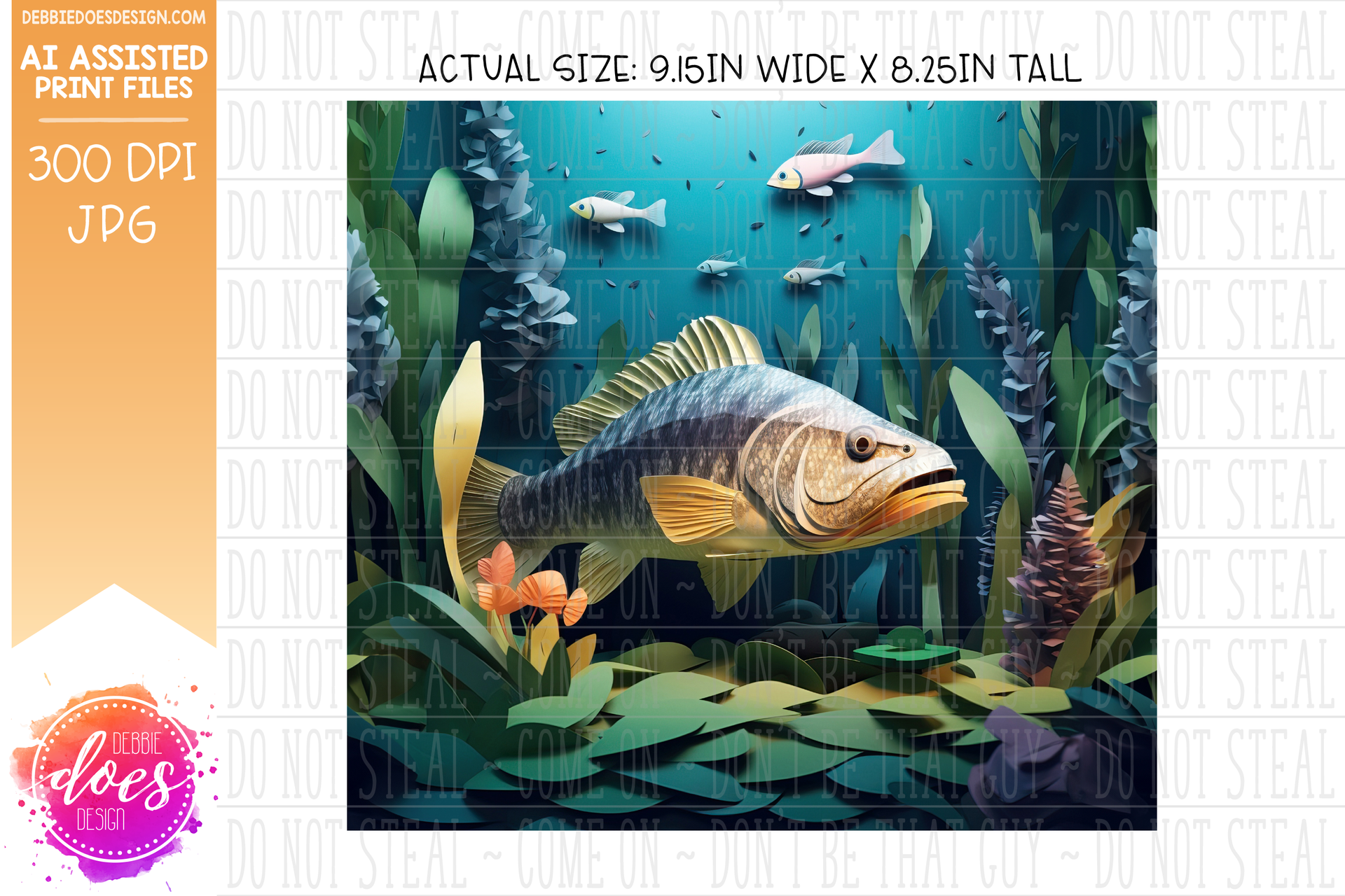 3D Paper Fish - Bass 1 - Tumbler - Printable/Sublimation Design