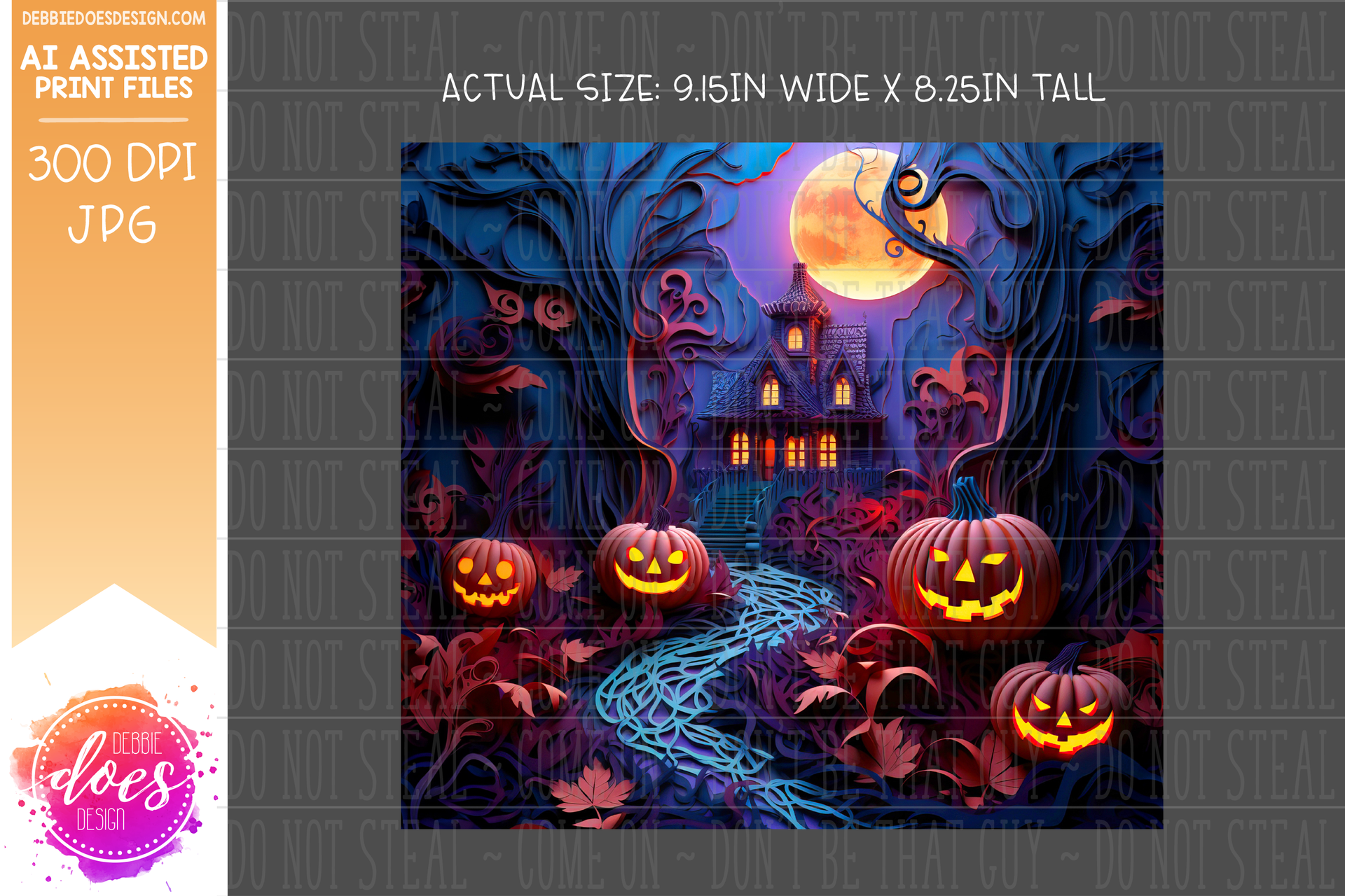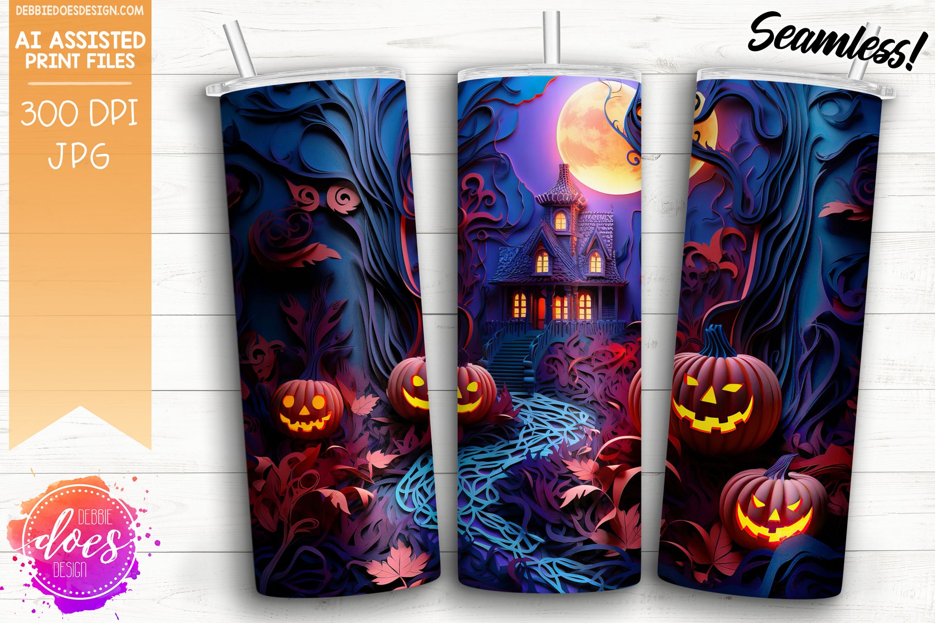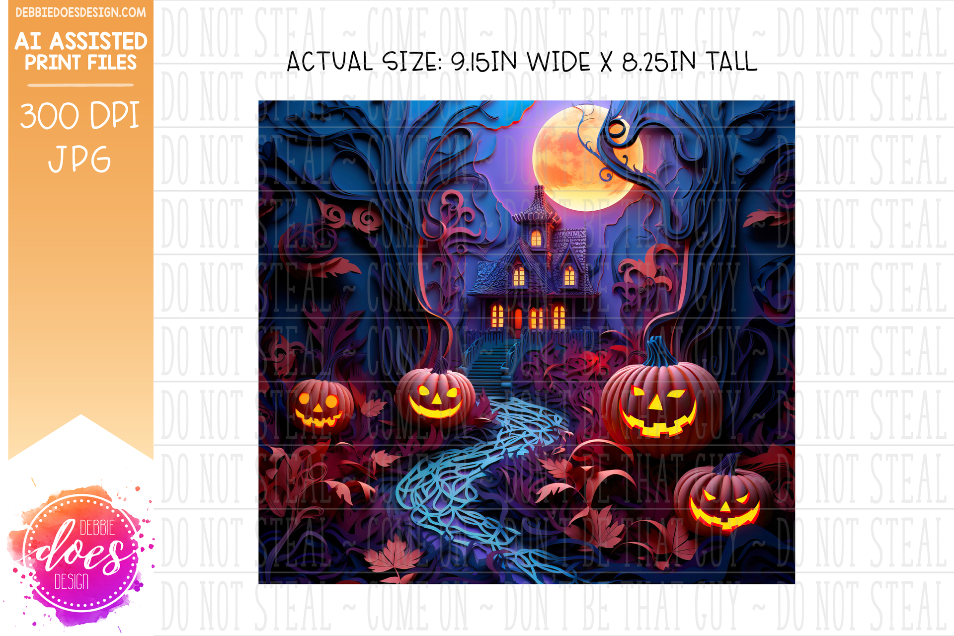 3D Paper Haunted Halloween Scene 1 - Tumbler - Seamless - Printable/Sublimation Design