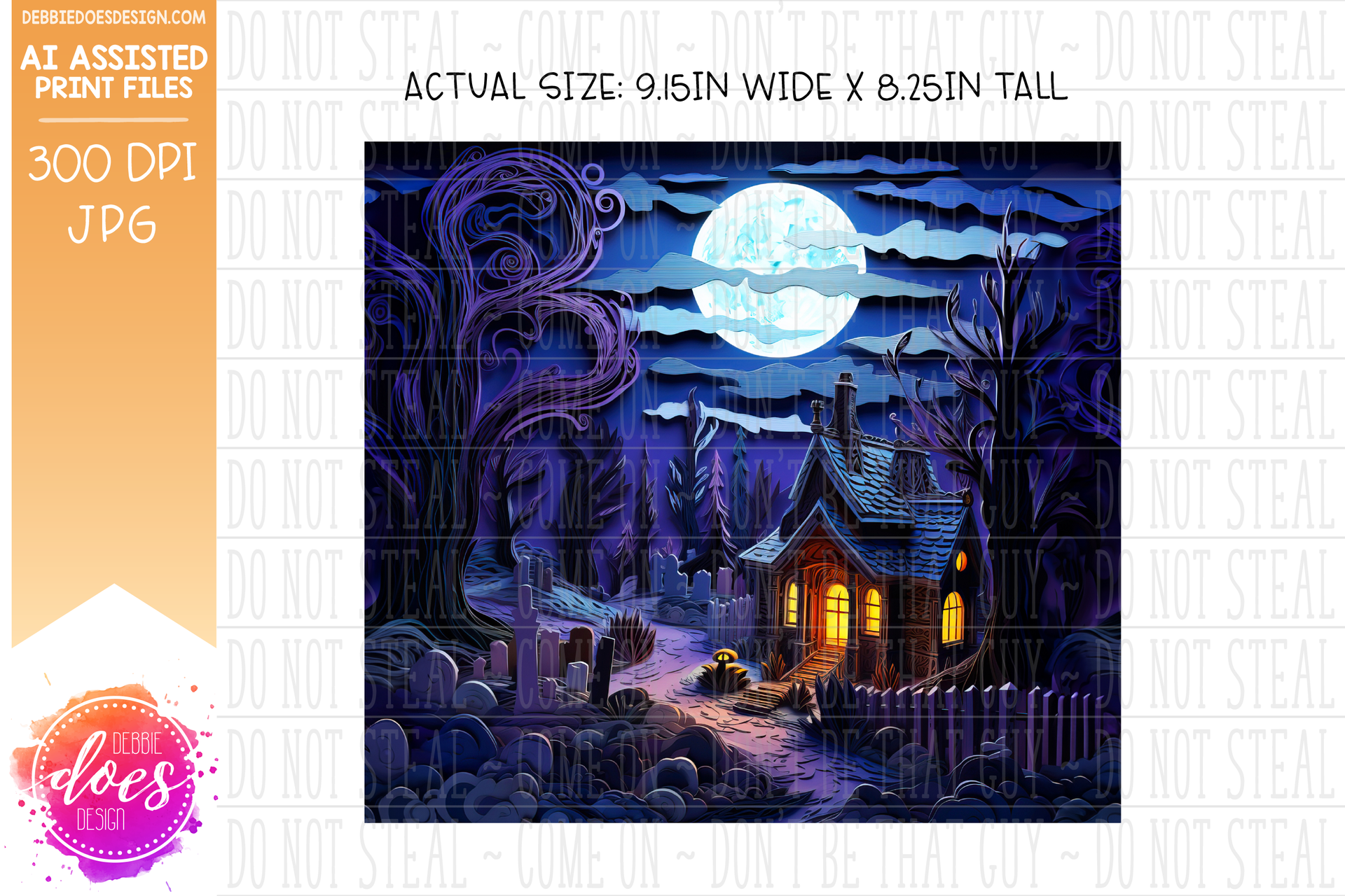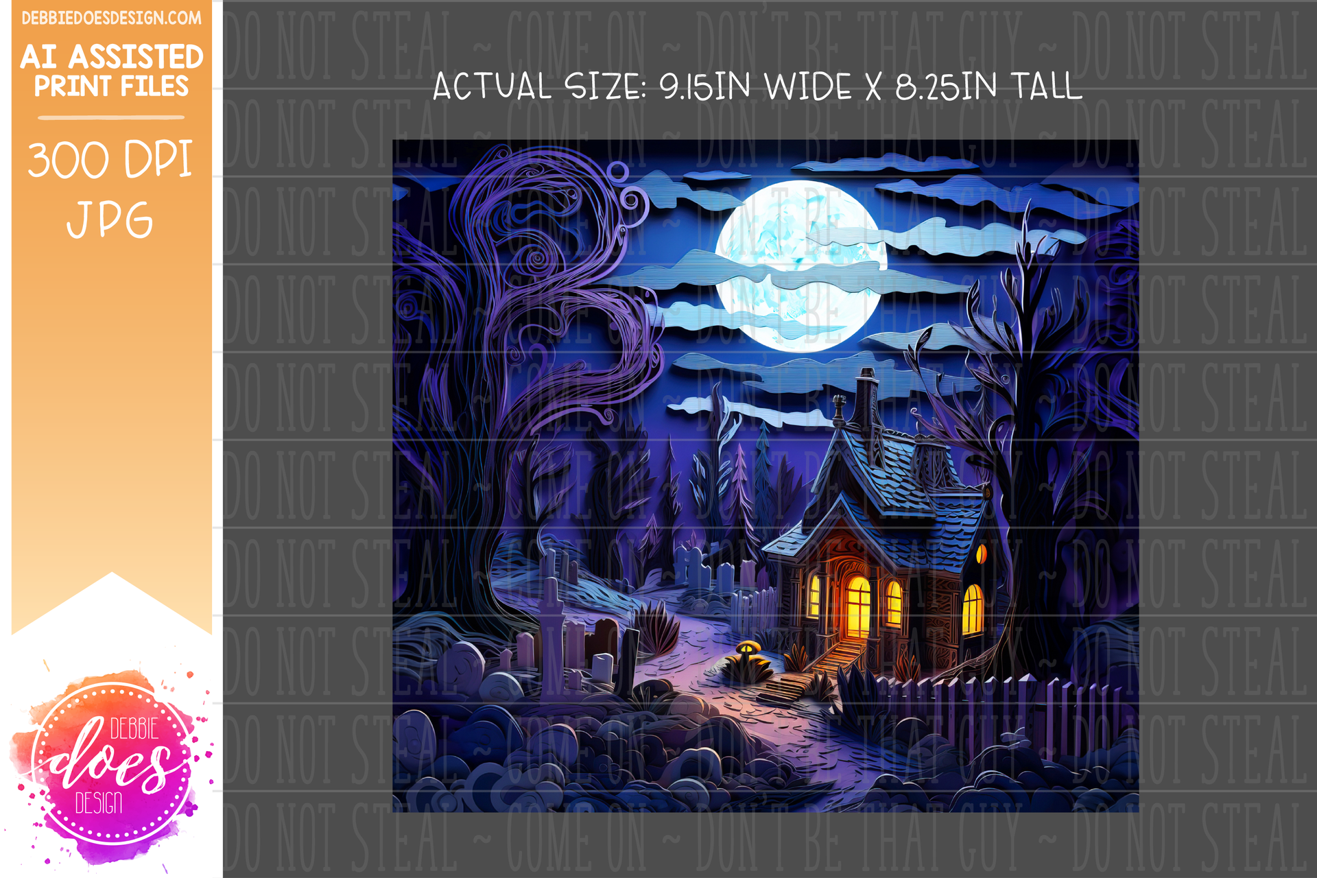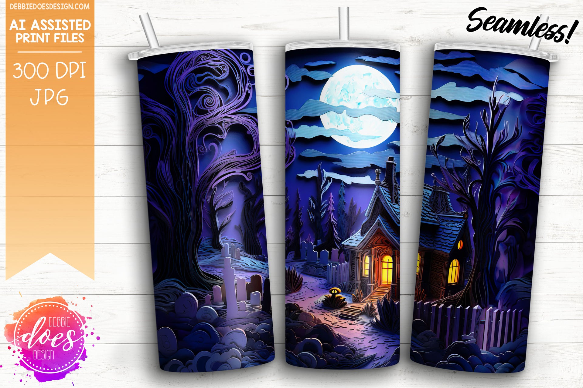 3D Paper Haunted Halloween Scene 2 - Tumbler - Seamless - Printable/Sublimation Design