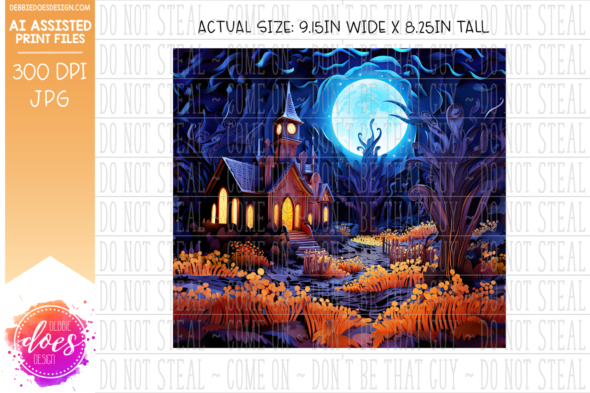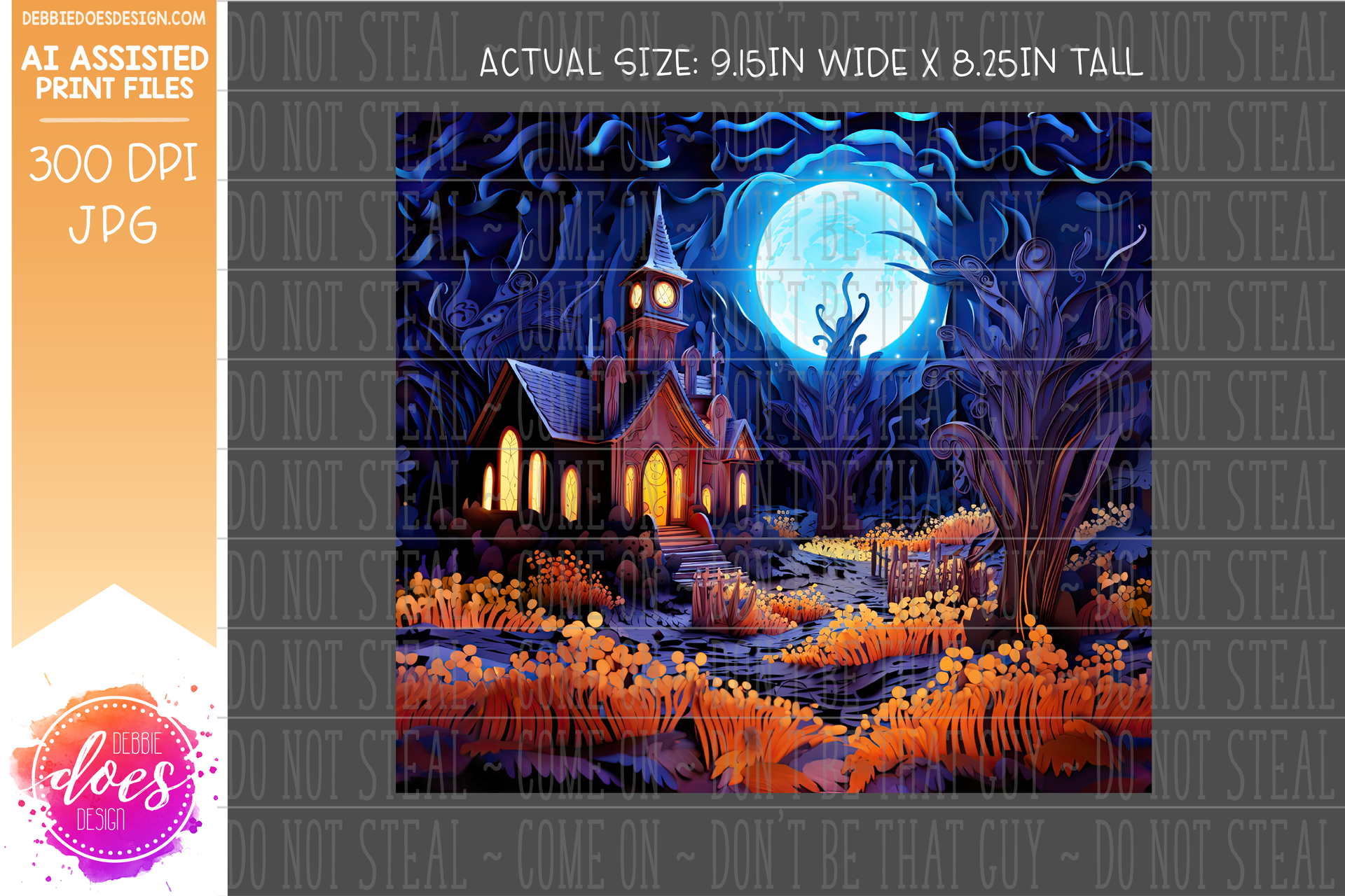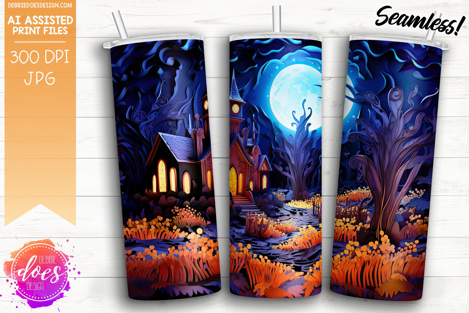 3D Paper Haunted Halloween Scene 4 - Tumbler - Seamless - Printable/Sublimation Design