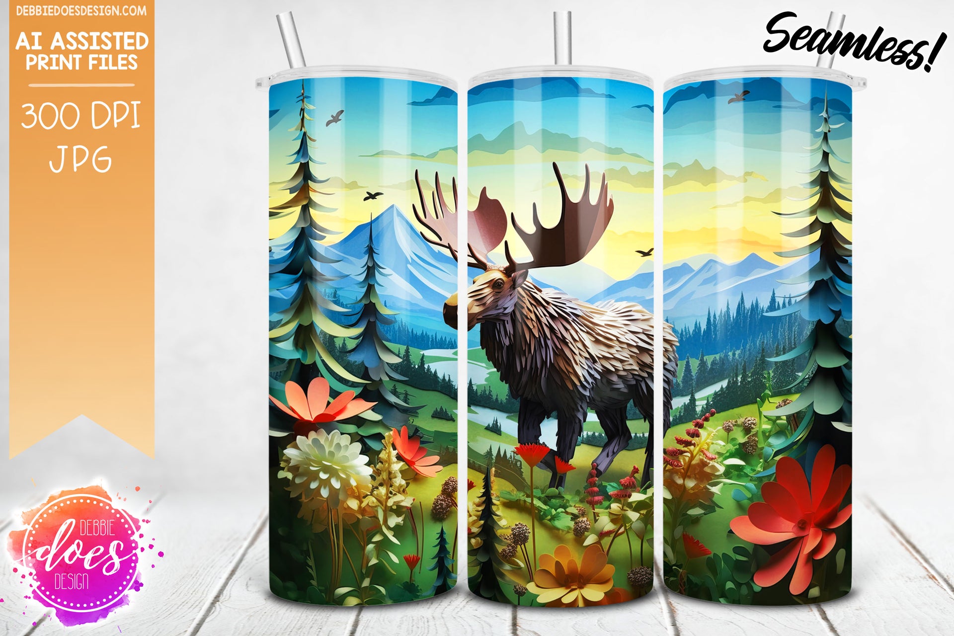 3D Paper Moose 1 - Tumbler - Printable/Sublimation Design