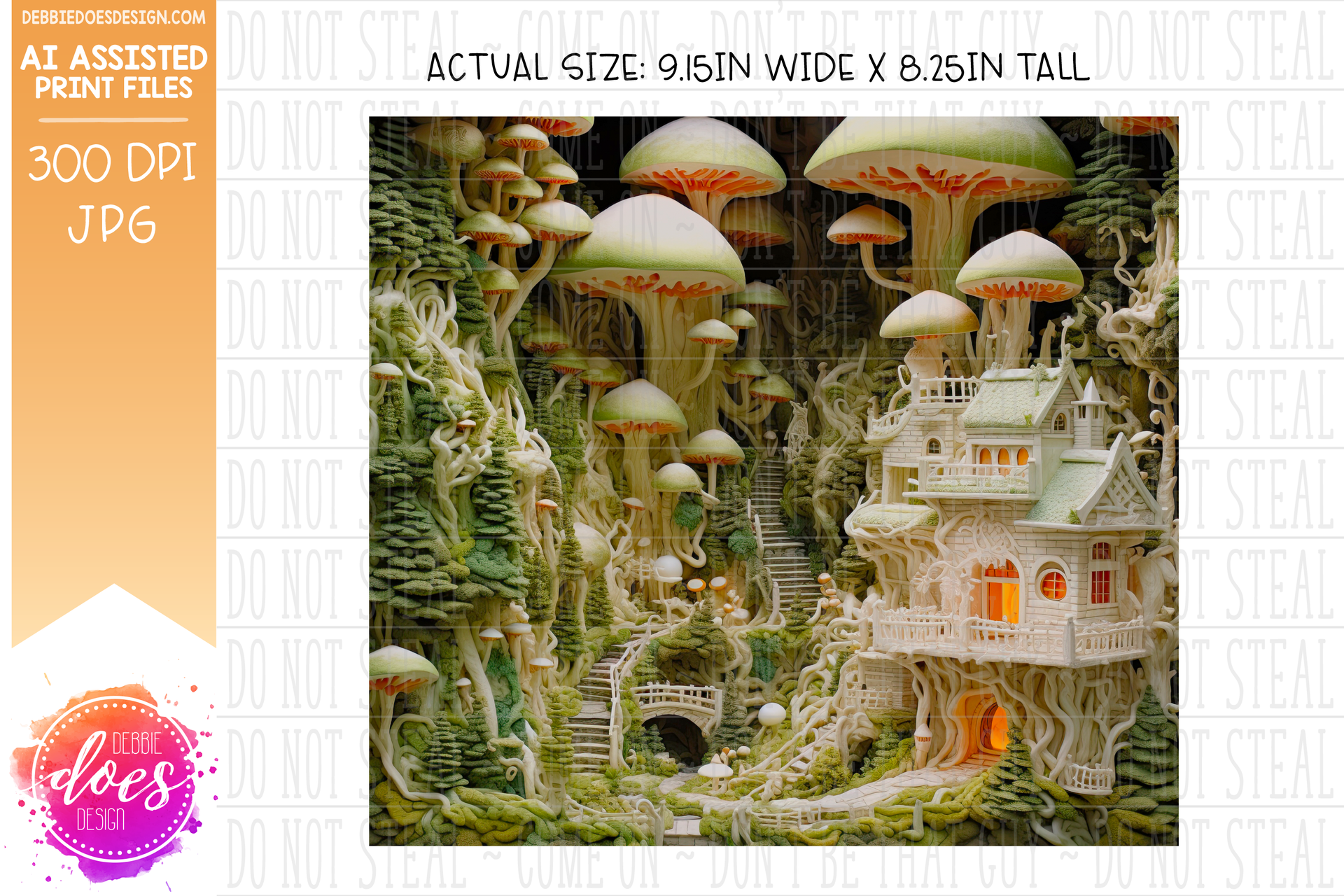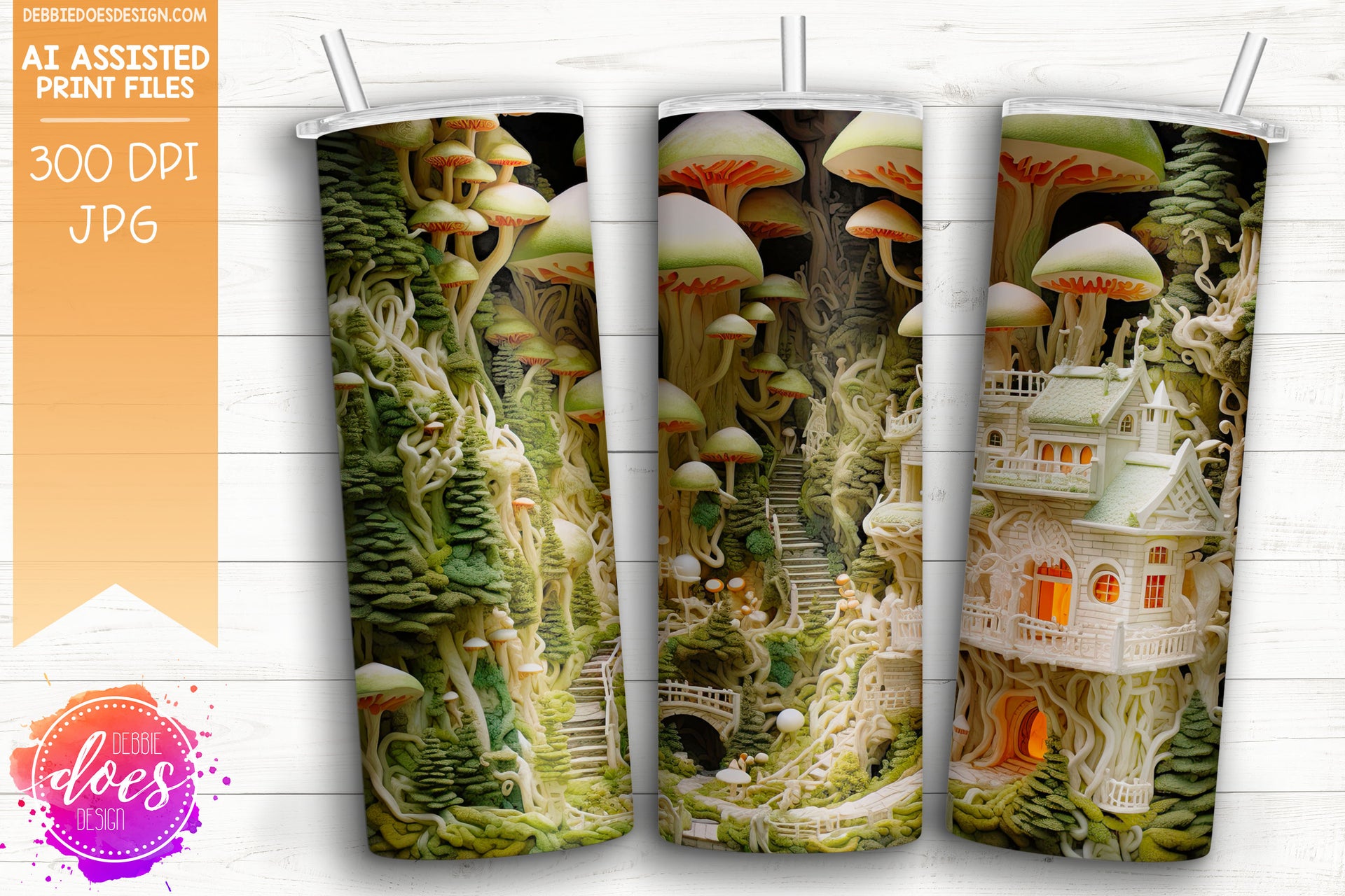 3D Paper Mushroom Garden Village - Ivory Green 2 - 3D Tumbler - Printable/Sublimation Design